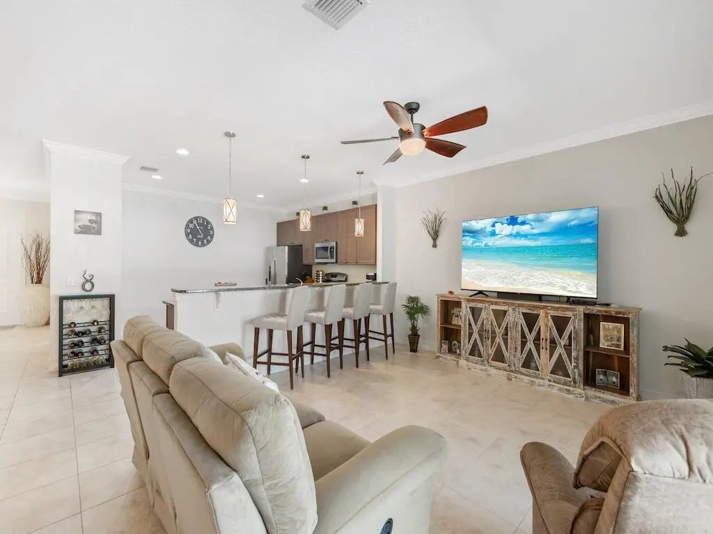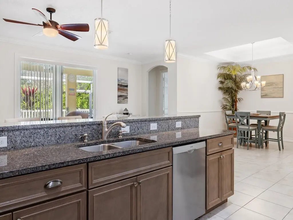 Va-Va-Vila! This 3/2 corner set Villa in the sought-after St. Andrews Park offers privacy and peace, with none of the finer details overlooked. This immaculate home boasts its elegance with a large foyer, tray ceilings located in the dining room & primary bedroom, 8ft tall doors, granite throughout, a utility room, and a lg kitchen countertop bar perfect for all types of gatherings. Be captivated as you walk out onto the large screened lanai, offering privacy & comfort. The clubhouse & pool located practically out your front door make the home ideally located. Room sizes are approximate and subject to verify.