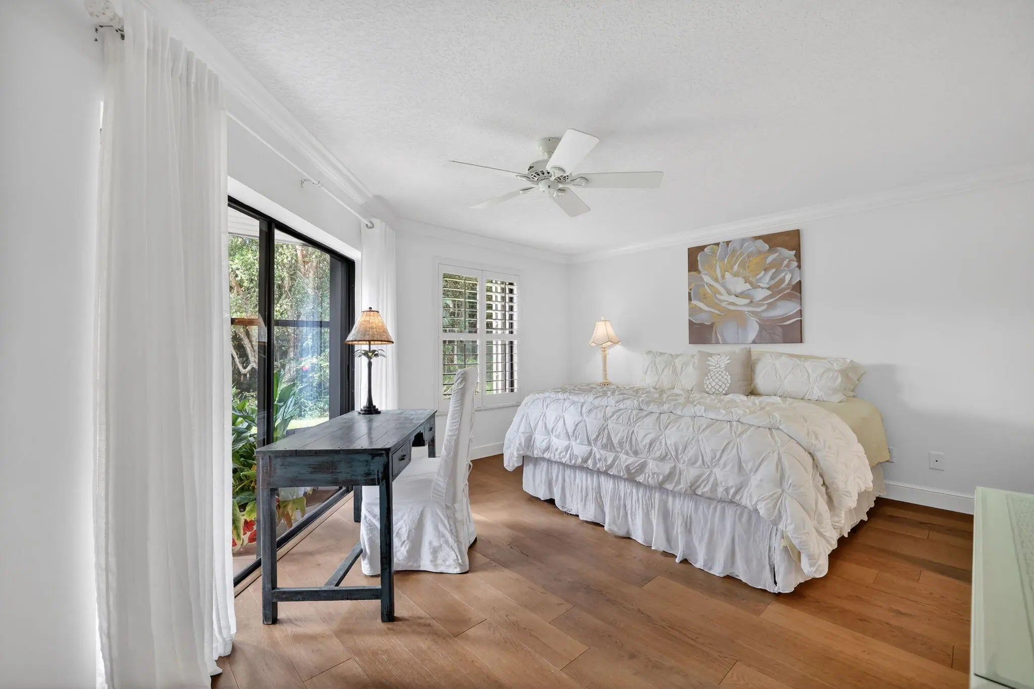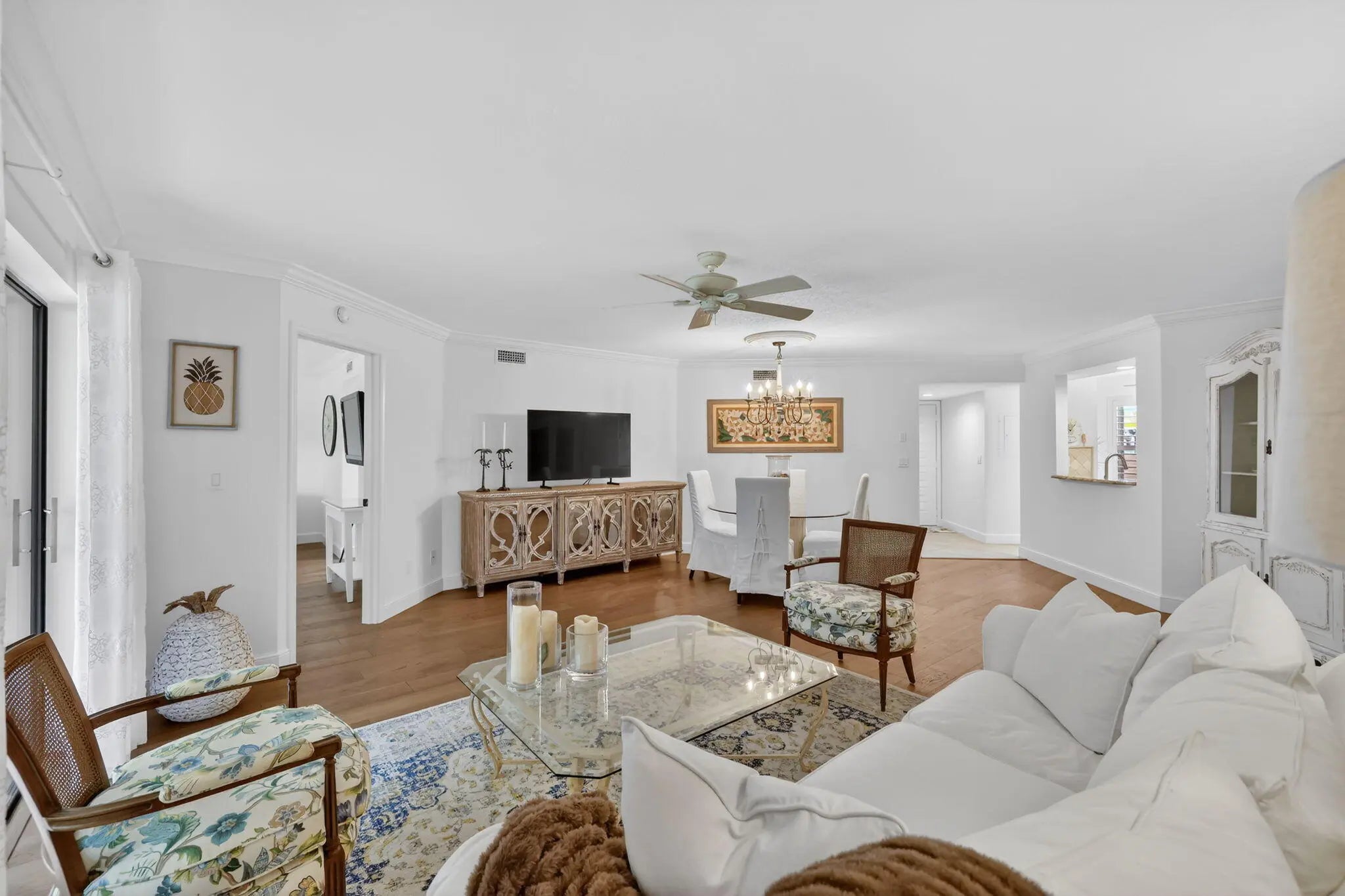 Pristine 2-bedroom, 2-bath lower-level condo in the desirable 55+ community of Montego Cove. Enjoy top-of-the-line wood flooring, elegant crown molding in the living area and primary bedroom, and a newer A/C system. The remodeled kitchen features wood cabinetry, granite countertops, newer appliances, and a cozy breakfast nook. The primary suite offers two walk-in closets and a beautifully renovated bathroom with a walk-in shower. Relax in the sunroom overlooking a tranquil butterfly garden. Montego Cove offers over 50 acres of lush landscaped grounds with lakes, two pools, an active clubhouse, and tennis and pickleball courts. Fully gated and perfect for walking and biking. Close to downtown Stuart and all it has to offer. The perfect place to spend your winters or live year round.