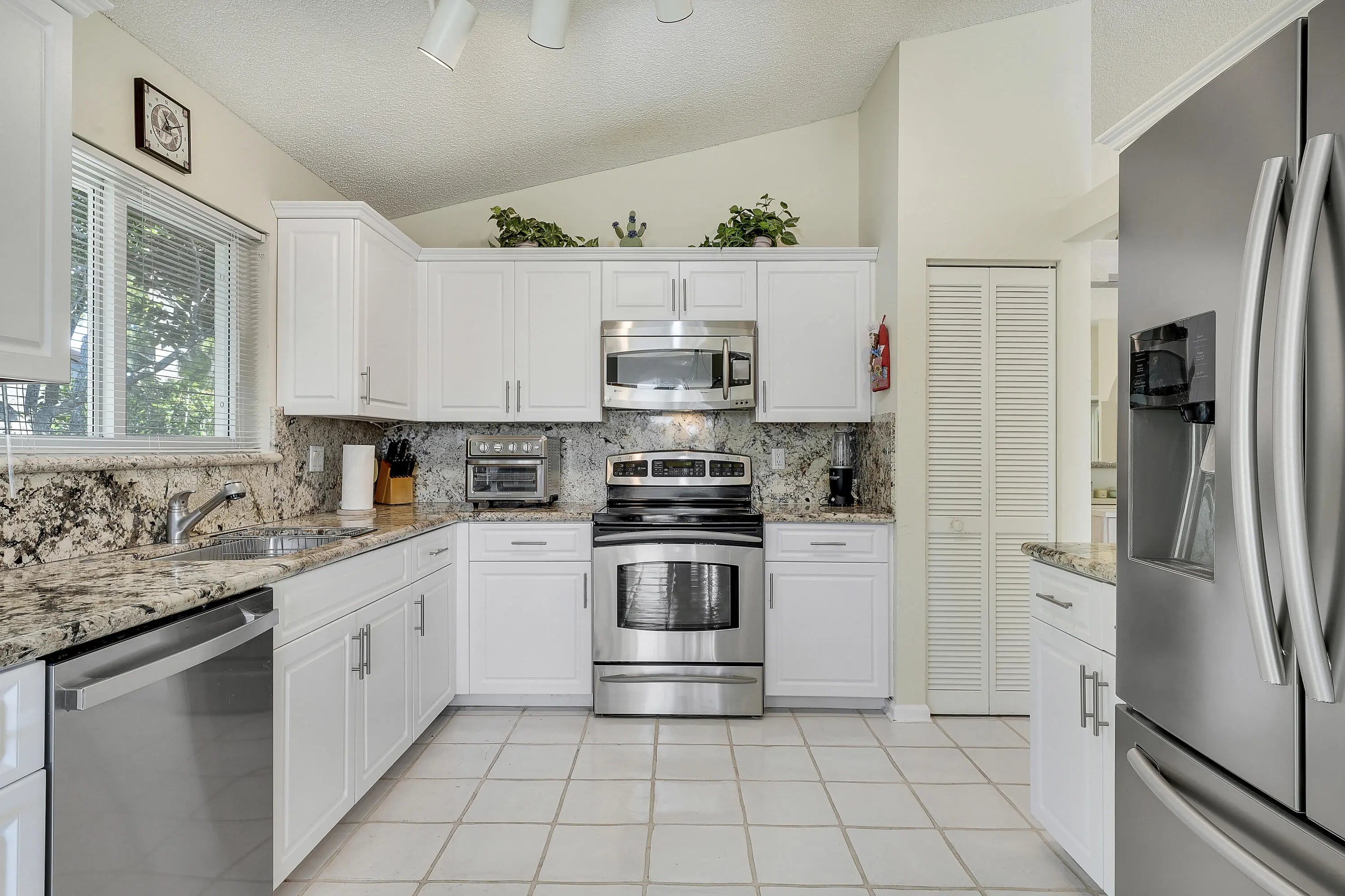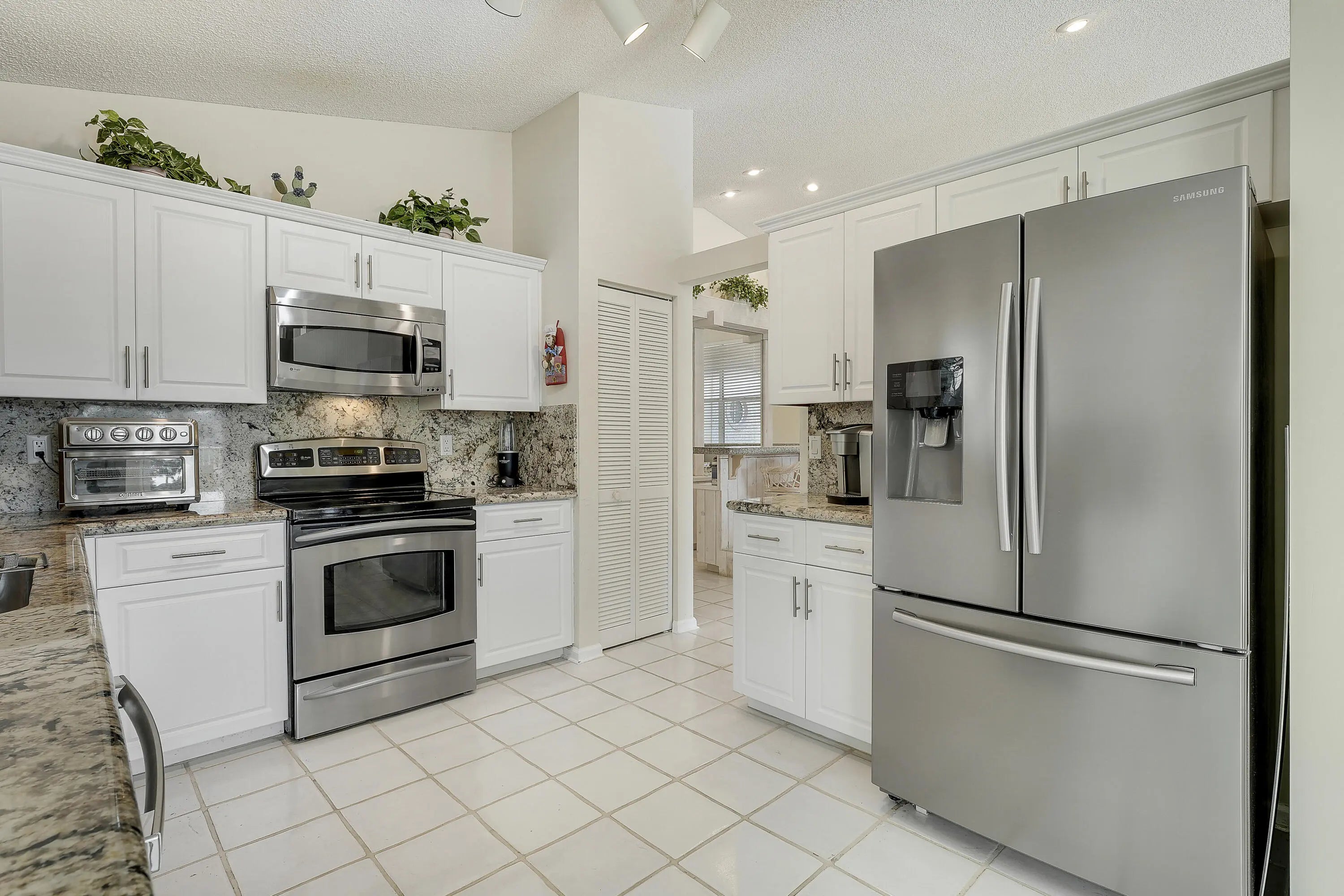 This exceptional three-bedroom, two-bath single-family residence is ideally situated on a picturesque lake in the desirable Palomar community of Boca Pointe. The home features a spacious open-concept floor plan filled with abundant natural light and highlighted by vaulted ceilings. The kitchen has white cabinetry, granite countertops, and stainless-steel appliances. Impact-resistant sliding glass doors provide serene views of the pool and lake blending indoor and outdoor living. Additional included an impact-rated two-car garage. Conveniently located near I-95 and the Florida Turnpike, with easy access to dining, shopping, top-rated schools, and Boca Raton's beaches. Boca Pointe is a non-mandatory country club community.