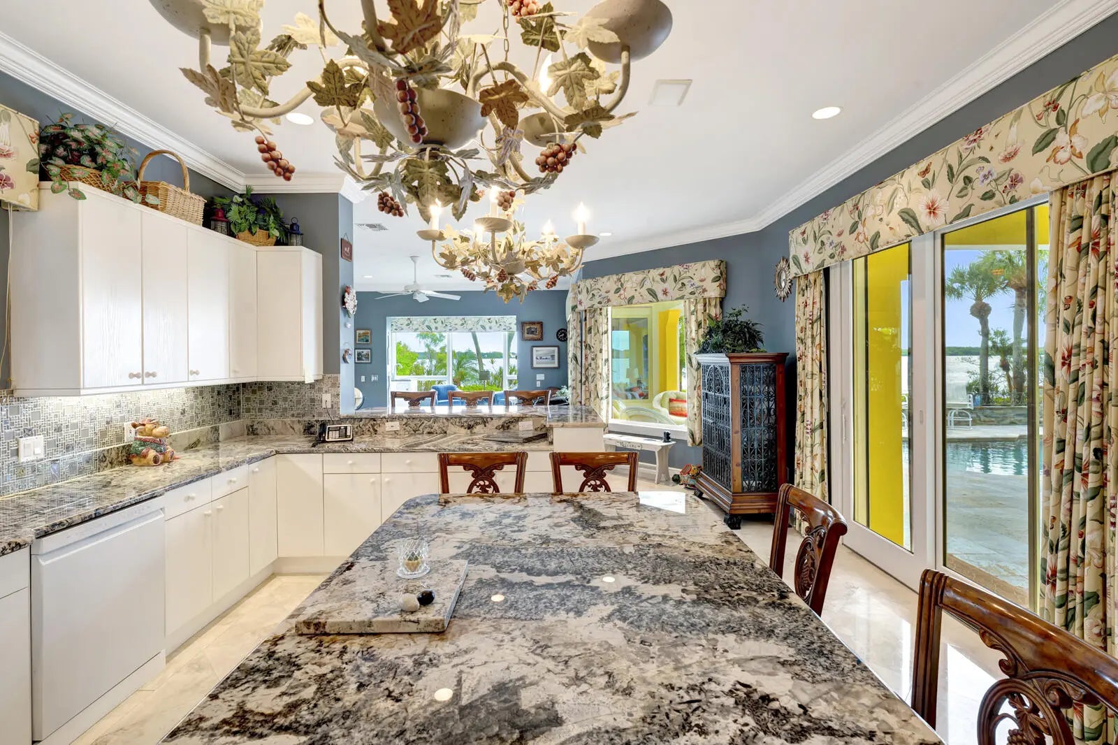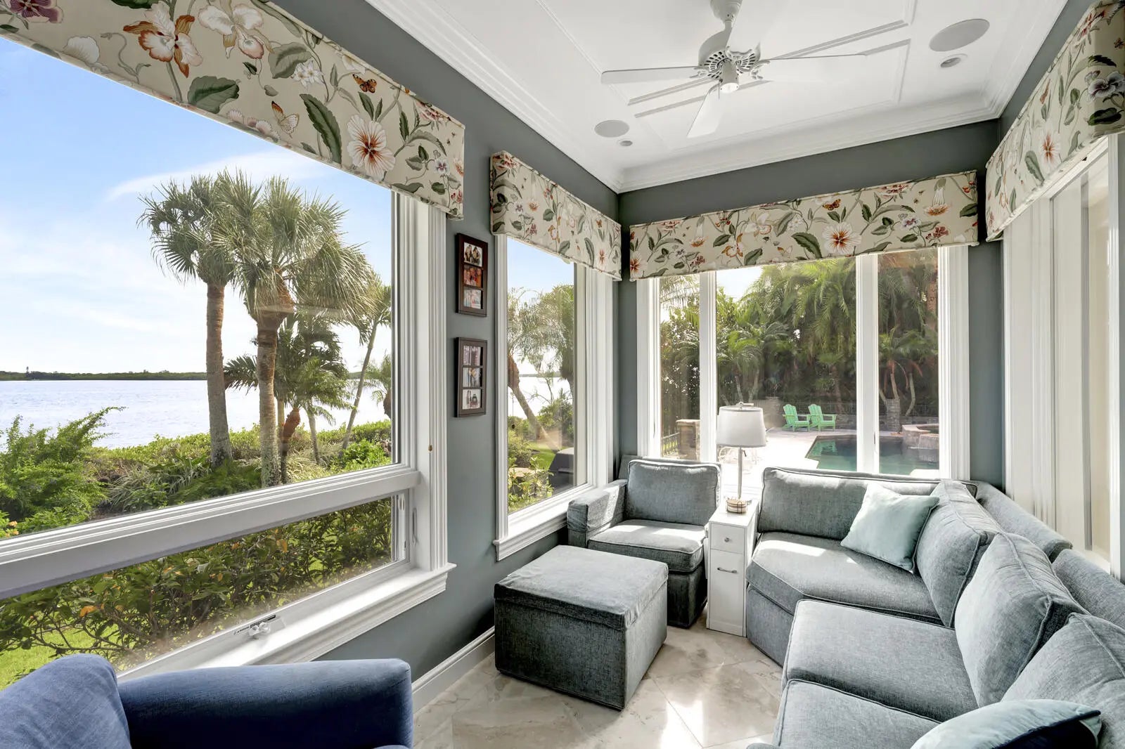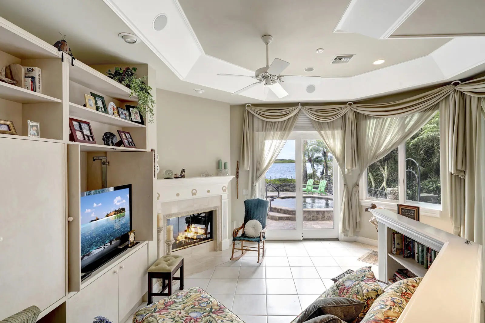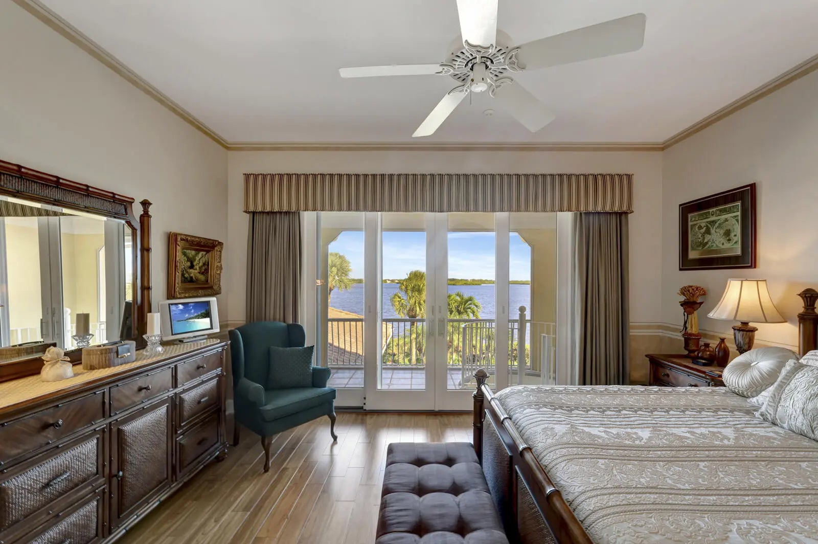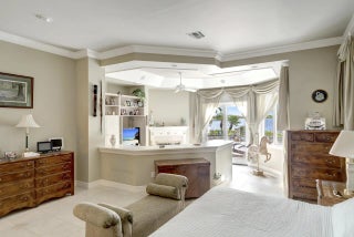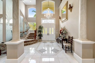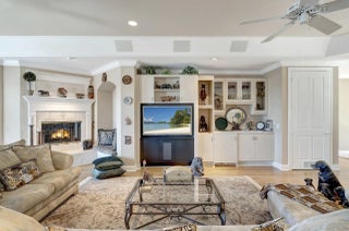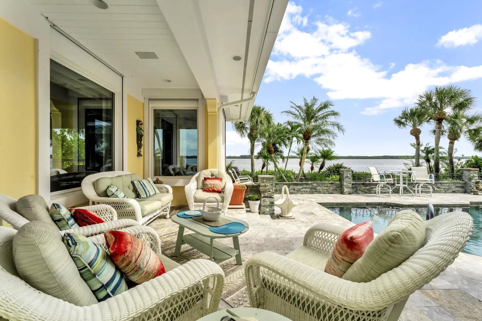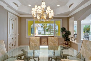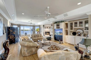 Refined riverfront estate spanning 8,123 sq ft on a .45-acre parcel with 100' of protected shoreline. Five bedrooms, six baths, heated pool and spa, climate-controlled wine room, and retention-secured waterfront. A gracious foyer opens to a dramatic riverfront living room. First-floor primary suite offers dual closets, spa bath, private stair access to dual dens, and a fireplace sitting room. Island kitchen flows into multiple living areas. Upstairs includes a lounge with wet bar and fireplace and a dedicated billiard room. custom millwork, and exceptional natural light throughout!