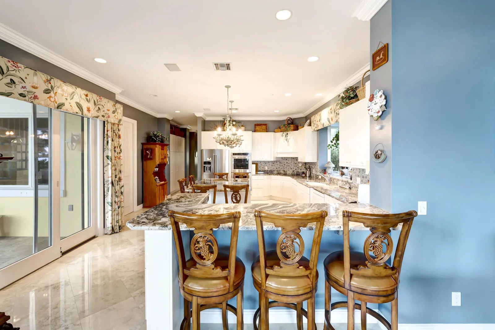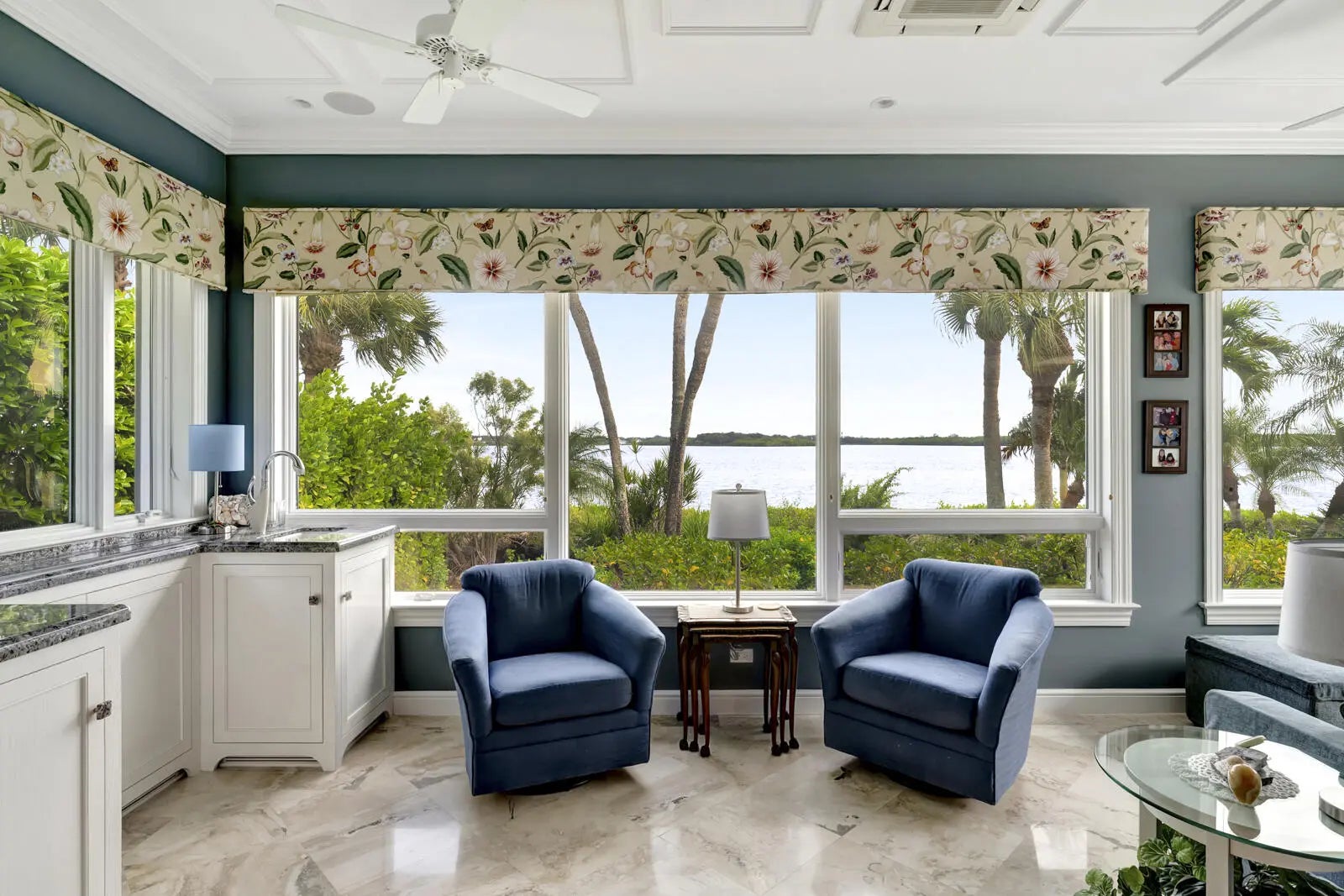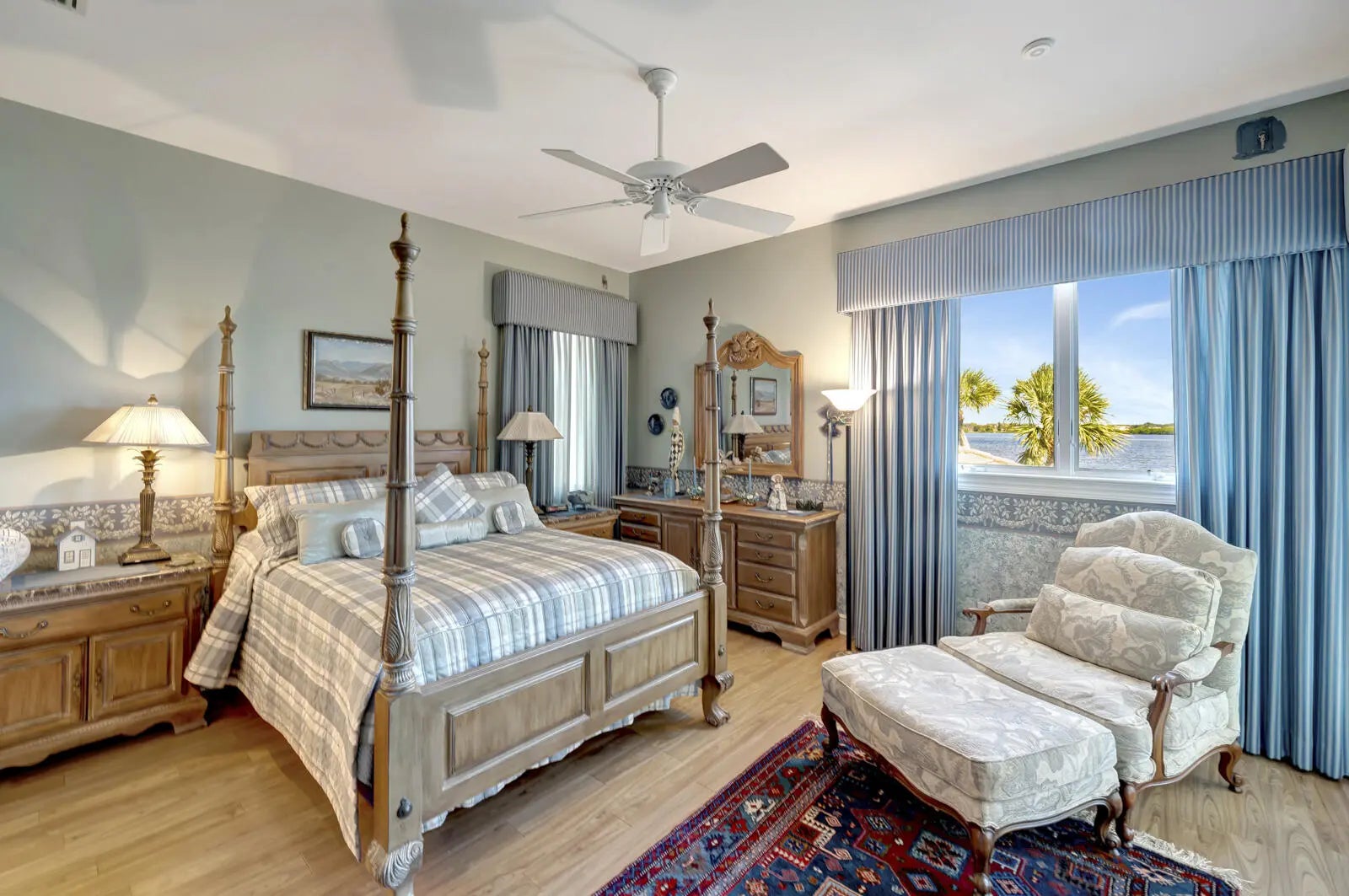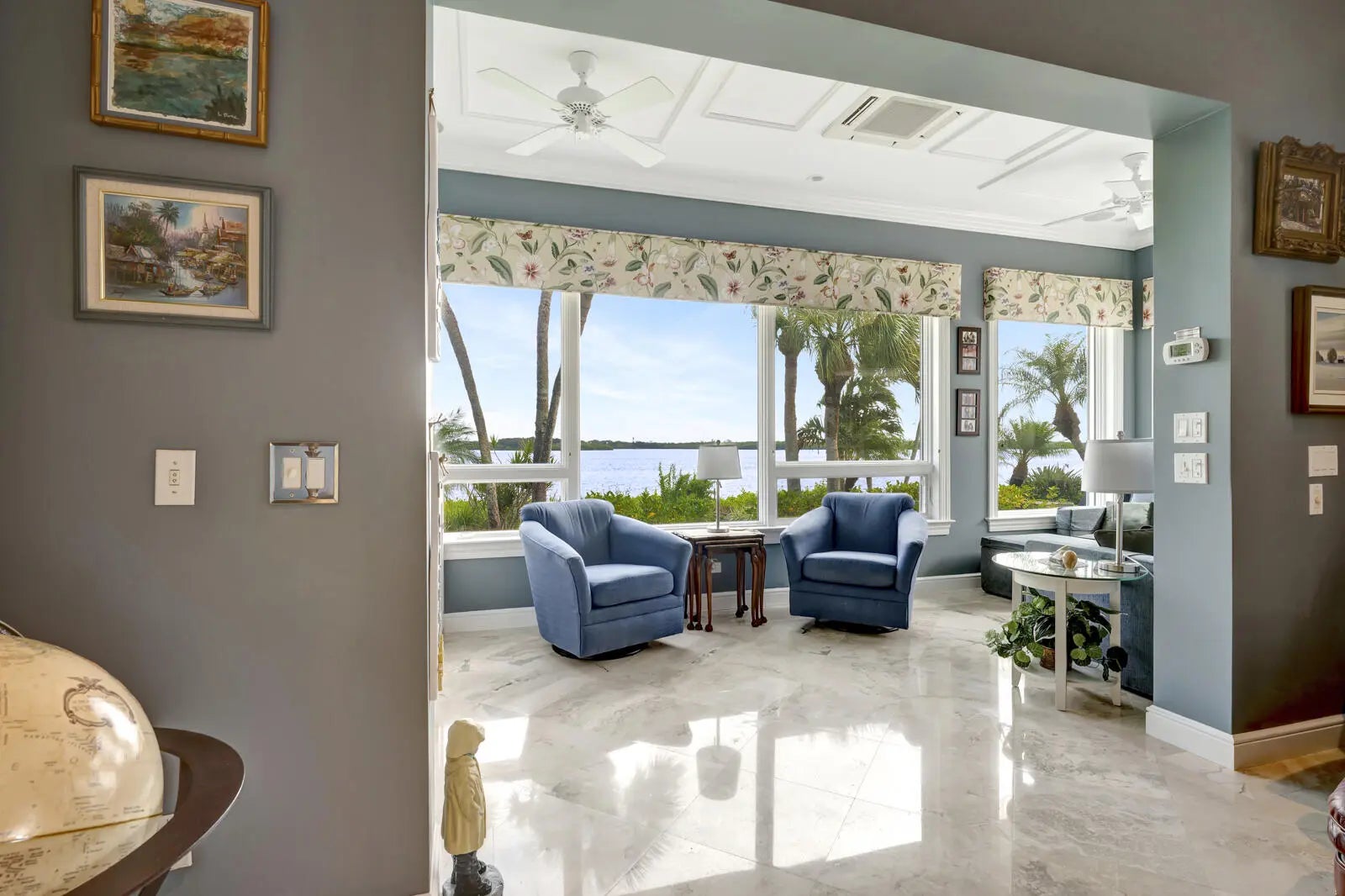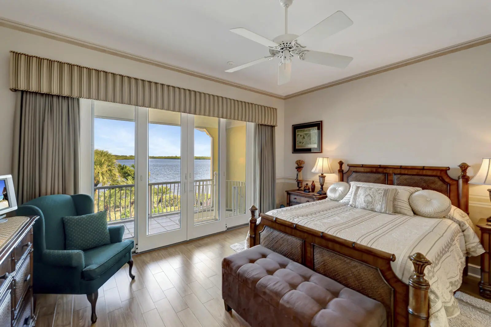 Refined riverfront estate spanning 8,123 sq ft on a .45-acre parcel with 100' of protected shoreline. Five bedrooms, six baths, heated pool and spa, climate-controlled wine room, and retention-secured waterfront. A gracious foyer opens to a dramatic riverfront living room. First-floor primary suite offers dual closets, spa bath, private stair access to dual dens, and a fireplace sitting room. Island kitchen flows into multiple living areas. Upstairs includes a lounge with wet bar and fireplace and a dedicated billiard room. custom millwork, and exceptional natural light throughout!