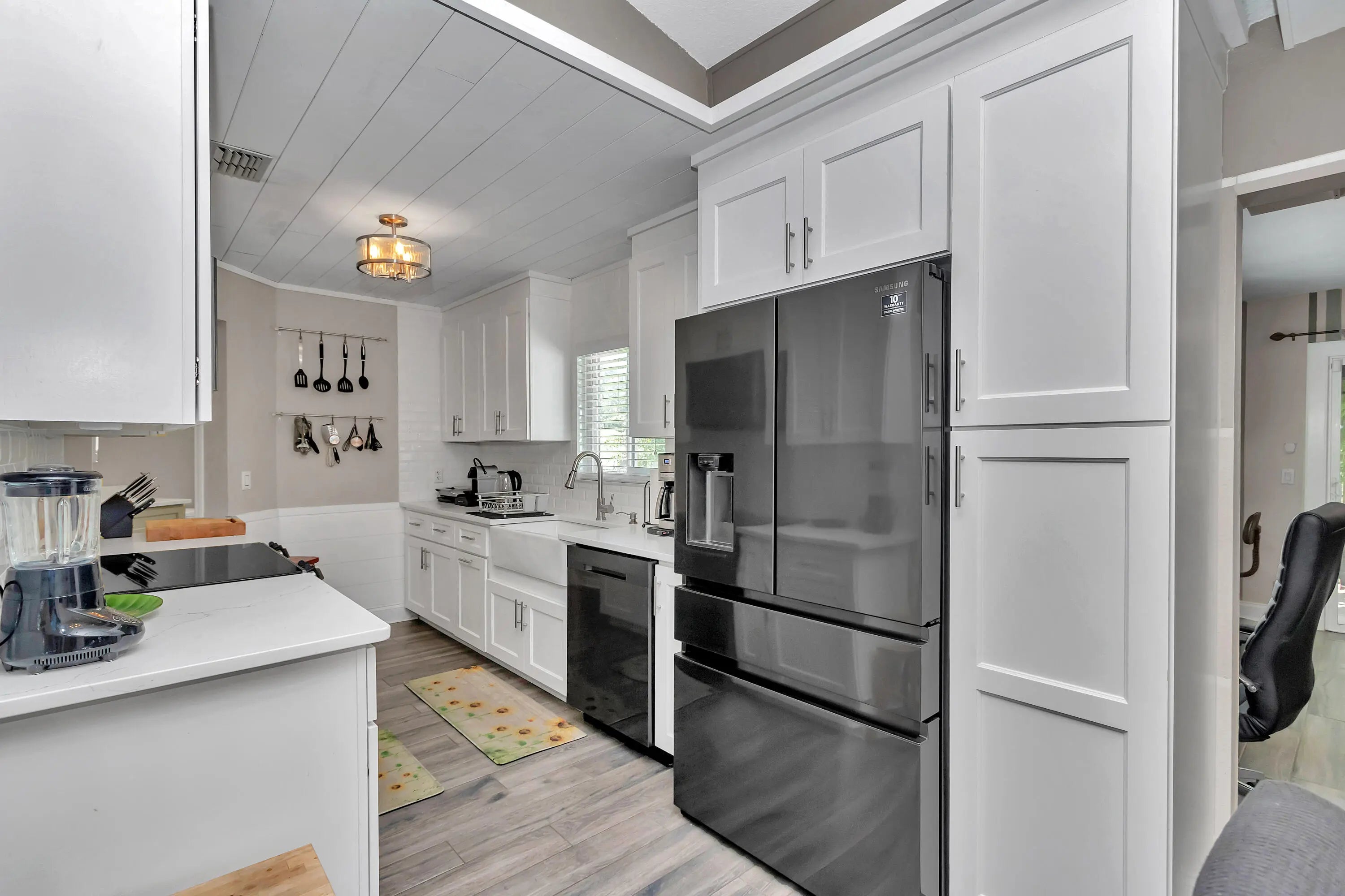 Move-in ready and beautifully updated, this 3-bedroom, 2-bath home offers extensive renovations inside and out, with generous indoor and outdoor living space. Thoughtfully upgraded, the home features 1,360 square feet of living area and 1,891 total square feet on a spacious 0.44-acre lot. The interior has been completely refreshed with tile flooring throughout, fresh interior paint, and updated windows installed in 2022. The kitchen has been fully renovated with new cabinetry, quartz countertops, modern fixtures, and new appliances, creating a bright and functional space for everyday living. Both bathrooms were fully renovated with contemporary finishes. Major system upgrades include a new shingle roof installed in 2021, and a new A/C system installed 2022. The exterior of the home was painted adding to its clean and well-maintained appearance. Additional features include a one-car garage with extra insulation and a newly finished epoxy floor. The home also offers a large, enclosed back patio ideal for relaxing or entertaining, as well as a front screened patio. A large backyard shed provides extra storage or workspace, and the expansive lot offers plenty of room for outdoor enjoyment. This home has been extensively renovated, offering peace of mind and modern comfort throughout. A true move-in-ready property with space, upgrades, and curb appealschedule your showing today. House is being sold as-is but is in perfect condition.