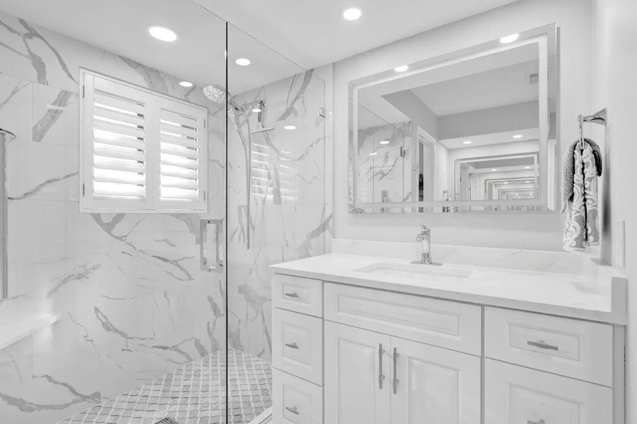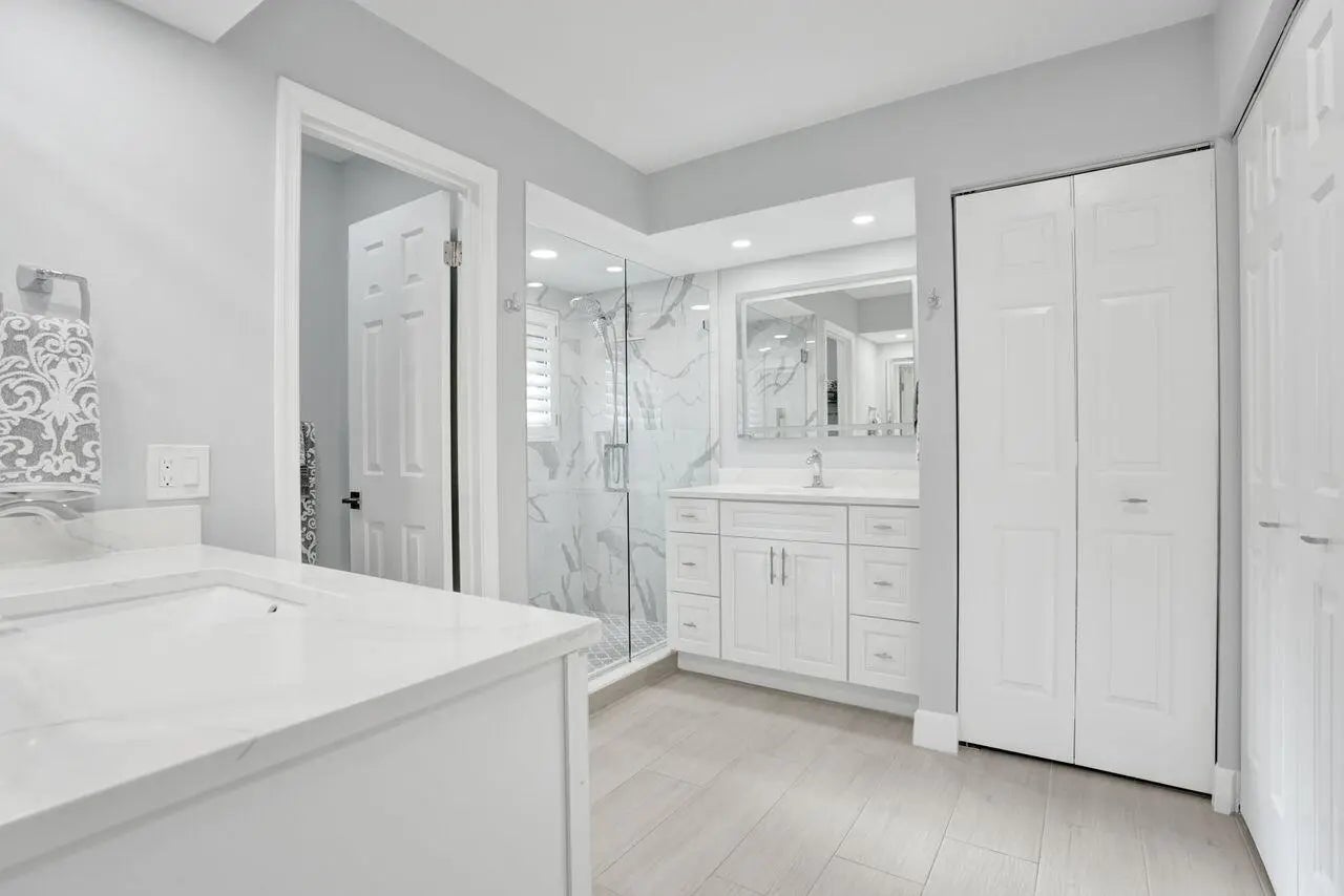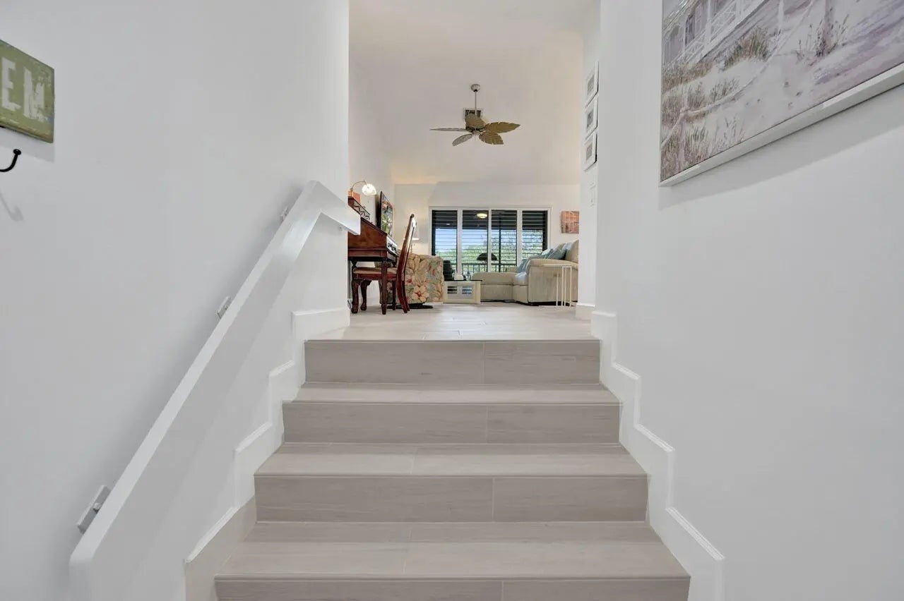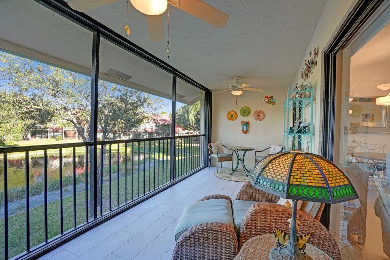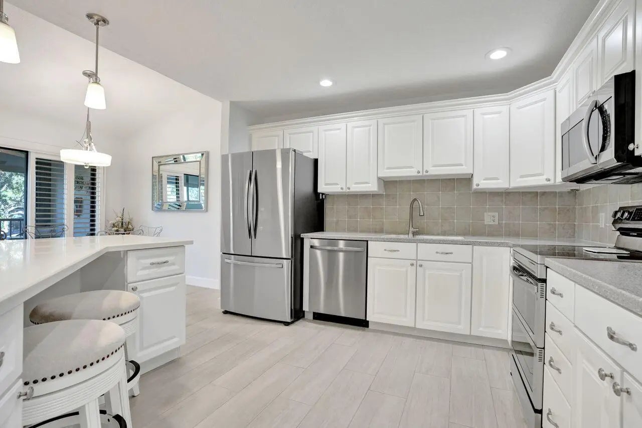 Beautifully renovated 2/2 condo in PGA National featuring a spacious owner's suite with sliders to a large screened patio with porcelain flooring overlooking the lake and fountain. Gourmet kitchen with new appliances and corian countertops, fresh paint, new lighting, updated bathrooms with quartz counter tops, walk in closet, new porcelain floors throughout, plantation shutters, and crown molding. Upgrades include new electric panels, impact glass, accordion shutters, and a 1 car garage. Walking distance to the community pool, 15 minutes to the beach, and optional membership available.