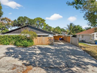 This property is half of a duplex in Beautiful Manatee Creek/Dixie Park close to the downtown historic district of Port Salerno-water and restaurants galore. Bring your boat, bring your truck, bring your friends. Plenty of parking for all. Don't sleep on the shed in the yard just asking to be converted into an office or guest house. EXTREEMLY PRIVATE house with fully fenced in yard. You won't find another property like this again. Property has been updated tip to tail with no expense spared. Beautiful waterproof laminate flooring throughout the property that is durable and stylish. White shaker kitchen with stainless steel appliances and massive sliding doors make the kitchen, living room and dining room the beach bungalow you have looking for. Both bathrooms are updated & designer. Sellers spared no expense turfing the complete lot, so the home is maintenance free. Large shed in the yard could easily be turned into an office or guest house. The complete interior and exterior have been freshly painted as well. Tankless water heater 2023-Air conditioner 2004 but is is serviced regularly and blows ICE COLD- seller does not know the age of the roof, it's older but has life left in it.- Over 10k in turf- brand new fencing around the complete property- waterproof vinyl throughout-completely remodeled bathrooms including tub & shower pan- all popcorn removed- new paint- new carport roof- extended driveway for parking. Best priced property in the area.