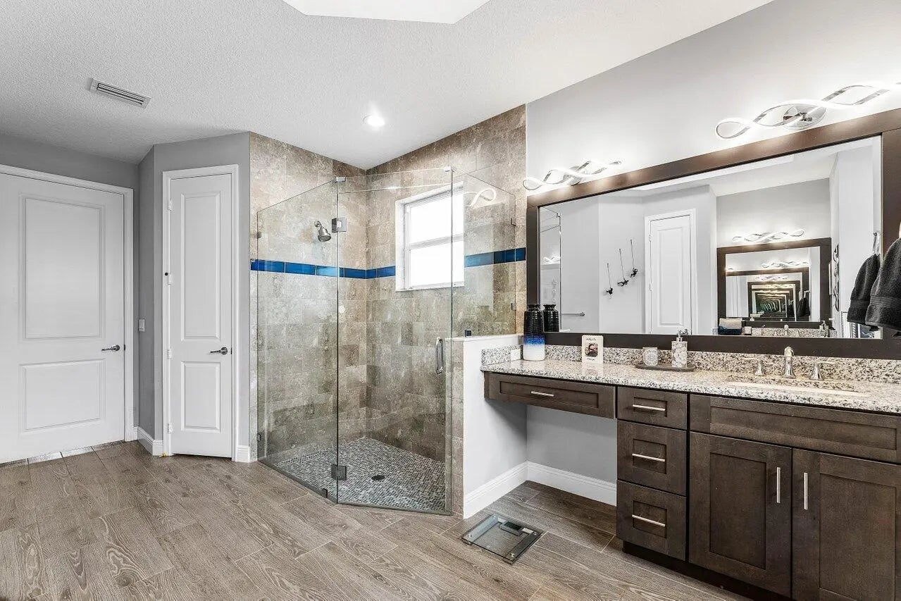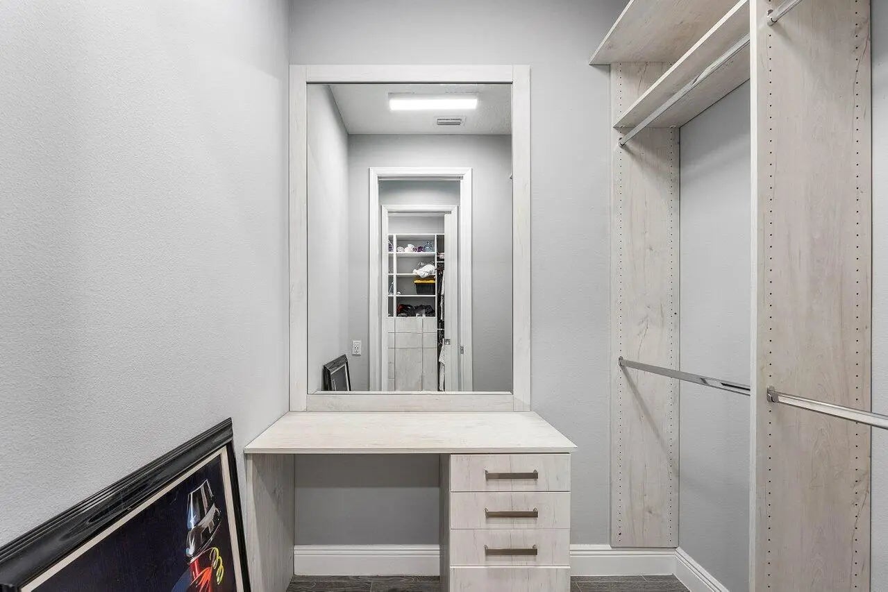 Cathedral Ceiling(s), High Ceilings, Vaulted Ceiling(s), Walk-In Closet(s), Bedroom Layout - Split, Custom Mirrors