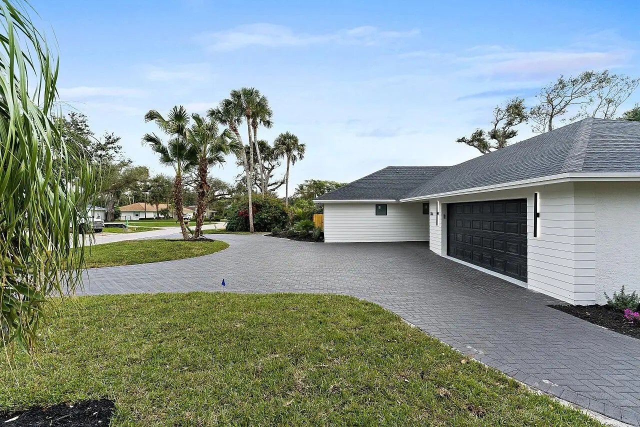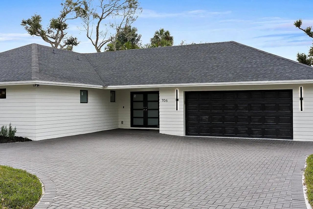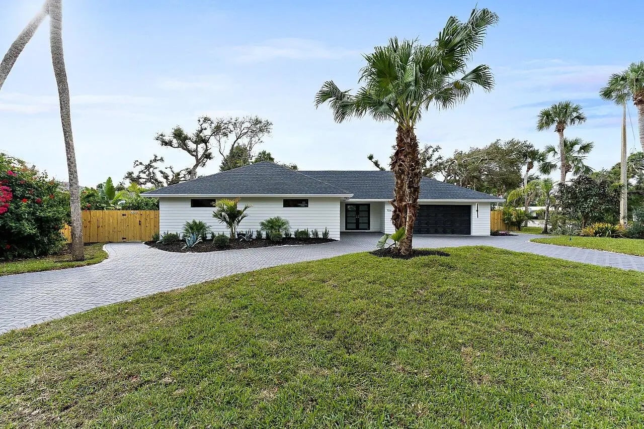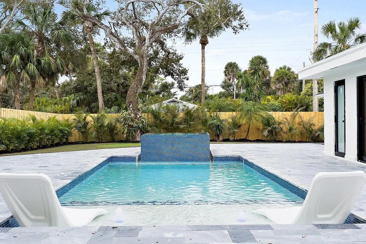 WALK TO THE BEACH! No expense spared in reinventing this exquisite true 3-bedroom home w/den. Major improvements completed in 2026 include new roof, impact glass doors/sliders, full electrical rewire w/new panel, new plumbing and sewer lines, spray foam insulation, new ductwork, and new A/C unit and handler. The stunning brand-new pool with raised spa features a sundeck, pool heater, and saltwater system, creating a private resort-style oasis. The chef's kitchen showcases ALL-AMERICAN custom wood cabinetry, Taj Mahal quartzite countertops, full backsplash, and a grand waterfall island. Designer finishes abound throughout, including beach oak porcelain tile flooring, crown molding, upgraded baseboards, solid wood core doors, LED recessed lighting, and statement light fixtures and fans The baths have been tastefully redesigned with new tile, vanities, and glass-enclosed shower/tub combinations. Additional highlights include an oversized laundry room with sink and upper and lower cabinetry, and a versatile denideal as a home office or gaming roomenclosed with a stylish barn door. The outdoor space impresses with a new fence, fresh landscaping, nearly 3,000 square feet of French-pattern marble decking, a putting green, and an outdoor shower. Modern conveniences include EV charging, epoxy garage floor, impact garage door, Ring doorbell, smart appliances, and a custom living room wall with electric fireplace. The primary suite is a true retreat, featuring a massive 8x14 custom closet and a spa-inspired 6x6 shower with bench, niche, six jets, double-door entry, rain head, standard head, and handheld feature. Natural light pours in from the moment you step off the brand-new driveway through the custom front door into the open, entertainer-friendly main living area.