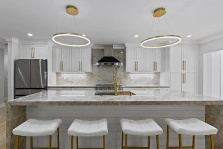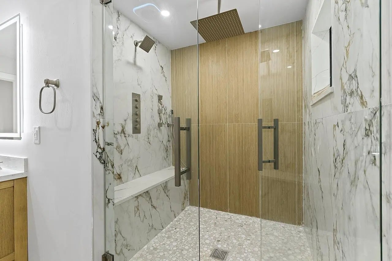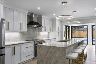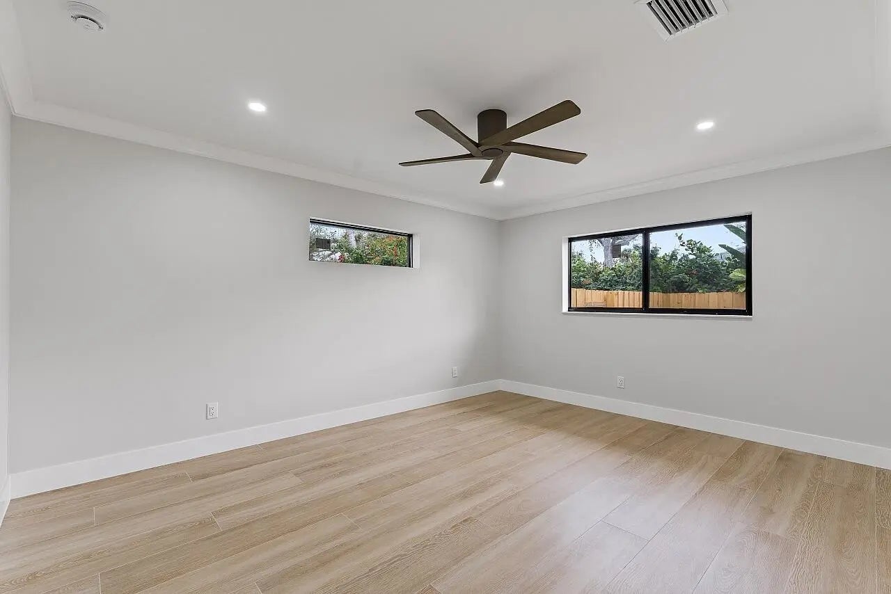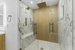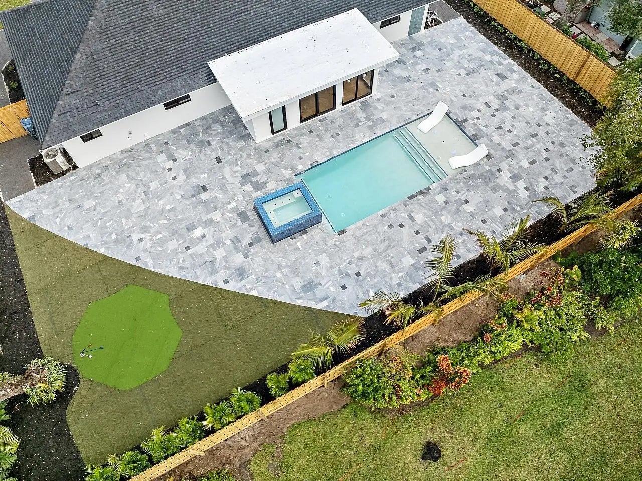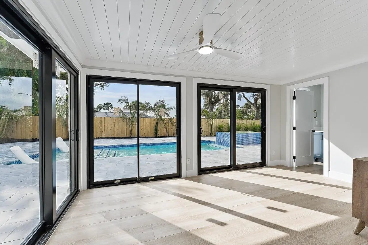WALK TO THE BEACH! No expense spared in reinventing this exquisite true 3-bedroom home w/den. Major improvements completed in 2026 include new roof, impact glass doors/sliders, full electrical rewire w/new panel, new plumbing and sewer lines, spray foam insulation, new ductwork, and new A/C unit and handler. The stunning brand-new pool with raised spa features a sundeck, pool heater, and saltwater system, creating a private resort-style oasis. The chef's kitchen showcases ALL-AMERICAN custom wood cabinetry, Taj Mahal quartzite countertops, full backsplash, and a grand waterfall island. Designer finishes abound throughout, including beach oak porcelain tile flooring, crown molding, upgraded baseboards, solid wood core doors, LED recessed lighting, and statement light fixtures and fans The baths have been tastefully redesigned with new tile, vanities, and glass-enclosed shower/tub combinations. Additional highlights include an oversized laundry room with sink and upper and lower cabinetry, and a versatile denideal as a home office or gaming roomenclosed with a stylish barn door. The outdoor space impresses with a new fence, fresh landscaping, nearly 3,000 square feet of French-pattern marble decking, a putting green, and an outdoor shower. Modern conveniences include EV charging, epoxy garage floor, impact garage door, Ring doorbell, smart appliances, and a custom living room wall with electric fireplace. The primary suite is a true retreat, featuring a massive 8x14 custom closet and a spa-inspired 6x6 shower with bench, niche, six jets, double-door entry, rain head, standard head, and handheld feature. Natural light pours in from the moment you step off the brand-new driveway through the custom front door into the open, entertainer-friendly main living area.