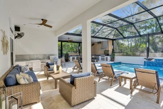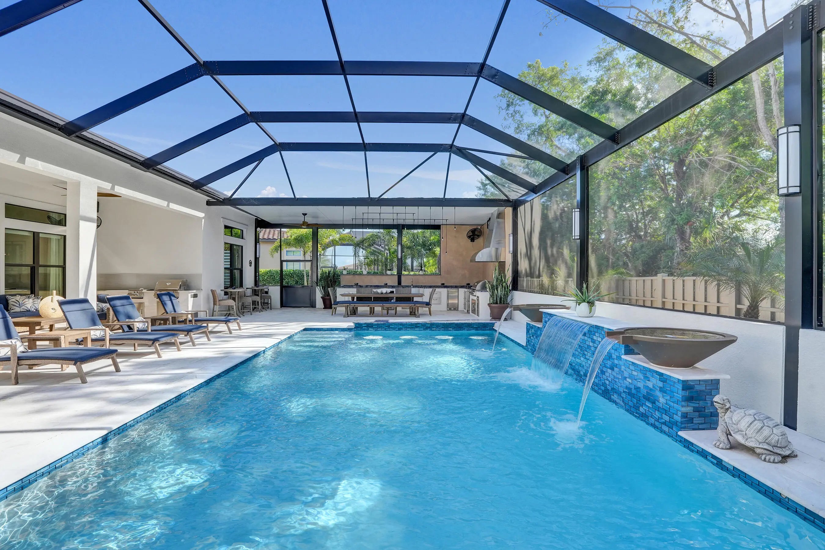 Welcome to The Falls At Parkland, a premier upscale 55+ community. This Boca Chica model features three beds plus a office/den and 3.5 baths. The fully enclosed backyard showcases a resort-style outdoor oasis complete w inground pool, cascading waterfalls, outdoor kitchens,custom lighting—creating a true vacation-like setting. The interior is richly appointed w extensive custom upgrades,gourmet kitchen w dual-layer cabinetry, custom bar, upgraded quartzite countertops. Flooring throughout main living areas consists of Italian ceramic tile set on the diagonal, bedrooms have upgraded carpeting. Additional highlights - 3 car HarleyDavidson-inspired garage w epoxy floor, 12-14 ft ceilings, abundant rec lights. The kitchen flows seamlessly into dining and fam rooms, ideal for everyday living and entertaining. 2 zone air & heat. Whole house generator and water softener completes the picture to this fabulous home. Residents enjoy access to an impressive clubhouse offering numerous amenities, including a café, pickleball, bocce, various clubs. Conveniently located to shopping and major roadways.