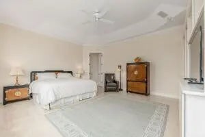 A rare riverfront lease in one of Stuart's most coveted locations. This 4-bedroom, 4.5-bath estate sits on over 1.2 acres with wide-water views and a private dock. Designed for elevated living, it features soaring ceilings, a gourmet kitchen with Viking and Sub-Zero appliances, an oversized pantry, and a 3-car garage. Step outside to a resort-style pool and spa, expansive patio, and lush tropical grounds ideal for entertaining or sunset relaxation. Just minutes from downtown Stuart, beaches, the inlet, airport, hospital, and A-rated schools. Offered at $22,500/month annually, with seasonal rates available.