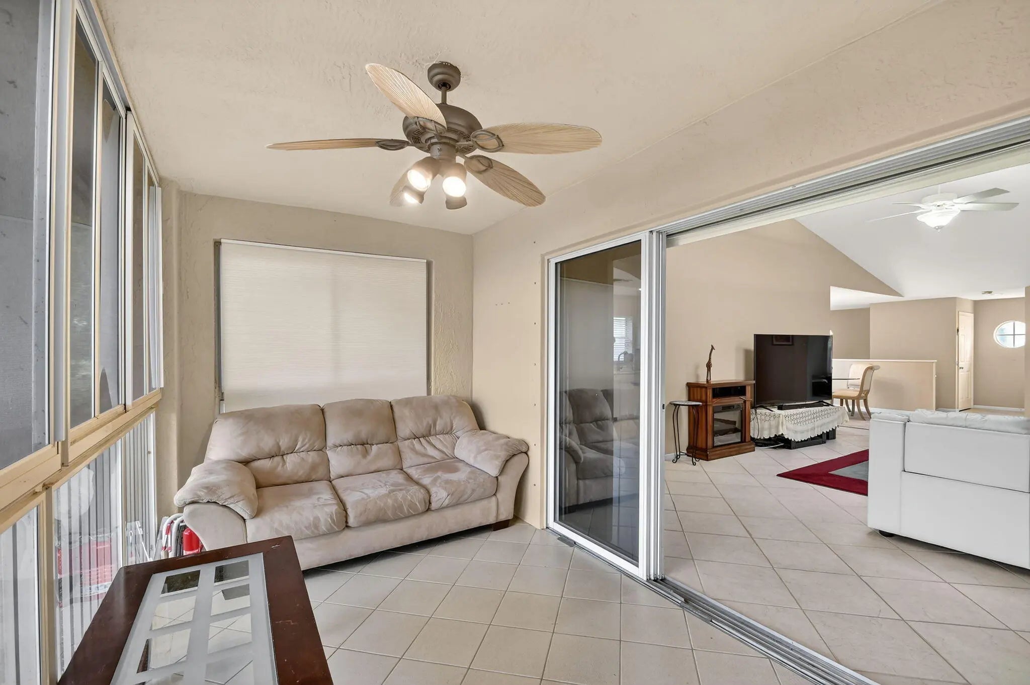 Spacious 2,094 sq ft upstairs coach home with Vaulted ceilings, glass enclosed patio, 1 car garage & private elevator. Updates include granite kitchen with newer appliances. ceramic floors. Great view from Patio. Condo dues include water, internet. alarm system, Comcast TV. insurance & maintenance of dwelling. Can be rented immediately. No assessments (new roof installed 2024), Furniture can be available if buyer desires. Coral Lakes is most desirable active adult community with new clubhouse, cafe, indoor & outdoor pools, gym, theatre, tennis & pickle ball, and 30 social clubs, all included with occupancy,