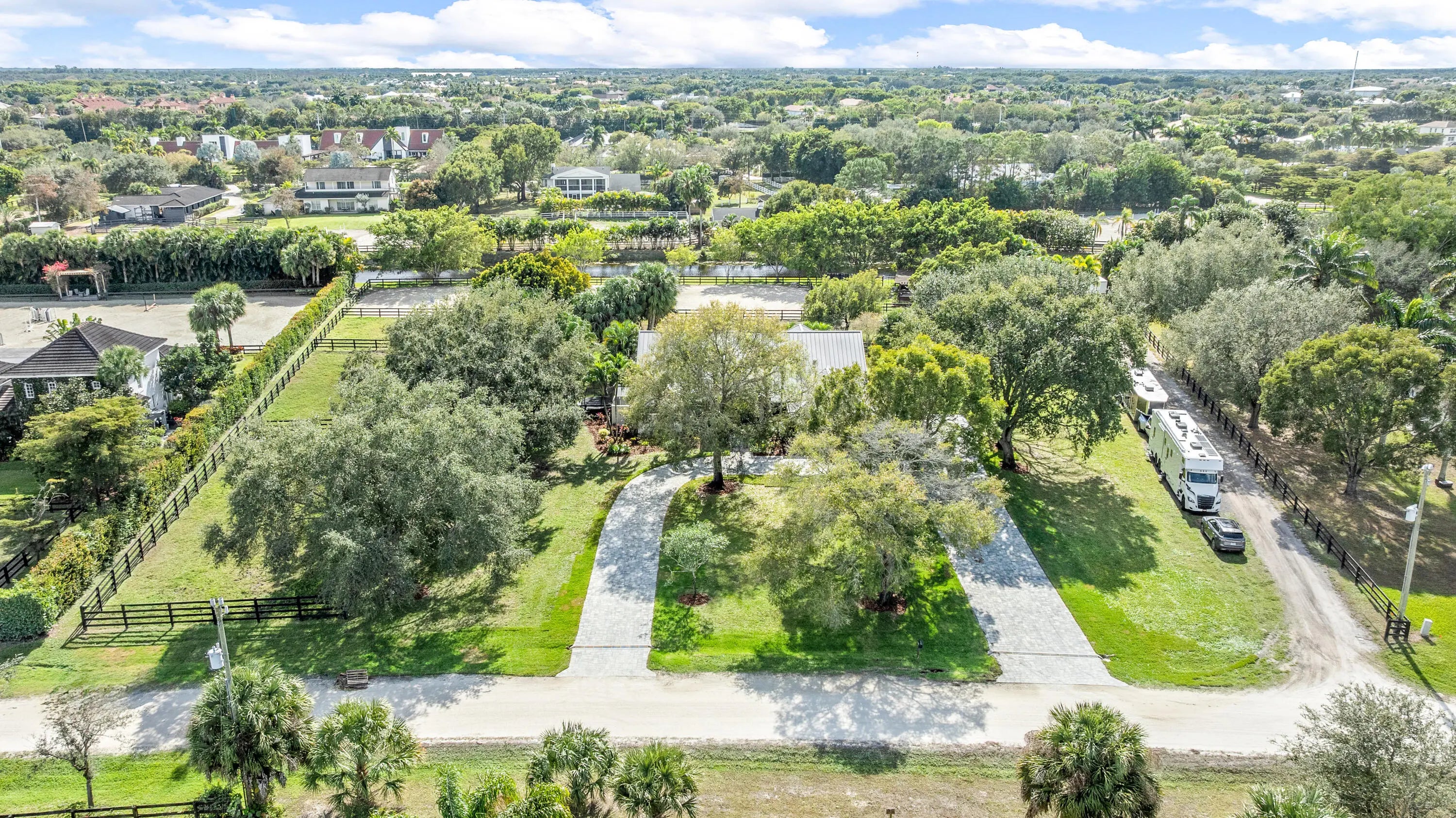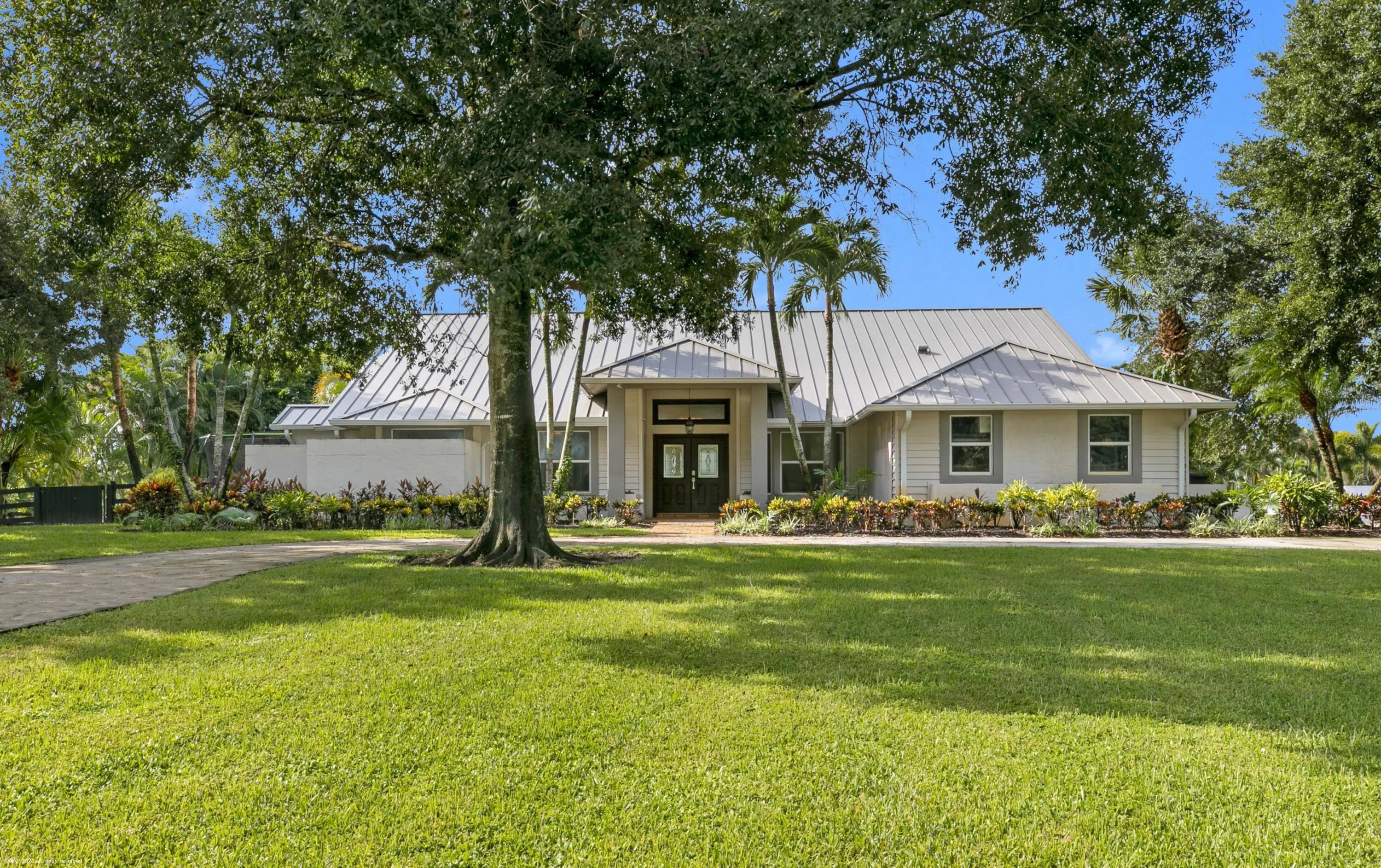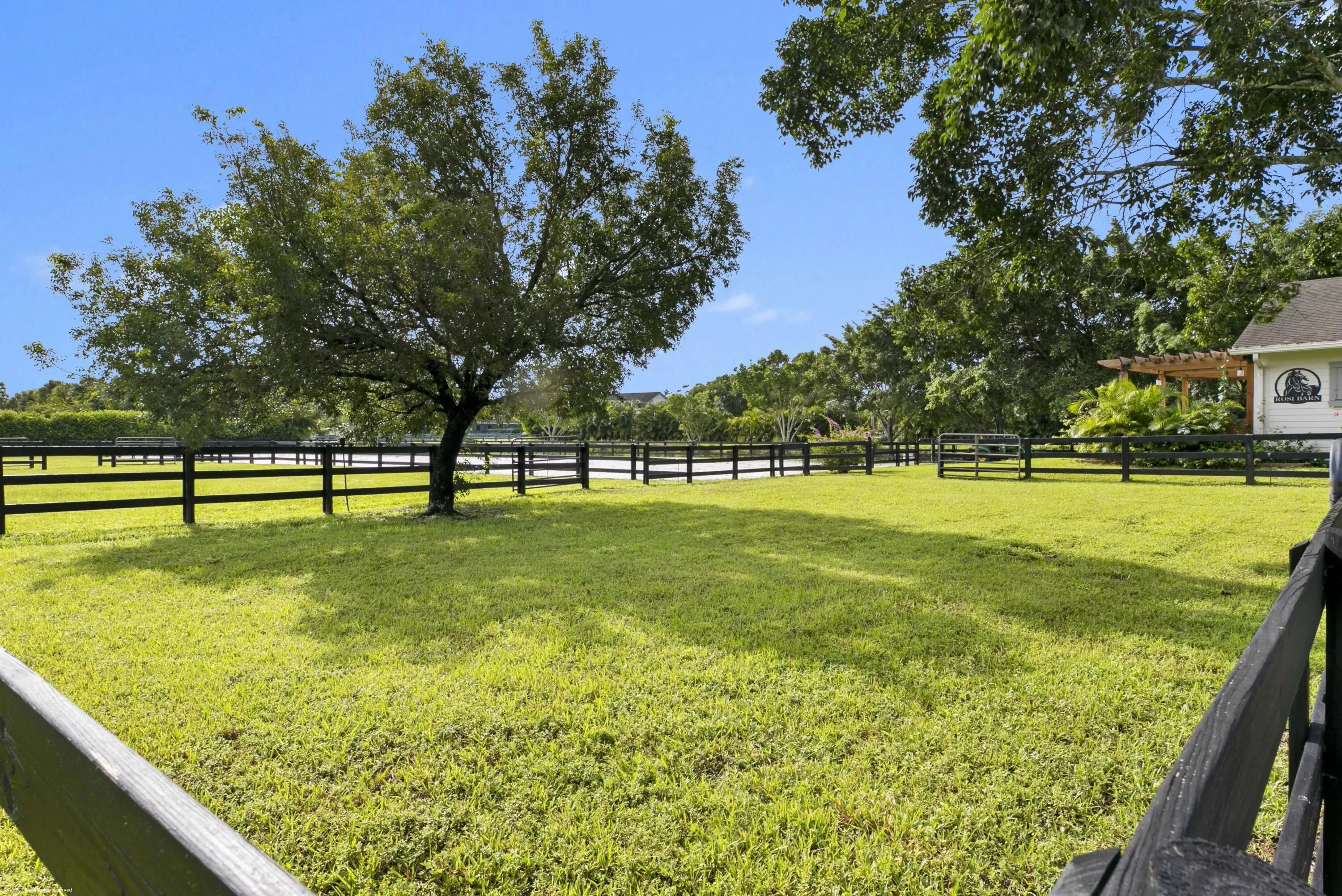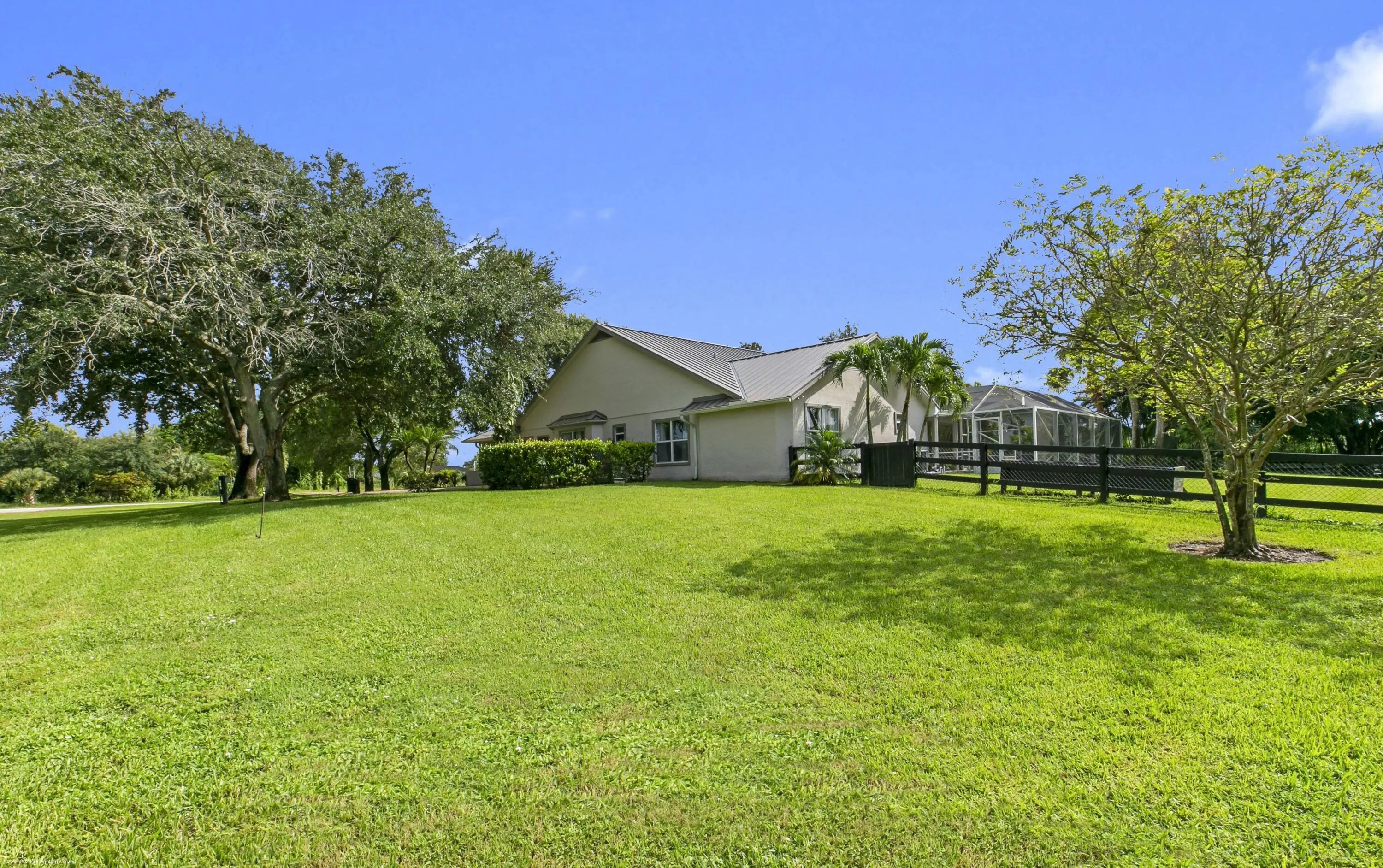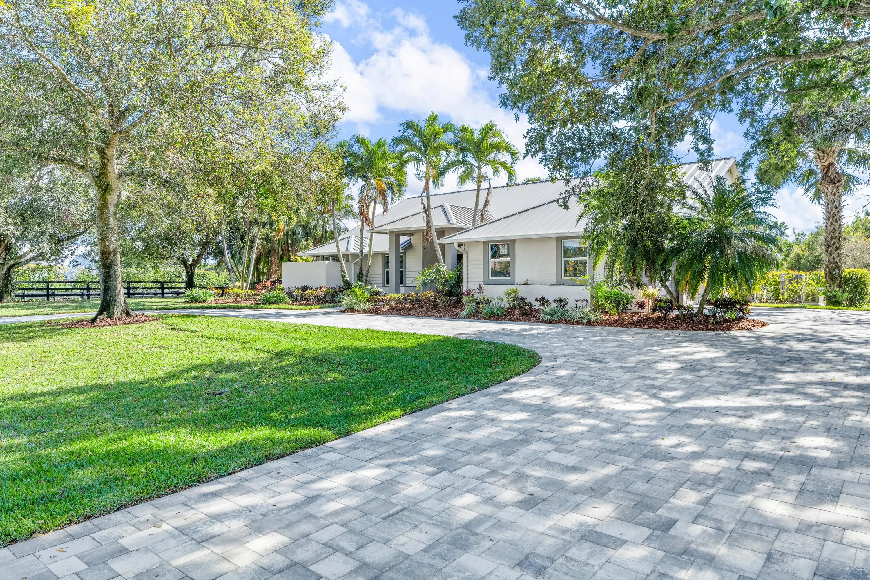 Arguably the best deal farm deal in town! Move-in ready for season! Renovated farm with great turnout on oversized lot adjacent to bridle path! 5 bedroom + office home and CBS 6-stall barn on 2.39 acres in the highly sought after neighborhood of Saddle Trail Park! Boasting a light and bright contemporary design, this stunning property has everything you need to live the Wellington lifestyle. Large fully screened in patio with heated pool and covered outdoor living space. Outfitted with full impact windows throughout, a new roof and a whole home generator for your piece of mind. The barn features a new stall system with durable synthetic wood, tongue and groove ceiling, a chic renovated tack room and beautiful pergola wash racks. The CBS barn has roll down doors and functional shutters. There is a brand new paver diveway and new fire pit. The 90' X 210' arena has fresh fiber footing and the properties' fences including the 5 large paddocks all have new fencing. There are also two storage sheds, feed room, and a private entrance to the barn. If desired, this property is zoned for up to 10 stalls in total. Possibly available fully furnished and turnkey!! Easy hack to Wellington International