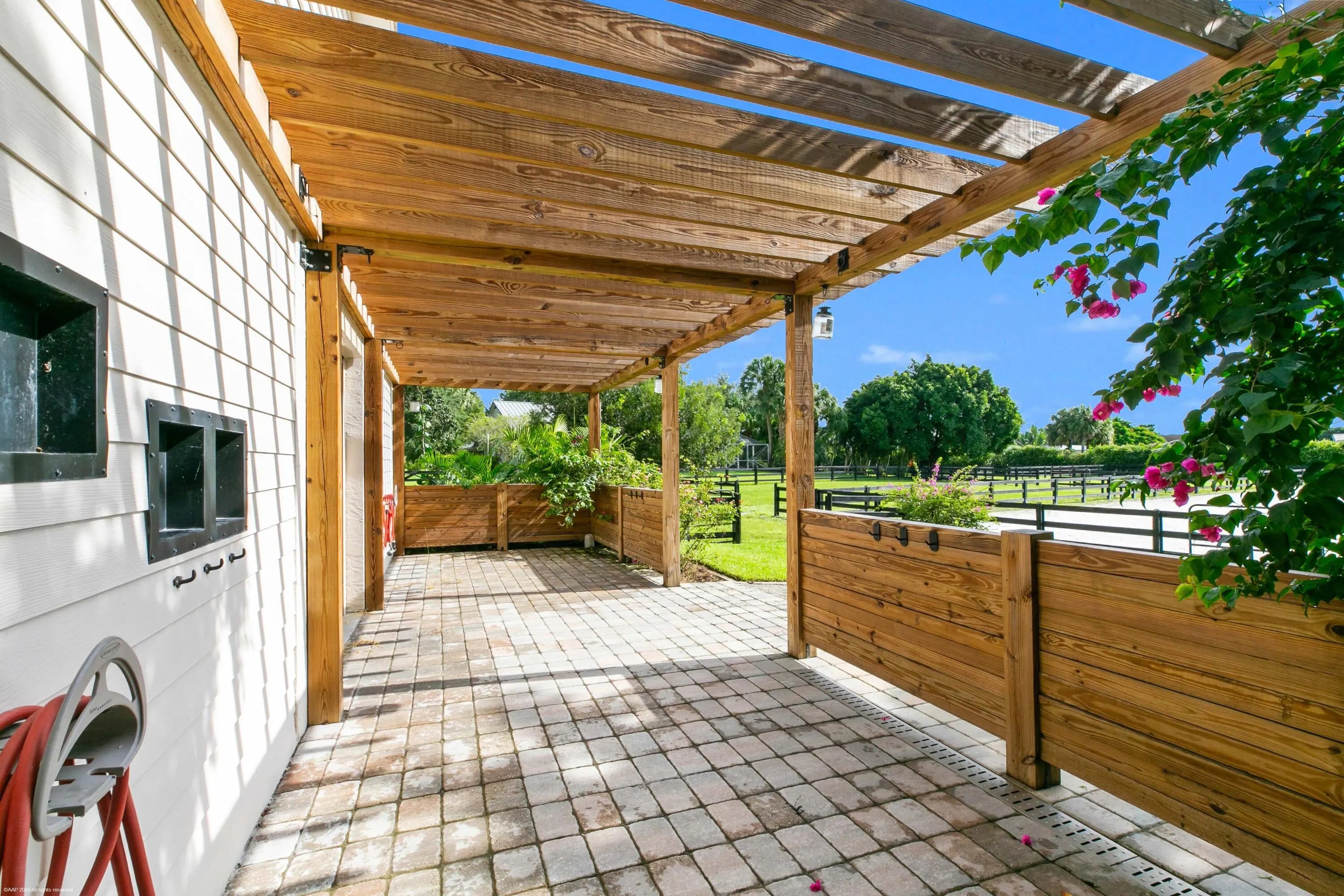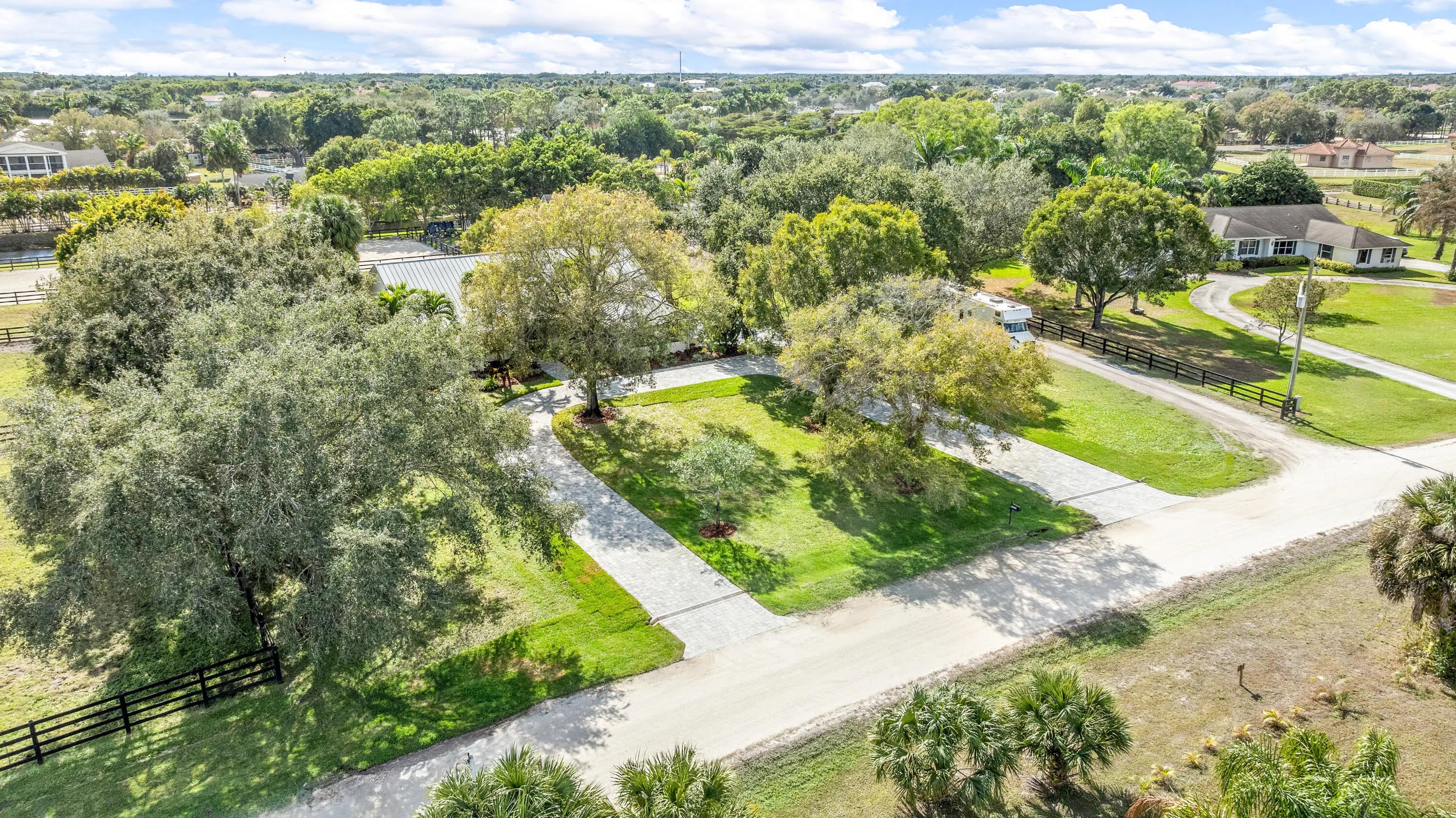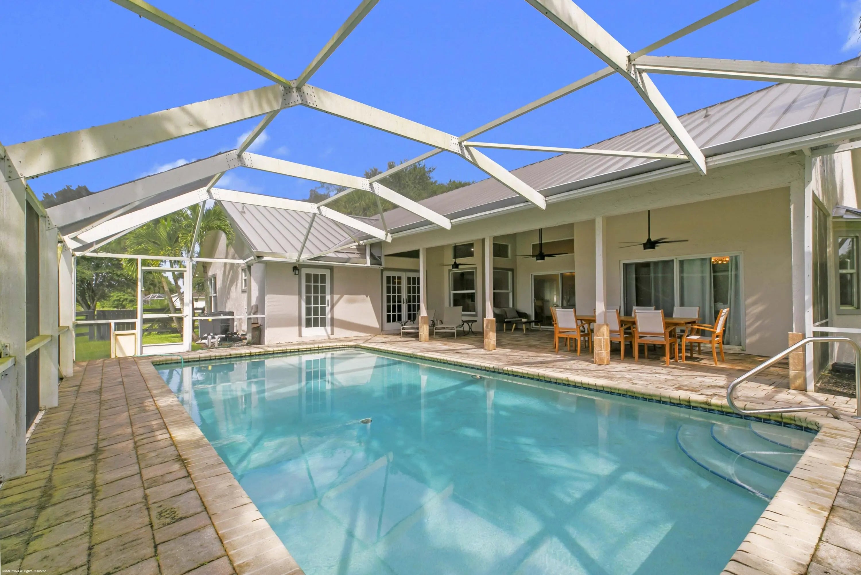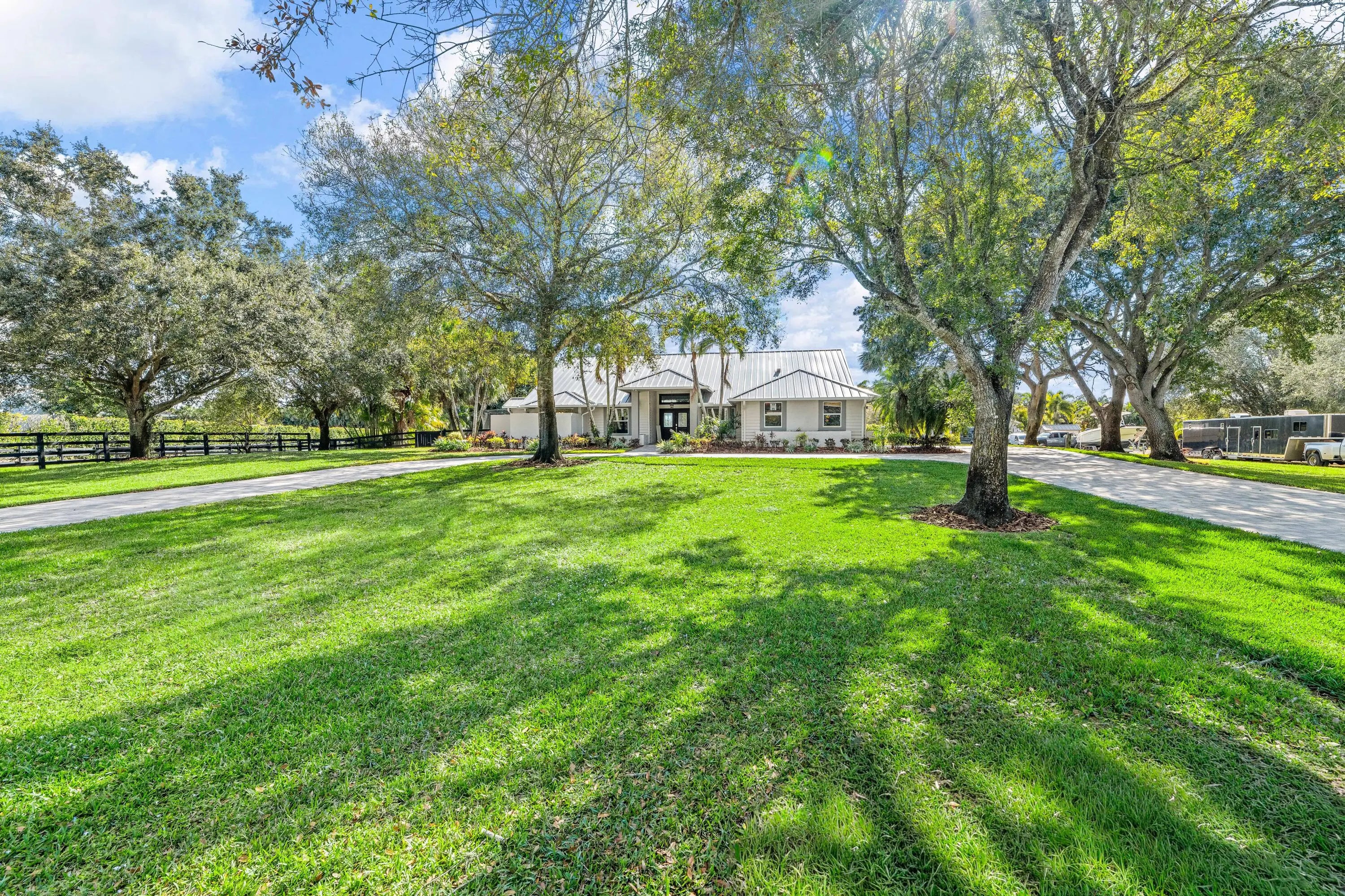 Arguably the best deal farm deal in town! Move-in ready for season! Renovated farm with great turnout on oversized lot adjacent to bridle path! 5 bedroom + office home and CBS 6-stall barn on 2.39 acres in the highly sought after neighborhood of Saddle Trail Park! Boasting a light and bright contemporary design, this stunning property has everything you need to live the Wellington lifestyle. Large fully screened in patio with heated pool and covered outdoor living space. Outfitted with full impact windows throughout, a new roof and a whole home generator for your piece of mind. The barn features a new stall system with durable synthetic wood, tongue and groove ceiling, a chic renovated tack room and beautiful pergola wash racks. The CBS barn has roll down doors and functional shutters. There is a brand new paver diveway and new fire pit. The 90' X 210' arena has fresh fiber footing and the properties' fences including the 5 large paddocks all have new fencing. There are also two storage sheds, feed room, and a private entrance to the barn. If desired, this property is zoned for up to 10 stalls in total. Possibly available fully furnished and turnkey!! Easy hack to Wellington International