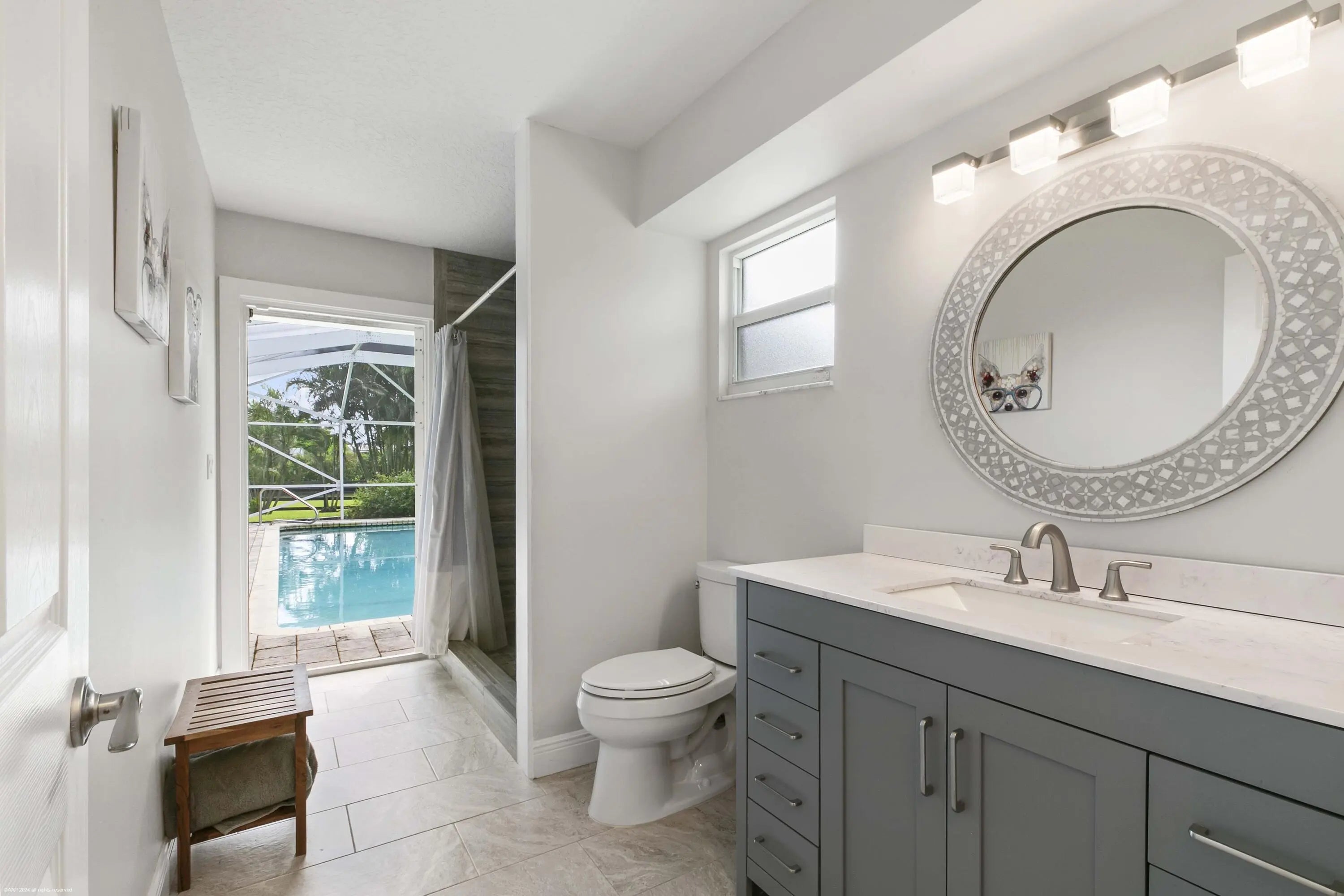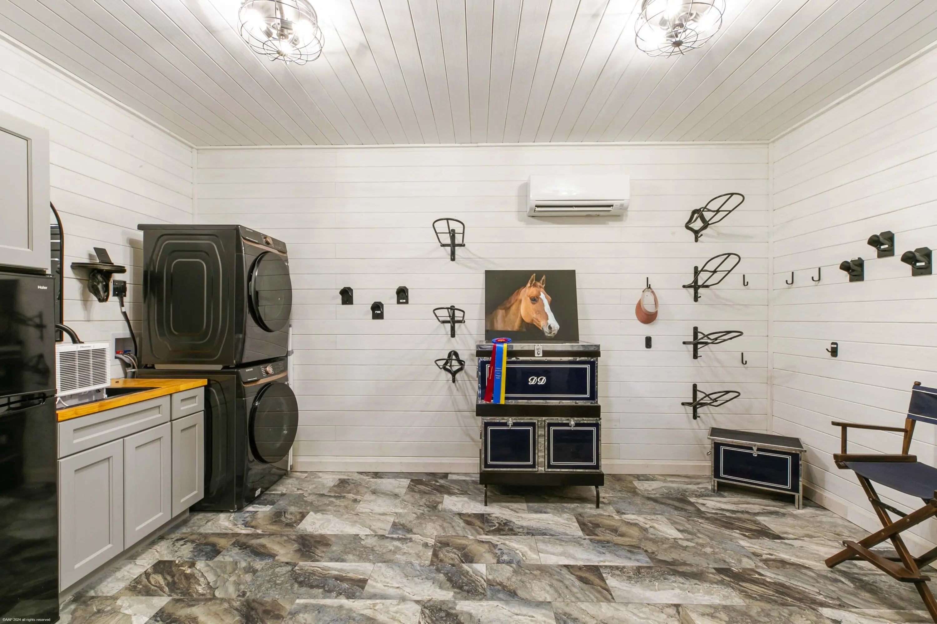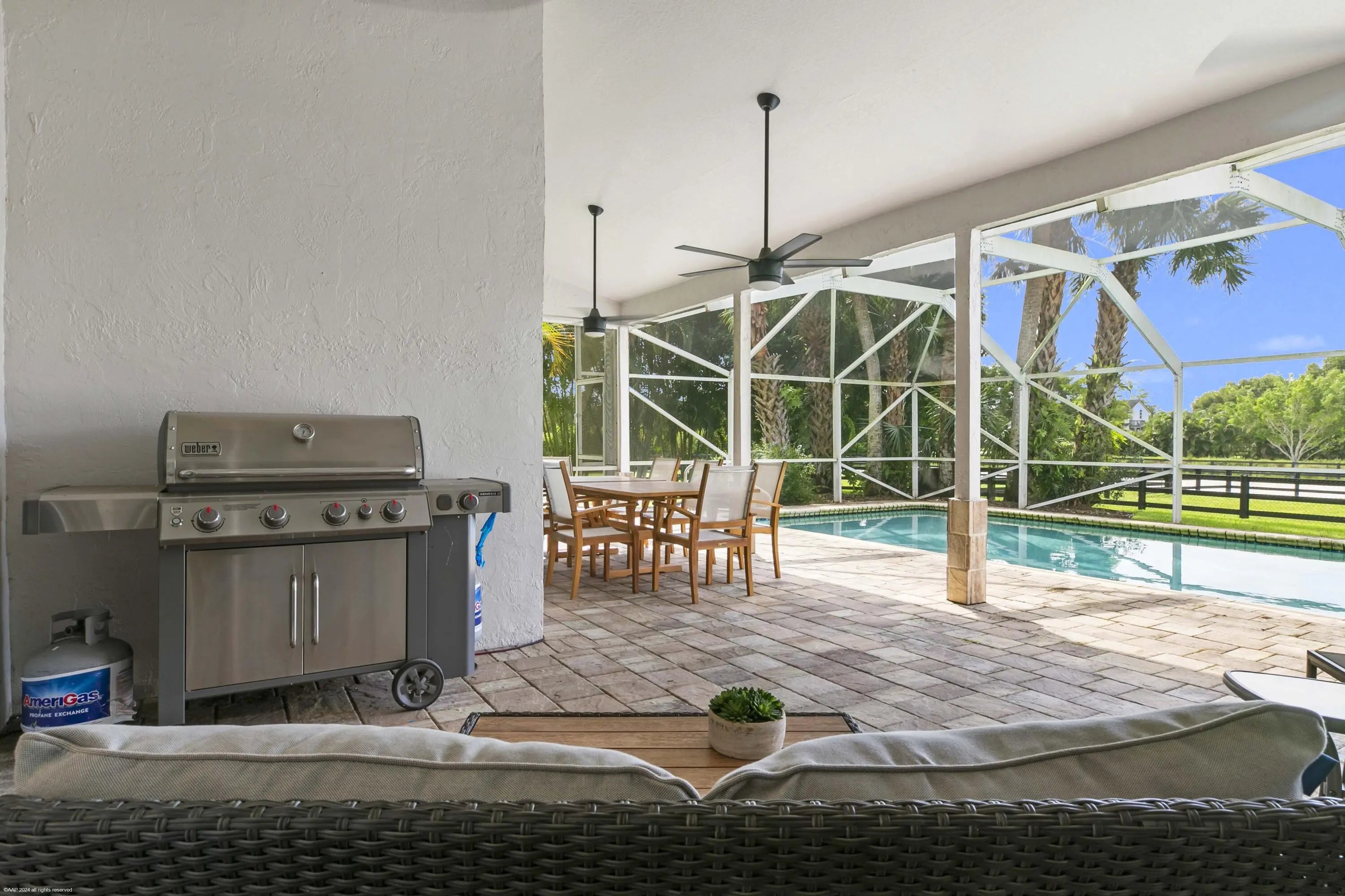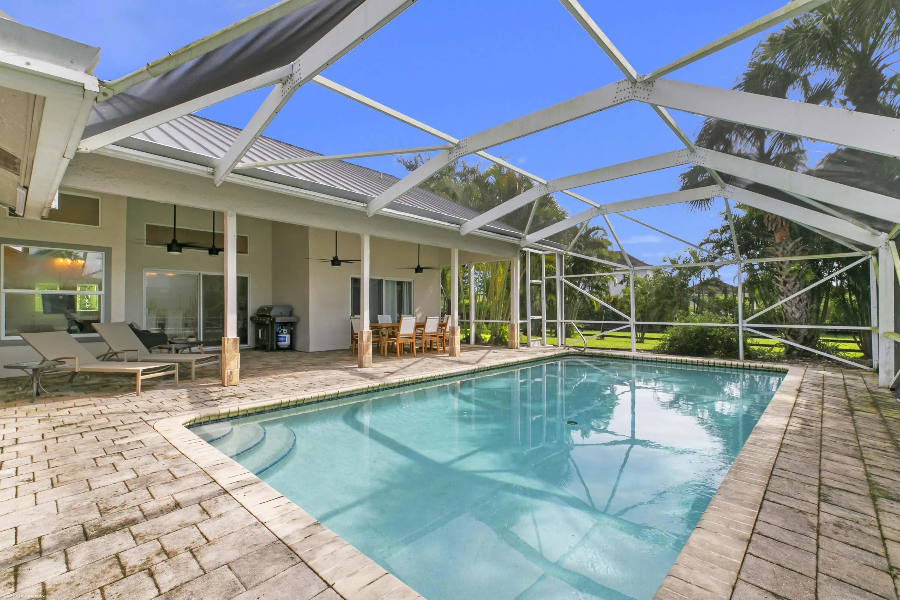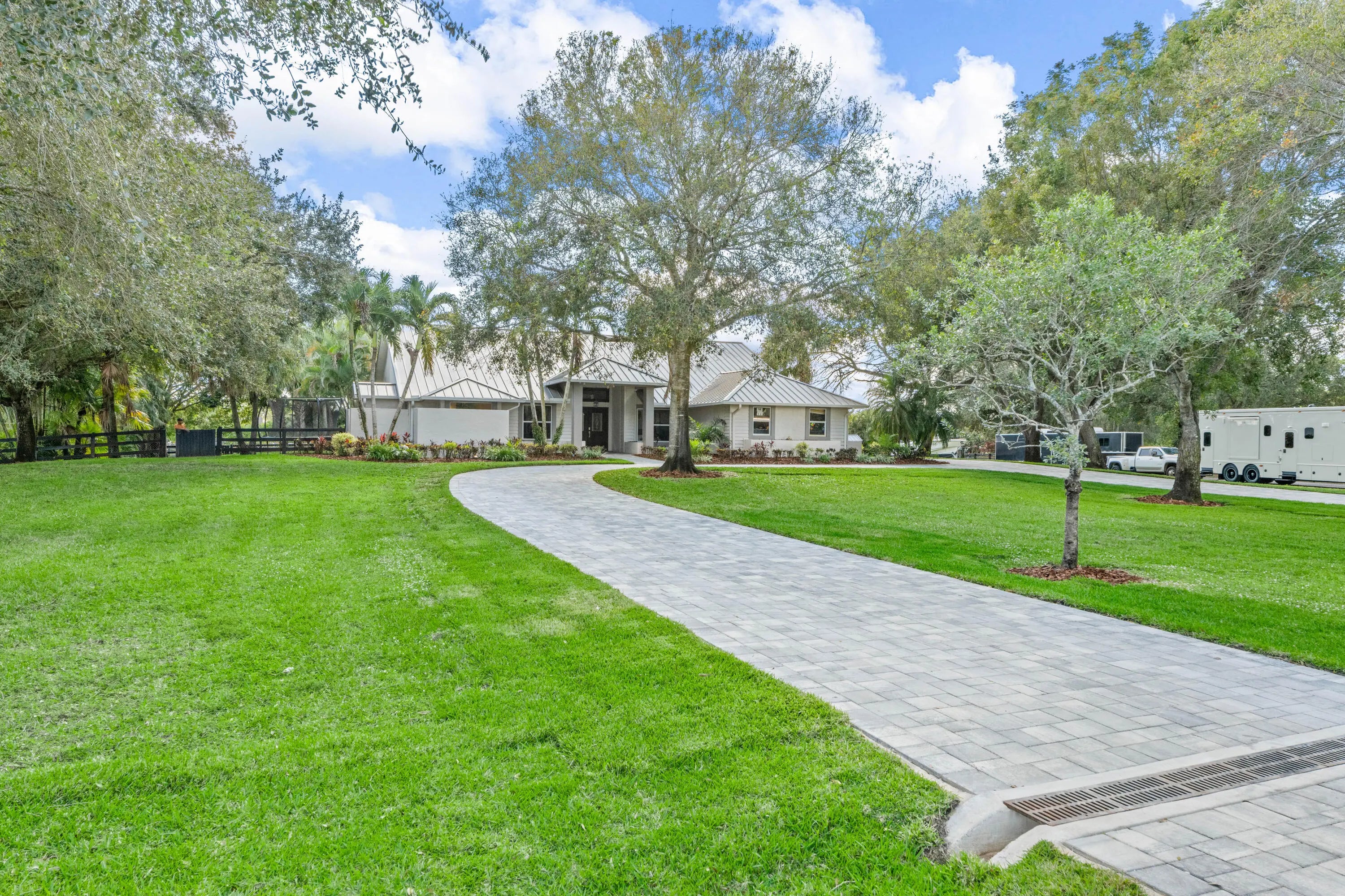 Arguably the best deal farm deal in town! Move-in ready for season! Renovated farm with great turnout on oversized lot adjacent to bridle path! 5 bedroom + office home and CBS 6-stall barn on 2.39 acres in the highly sought after neighborhood of Saddle Trail Park! Boasting a light and bright contemporary design, this stunning property has everything you need to live the Wellington lifestyle. Large fully screened in patio with heated pool and covered outdoor living space. Outfitted with full impact windows throughout, a new roof and a whole home generator for your piece of mind. The barn features a new stall system with durable synthetic wood, tongue and groove ceiling, a chic renovated tack room and beautiful pergola wash racks. The CBS barn has roll down doors and functional shutters. There is a brand new paver diveway and new fire pit. The 90' X 210' arena has fresh fiber footing and the properties' fences including the 5 large paddocks all have new fencing. There are also two storage sheds, feed room, and a private entrance to the barn. If desired, this property is zoned for up to 10 stalls in total. Possibly available fully furnished and turnkey!! Easy hack to Wellington International