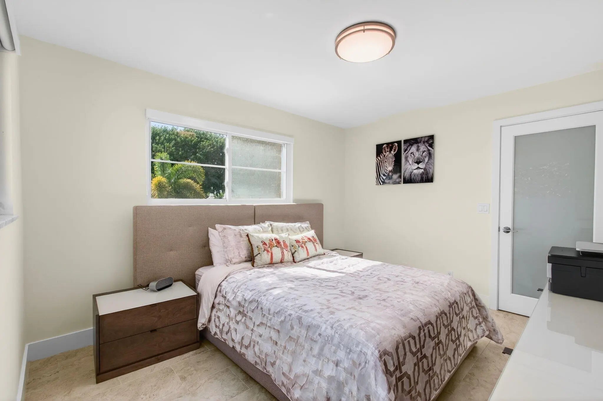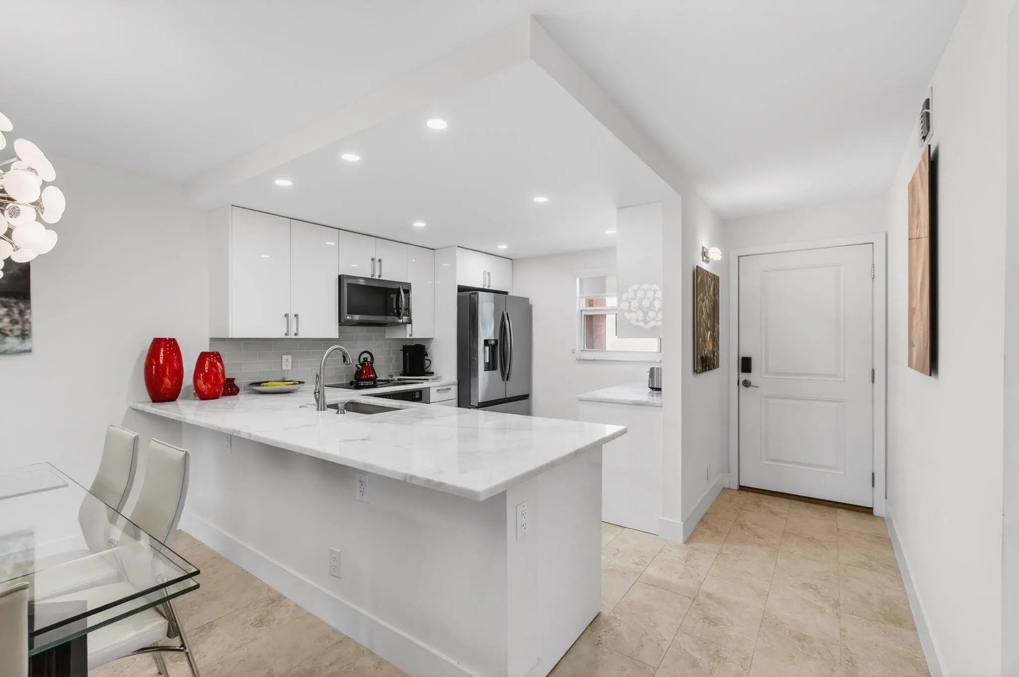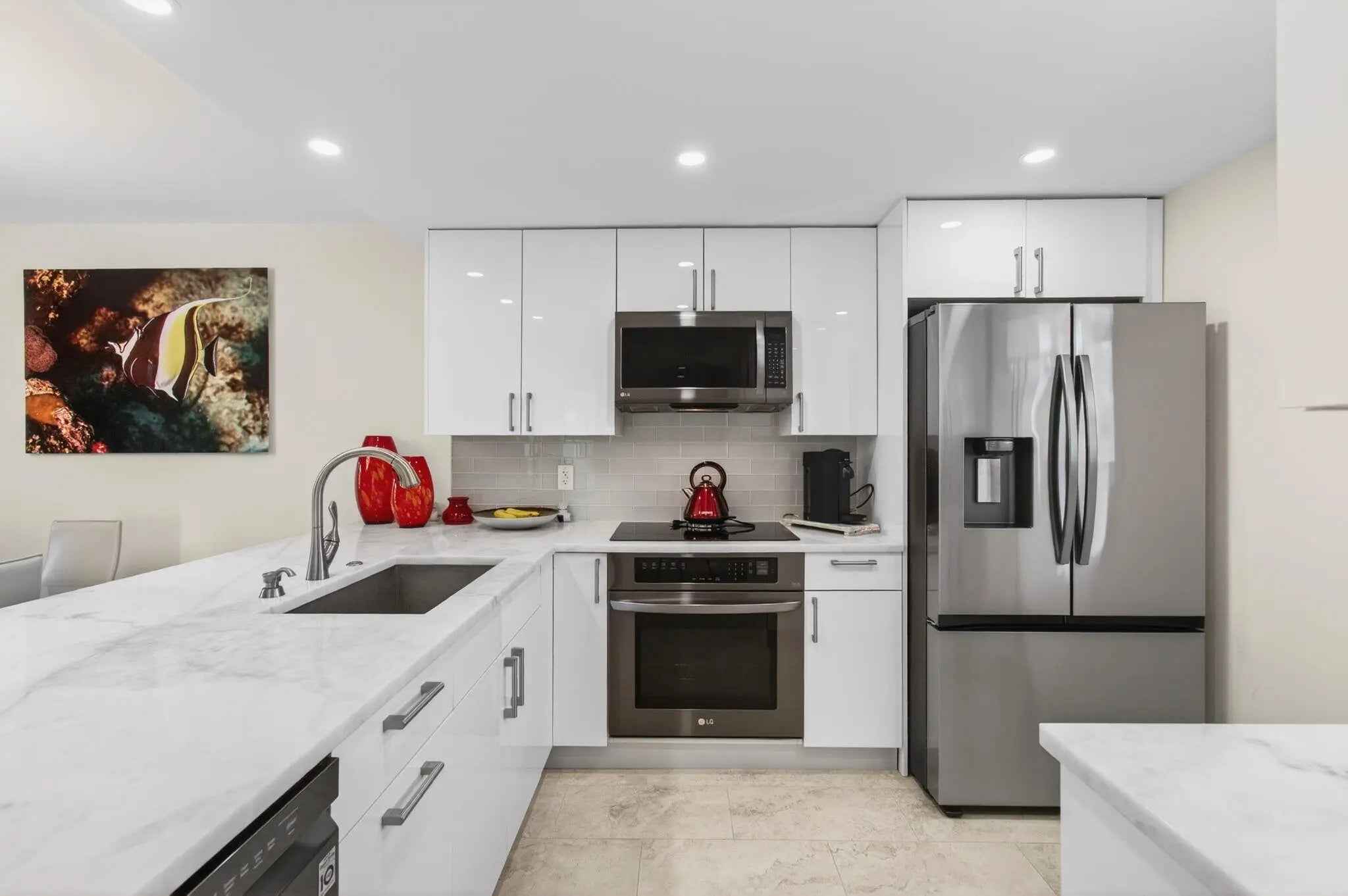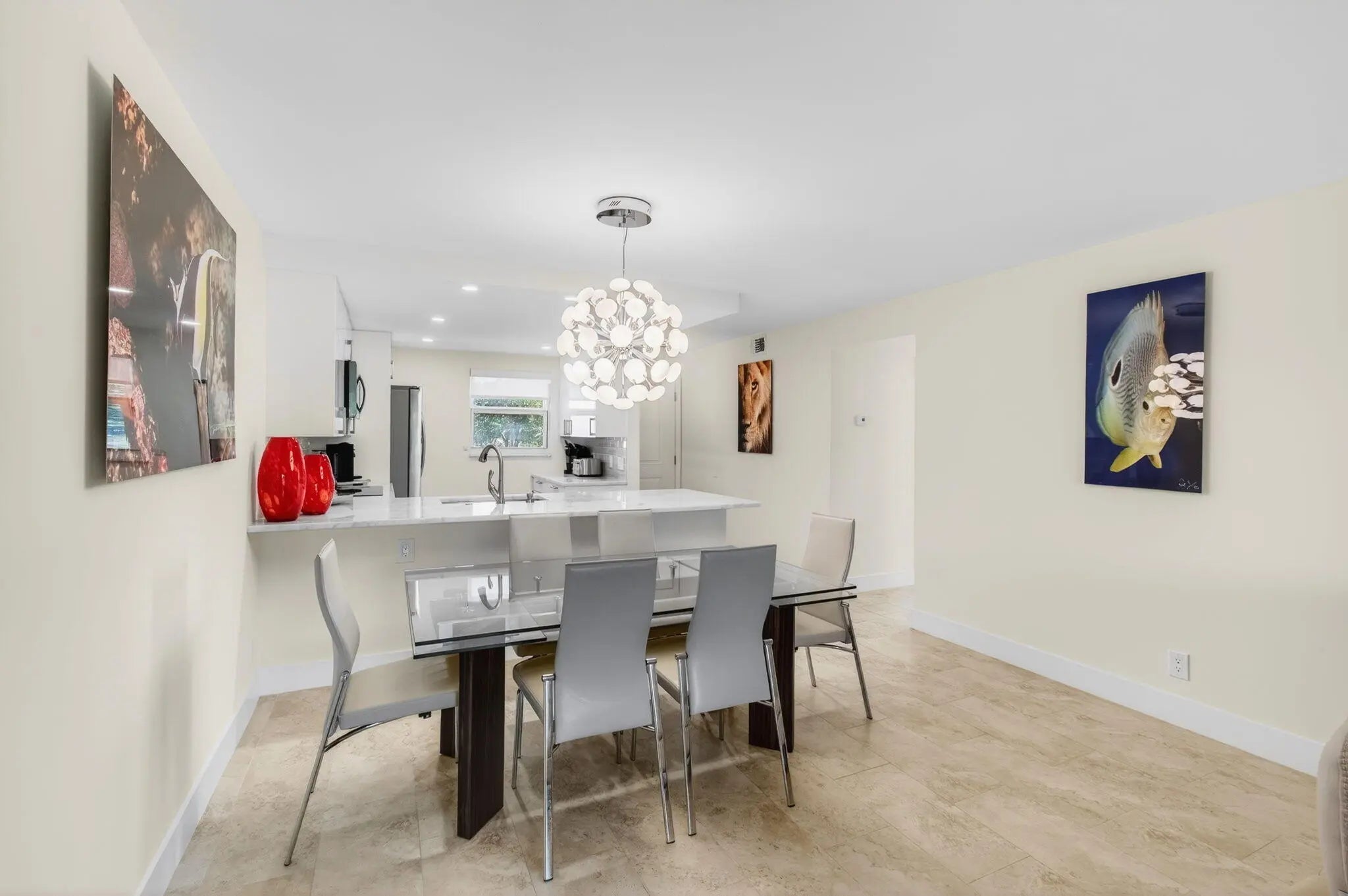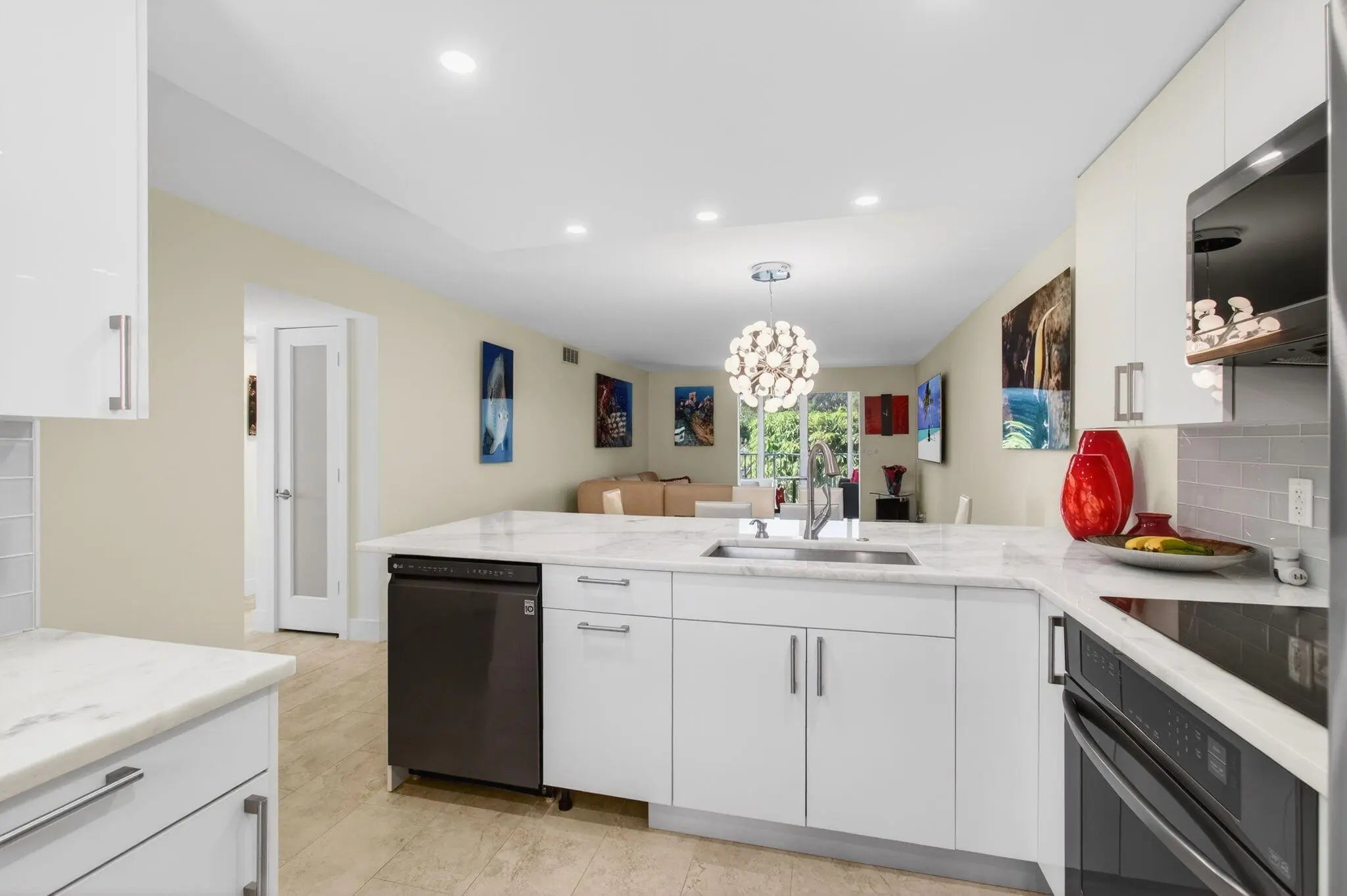 Welcome to this beautifully updated 2-bedroom, 2-bath corner residence in the desirable Village Royale on the Green. This exceptionally bright corner unit has been freshly painted and features full impact windows, light grey tile flooring throughout, and abundant natural light. The open living and dining areas lead to a screened patio with community and pool views, ideally located just steps from the satellite fitness center and pool. Select furnishings may be negotiable. Village Royale on the Green is a well-maintained 55+ community offering two swimming pools, fitness center, tennis courts, shuffleboard, bocce, clubhouse amenities, BBQ areas, and security patrol. Conveniently located in East Boynton Beach, close to shopping, dining, and just 5 minutes to the beach.