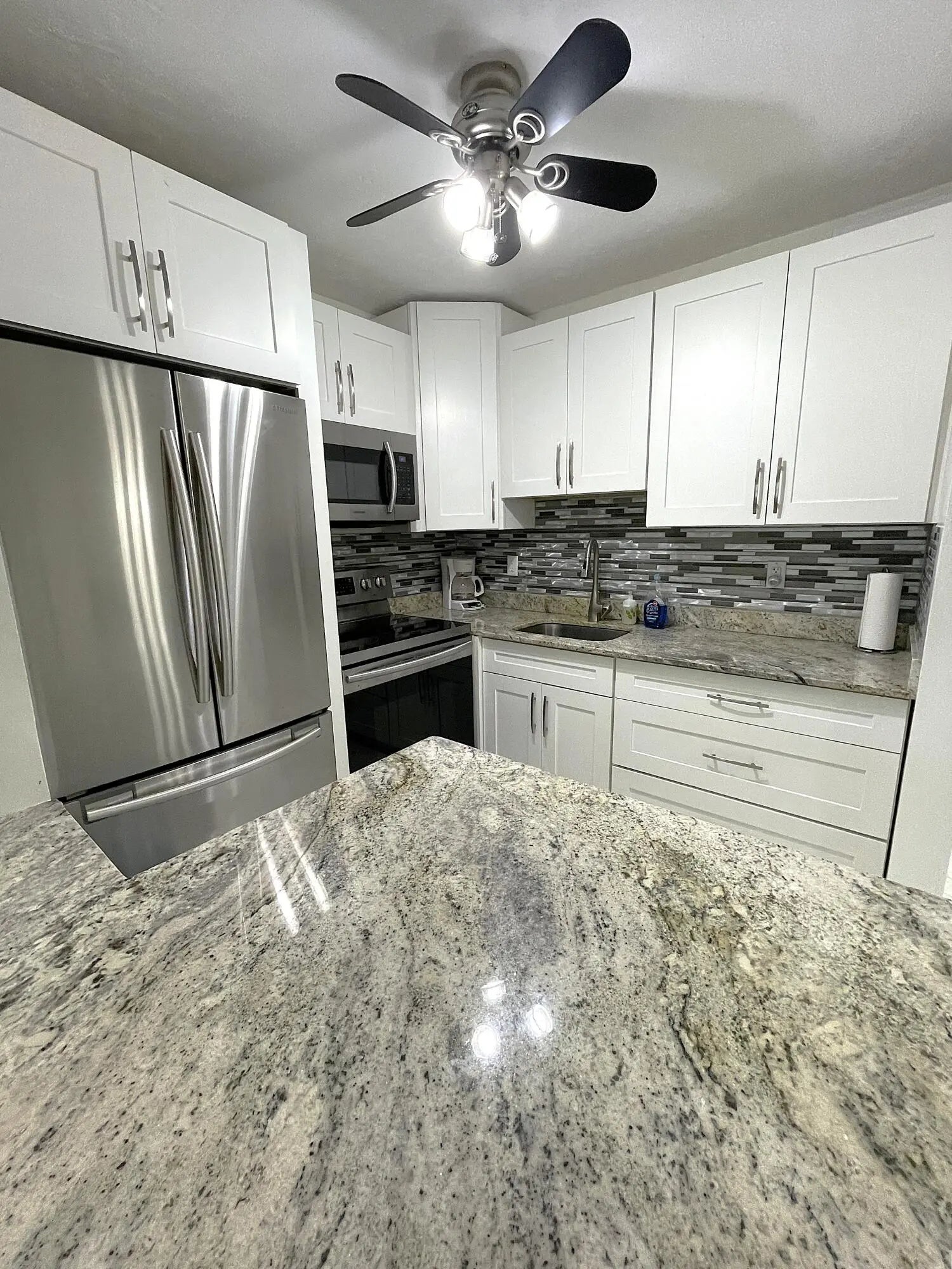 Electric Range, Free-Standing Freezer, Microwave, Refrigerator