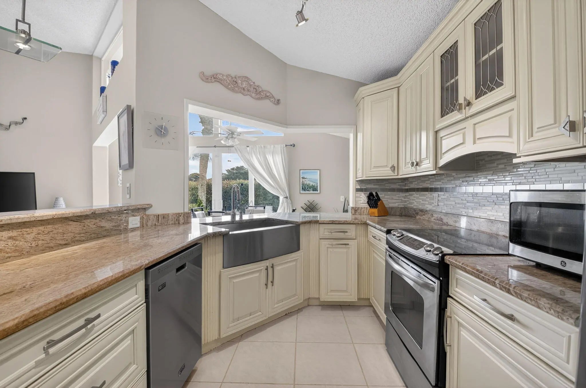 Welcome home to this beautifully renovated 3 bed 2 bath 2 cg home! The renovated kitchen is a standout, featuring beautiful wood panel cabinetry, stainless steel appliances, granite countertops, and a full tile backsplash; all designed to complement the home's fabulous open floor plan ideal for both everyday living and entertaining. Enjoy the elegance of 18'' neutral tile flooring throughout living areas, along with the added security of hurricane impact windows and a brand-new roof (2025). The enclosed Florida room provides additional living space, perfect for relaxing year-round or creating a home office or hobby area. Located in a 55+ community with a super low HOA, this move-in-ready home delivers exceptional value and modern upgrades you'll appreciate for years to come. HOA paints home exterior every 7-8 years and cleans roofs every 2 years.