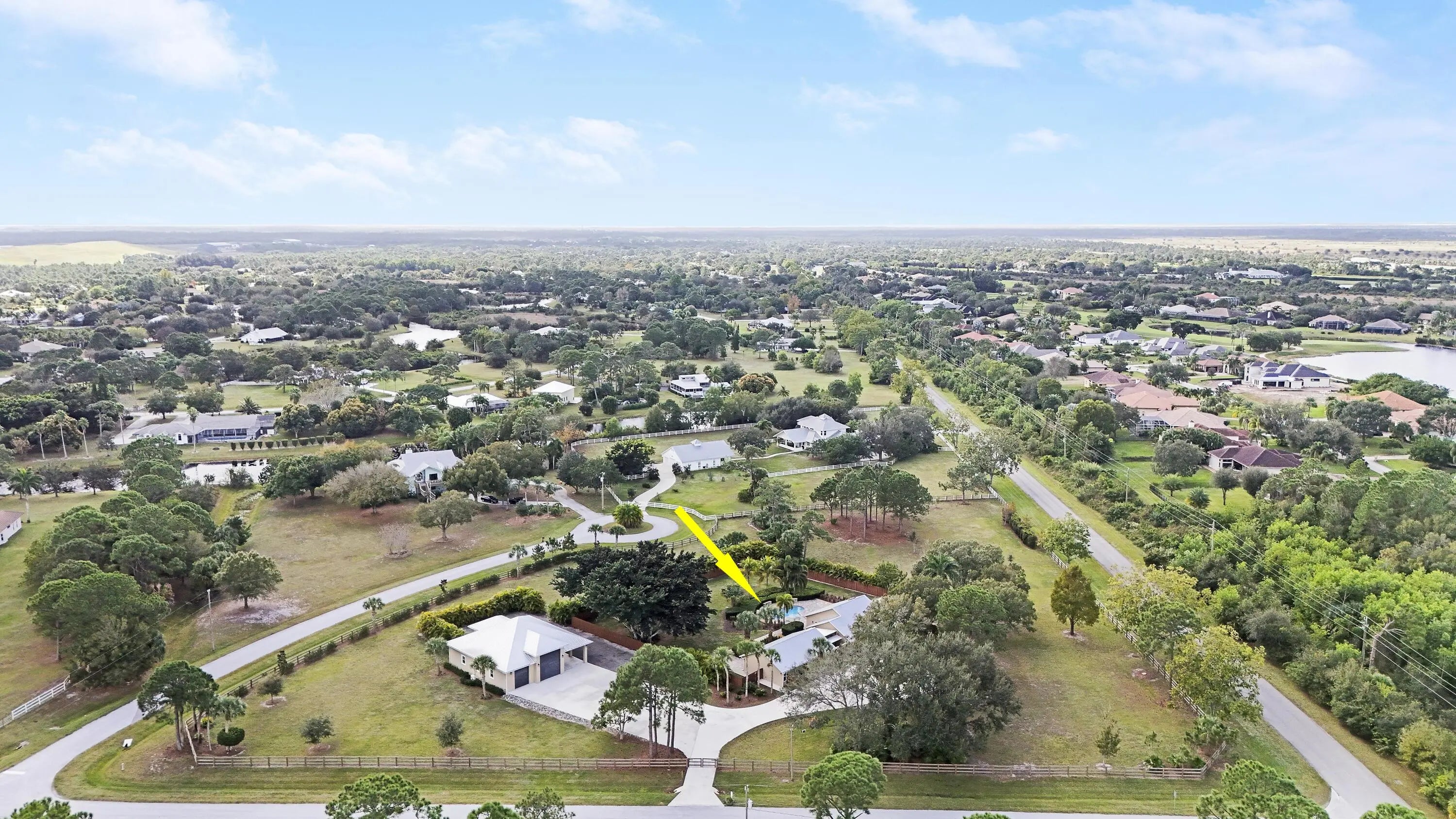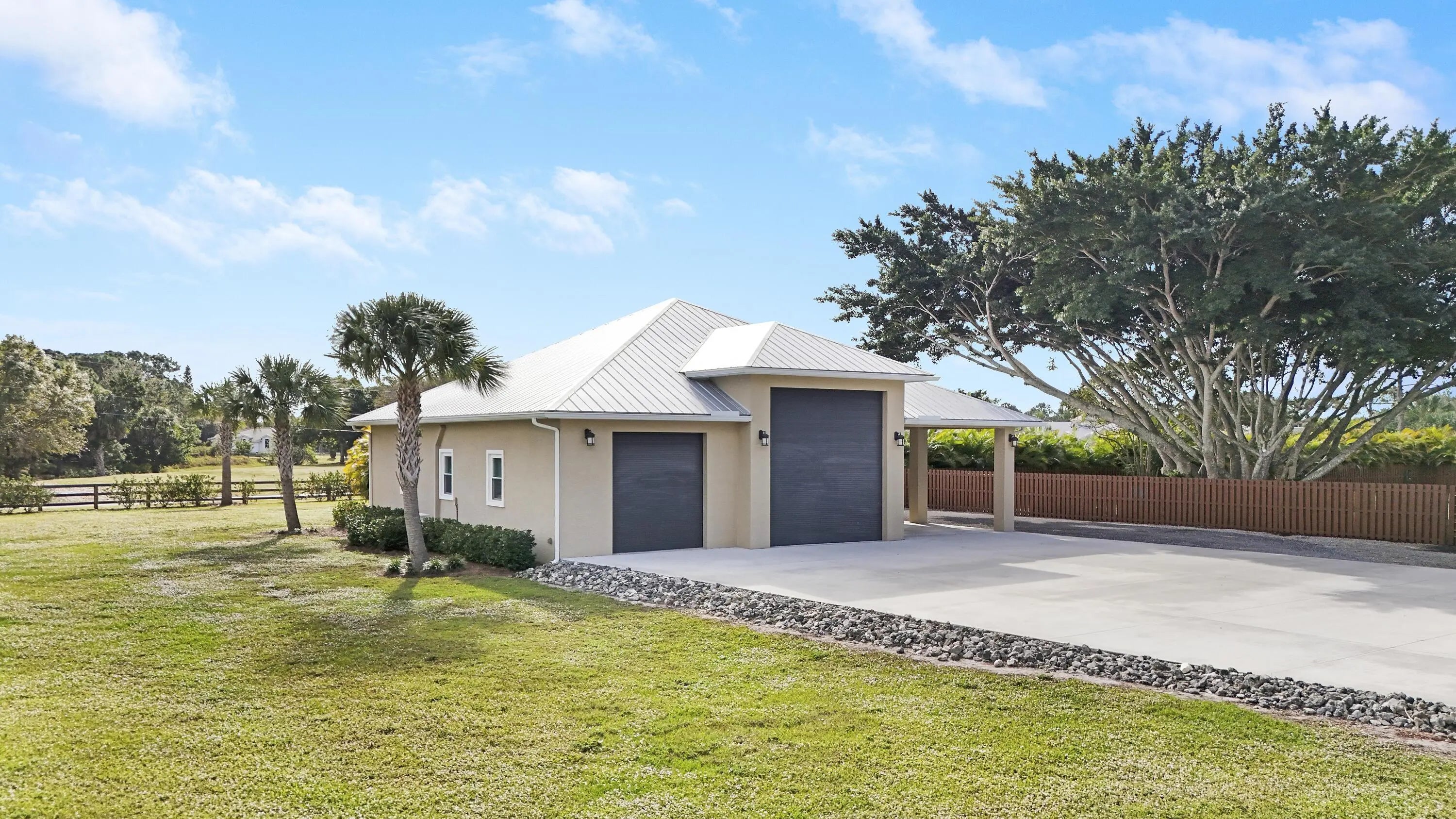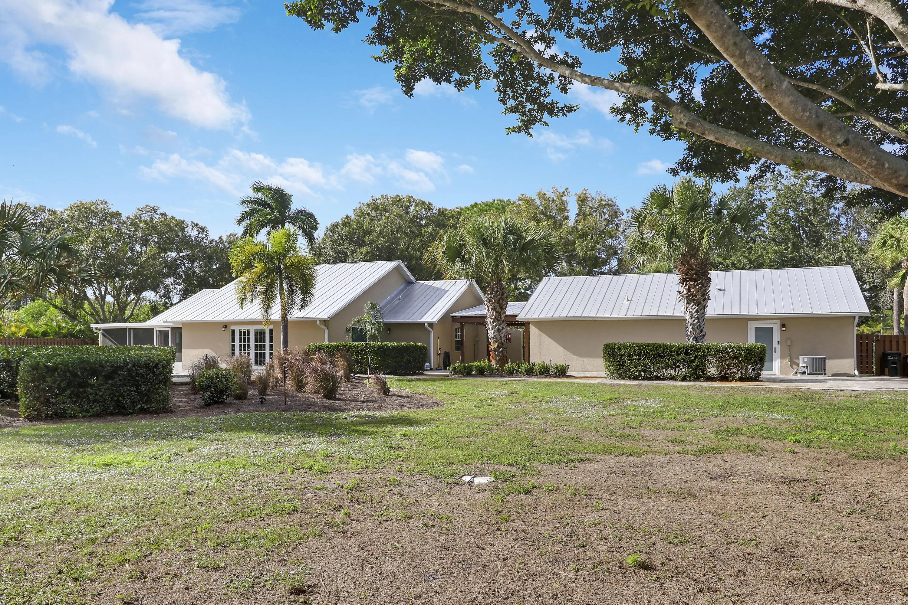 A rare opportunity where privacy, space & luxury come together on 4.9 fully fenced acres! This home is equipped w/impact windows thru-out, a reverse osmosis water system & newer A/C systems, offering comfort, efficiency & peace of mind. Designed for both lifestyle & functionality, this equestrian property features a pool & an impressive 3,700-sf garage, perfect for car enthusiasts, workshops, or additional storage. The main residence showcases travertine floors thru-out & offers 3 BR, 2 baths & a dedicated office for everyday living. The renovated guest house features white marble counters, tile & laminate floors, & its own office/den, making it ideal for extended guests. Private, upgraded & thoughtfully designed, this Stuart West residence offers endless possibilities. Enjoy a private location while still being a short drive to shopping, dining, I-95, and more!