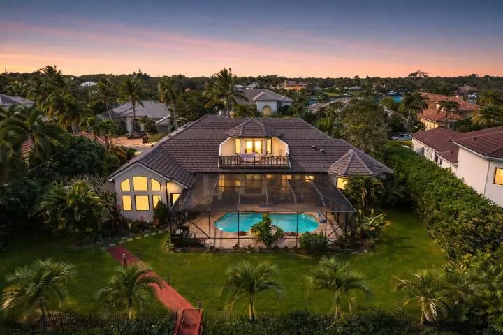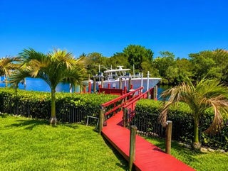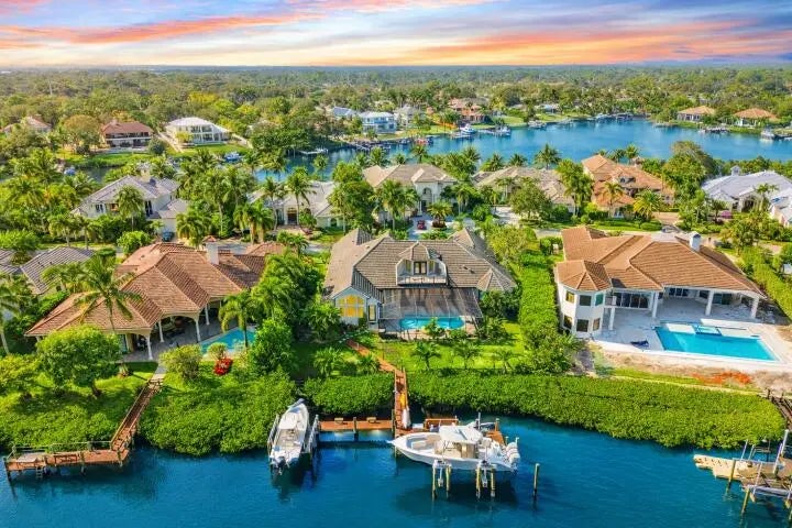 No Fixed Bridges, Ocean Access. The waterfront lifestyle in the prestigious Islands of Jupiter gated community. This 4,648 SF open split floor plan with 4 bedrooms and 5 en-suite baths, a bonus room, and two oversized 2-car garages. The main level features the primary suite and two guest rooms, plus an upstairs VIP suite with a sitting area, wet bar, and private balcony with river views. Enjoy 100' of waterfront, direct ocean access in ~10 minutes with no fixed bridges, and a private dock for 2-3 boats. Outdoor living includes a pool, spa, cabana bath, outdoor kitchen, and screened patio. Recent upgrades include a new roof, kitchen, paint, porcelain-paver driveway, and impact windows/doors. Secluded yard, full-house generator, and whole-home water system complete this move-in-ready retreat