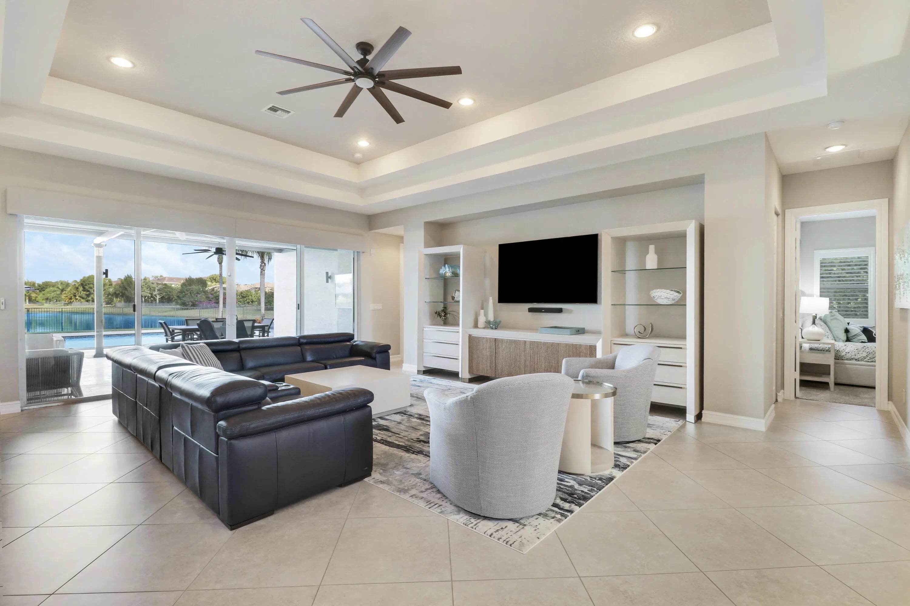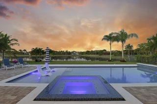 The Epitome of ''Luxury South Florida Living'' From the moment you step thru the front door your eye is drawn to the expansive extended Lanai offering over 400' of refined living space designed for entertaining. Featuring a summer kitchen w/ pizza oven, NEW resort-style heated pool, champagne spa, sun shelf creating a true private oasis. Perfectly positioned on 1/2 ac lakefront lot for the ultimate indoor outdoor lifestyle. Home blt in 2016 has a grand foyer vaulted high ceilings with open concept living space to kitchen, living and dining rooms. Primary front to back bedroom generous his her closets and spacious master bath. The other two large bedrooms are en-suite and there is a large 20x20 flex room for extra living space. 3 car garage and many improvements (list to be provided)