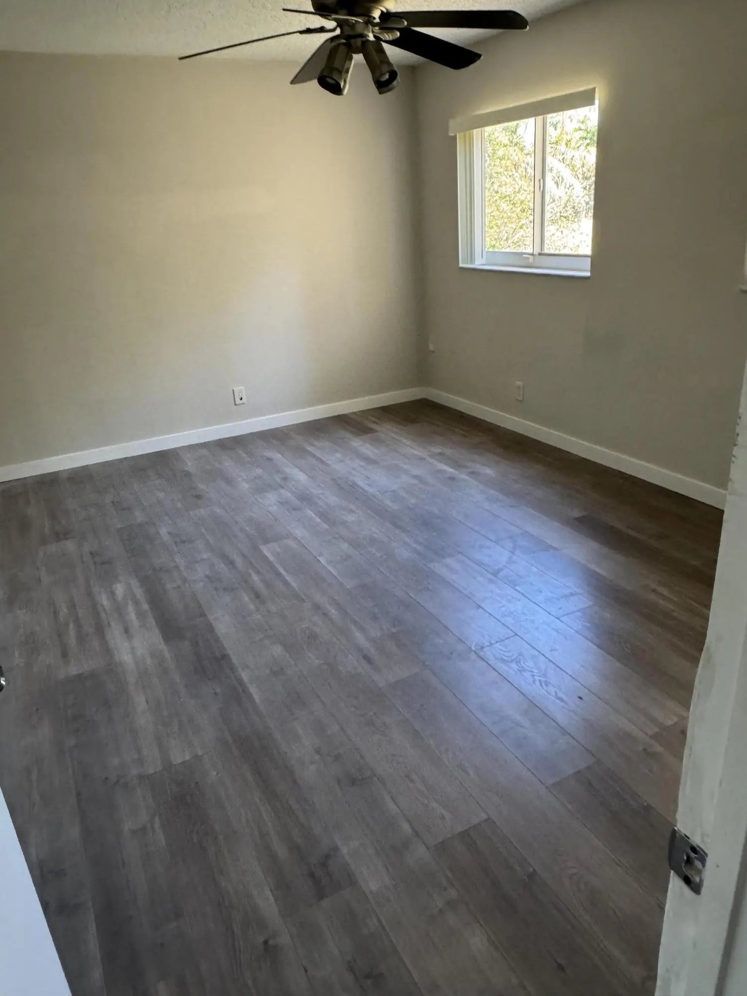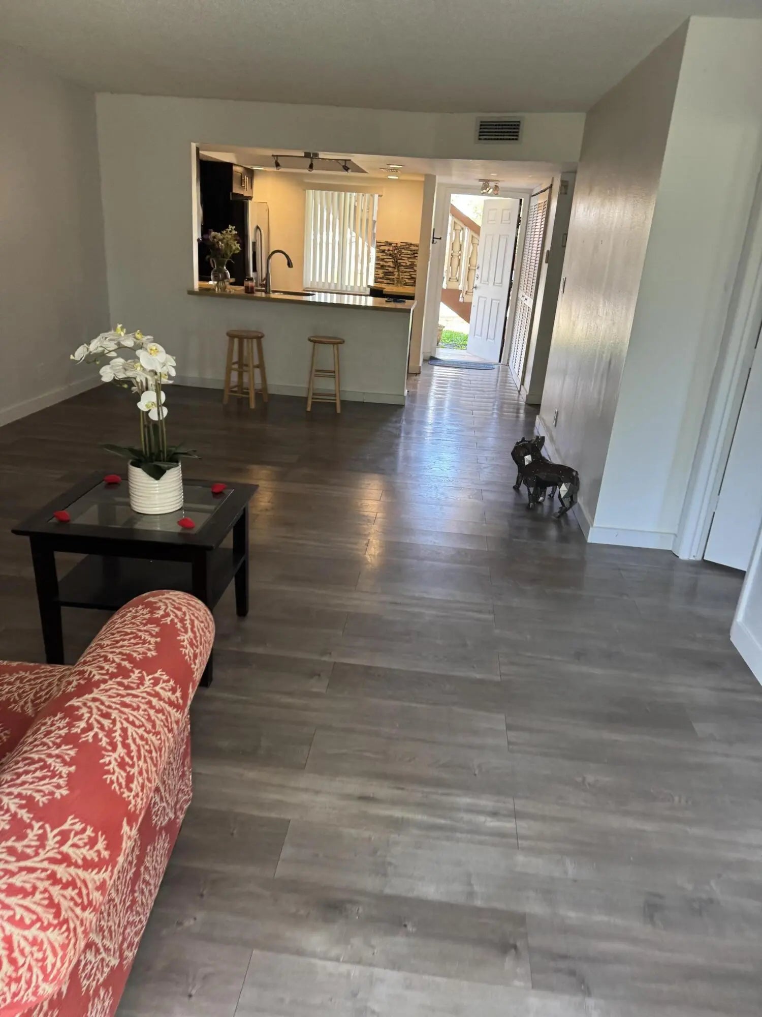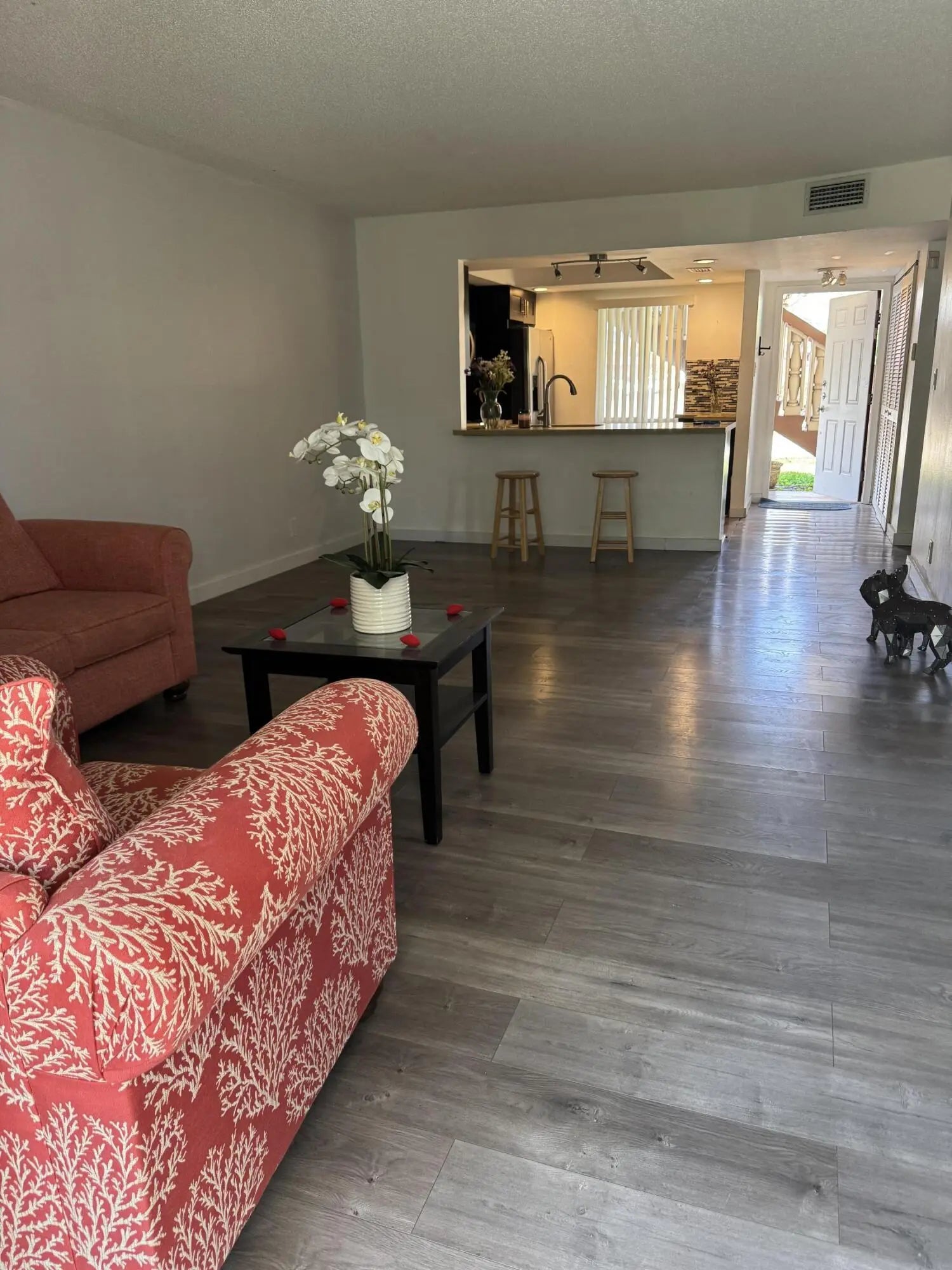 Beautiful 2BR/2BA first-floor condo in West Boca Raton - all ages welcome! This well-maintained unit features an upgraded kitchen with quartz countertops and stainless steel appliances. The spacious primary bedroom offers a walk-in closet and over $20,000 in upgraded impact windows. Enjoy a renovated patio enclosed with hurricane-proof glass and serene water views. Ideally located in an A-rated school district, with school bus stops conveniently by the building. Close to major highways, shopping centers, universities, and hospitals, and approximately 7 miles from the beach. The community offers a clubhouse, pool, and tennis courts. Assigned parking is right by your door. HOA requires only a background check (and can be completed with a valid passport). NO credit score needed.