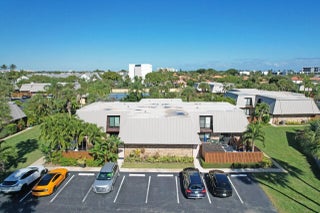 Patio furniture does not convey. Welcome to the ''beach lifestyle'' in the heart of Jupiter Beach. Safe, peaceful and quiet living blocks away from world famous Jupiter beach. Unit is approximately 1700 sq ft located adjacent to the pool and tennis/pickleball courts. Unit is being sold furnished with turn-key amenities and major recent structural upgrades to include a new metal mansard and roof (2023) both under warranty, Wright impact sliding doors (2023) under warranty and new balconies and trim (2022). The patio was recently painted and features an upgraded larger shed with full lights and power. The patio also has an outdoor shower. The interior was recently professionally cleaned and painted (2026) and is currently un-occupied for easy viewing. The unit is furnished with many new items to include a brand a new king master bed/mattress and a new dining room table. The kitchen has new GE stainless fridge, stove and microwave with custom birch cabinetry with granite counters. The unit also has custom wood stair rails, new area rugs, custom closets and upgraded fans. The unit is a bright "beach and surf inspired" theme with a professional 9' wall mounted surfboard and various custom art pieces found throughout the unit. Note: the art is a private collection and is not included in the sale price. More importantly, the unit was rebuilt in 2004/5 under post-Hurricane Andrew building codes. The unit features private parking steps from the keyless entry doors and is adjacent to the community heated pool and tennis/pickleball courts. Jupiter Beach is the most desired beach neighborhood in all of Florida and is surrounded by some of Palm Beaches finest restaurants, entertainment, parks and beaches.