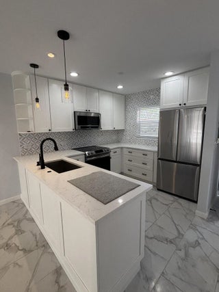 Buyer got denied! dont miss this opportunity for a turn key home LOW HOA! This unit is absolutely stunning. This single story beautifully renovated 1-bedroom, 1.5-bath villa has been thoughtfully updated from floor to ceiling. Enjoy porcelain flooring throughout and an open-concept kitchen enrobed in quartz countertops, white shaker cabinetry, and stainless steel appliances. Both bathrooms have been tastefully remodeled Principal room has a large walk in closet with ample space for all of your belongings. Relax in the serene Florida room, now fully enclosed with brand-new windows--an upgrade from the traditional screened enclosure--complete with a ceiling fan and A/C vent for year-round comfort. Enjoy the comforts of parking right in front of your unit, washers and dryers in the communit