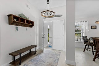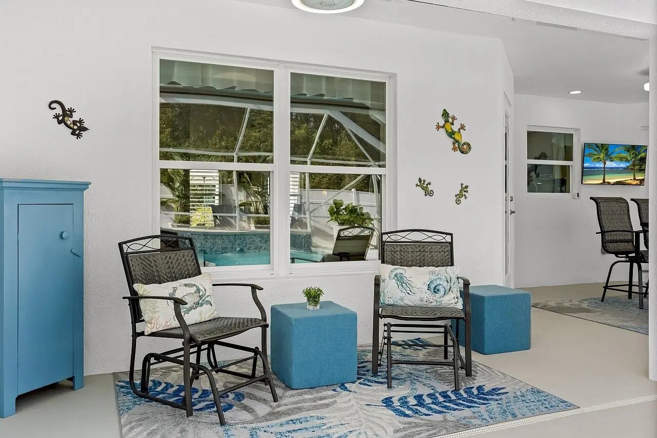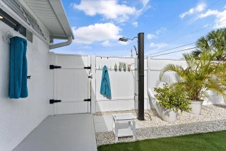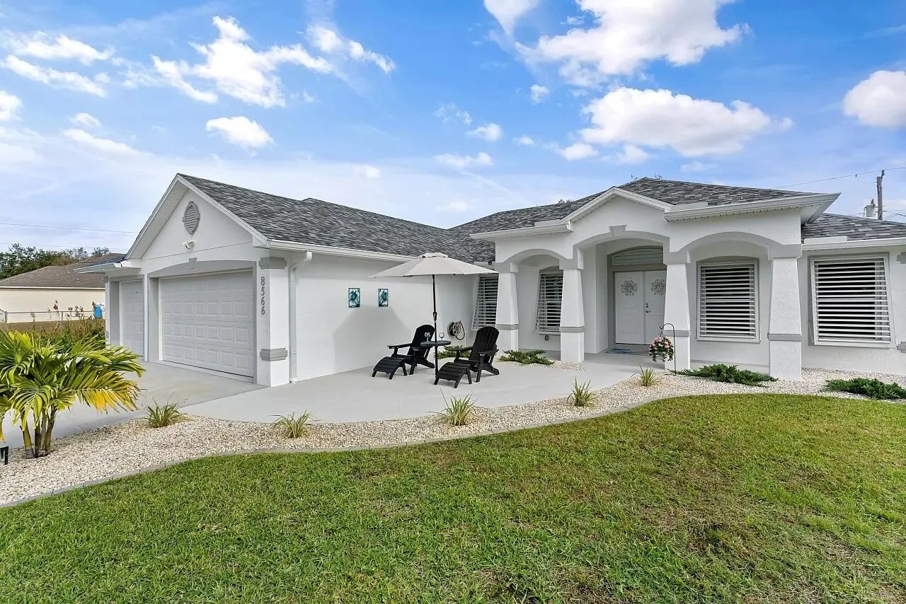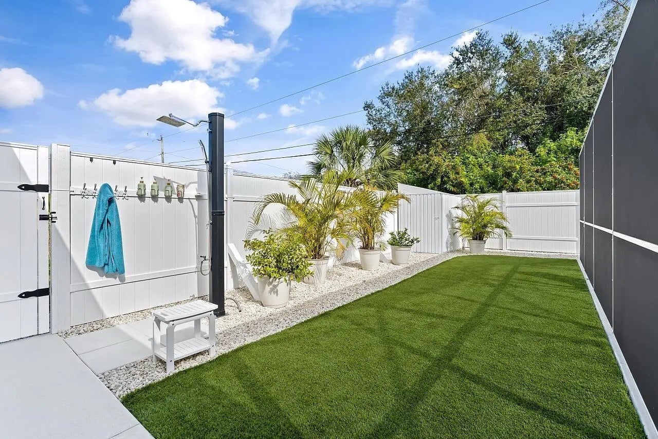 Prepare to be dazzled by this exceptional 2023 custom Craftsman/Contemporary home by Ameron Homes building locally trusted homes since 1981. Designed for those who want to relax, recharge, and truly enjoy Florida living. Set on a generous .28-acre corner lot in a NO HOA environment, this home offers the freedom, space, and privacy you are searching for. Step into your own resort-style, care-free retreat. Lounge poolside under ceiling fans, enjoy the cool deck, and rinse off in your private outdoor shower—all within a fully fenced backyard oasis. The custom 14x26 ''Crystal Pools'' a locally highly rated pool company designed this saltwater therapy pool featuring massage seats, interchangeable jets, sheer waterfall accents, multicolor LED lighting, solar heat, and auto-fill/drain. A 900 sq-ft upgraded "no-see um" entire screened cage w/ a hip-roof enclosure creates a shaded breezy space perfect for unwinding year-round. Luxury synthetic turf, professional landscaping, and thoughtful drainage complete this lock-and-leave outdoor lifestyle. Inside, the home reflects true custom quality and meticulous care with cathedral ceilings throughout, rounded drywall corners, graceful archways, and durable 18x18 Dal Cove Creek Grey ceramic tile in the main living areas. A 62-inch Xerxes ceiling fan with remote anchors the living room, enhancing both comfort and scale. German laminate flooring with underlayment adds warmth and quiet comfort to the bedrooms. The split-bedroom floor plan offers privacy with generously sized bedrooms, ideal for family, guests, or flexible use. The open kitchen features 36" cabinetry with crown molding and slow-close hinges, granite countertops with beveled edges, a two-tone island with breakfast seating, recessed lighting with dimmers, vented hood, and a walk-in pantry perfect for entertaining or easy evenings at home. The primary suite is a calming retreat with cathedral ceilings, a spacious walk-in closet, and a spa-inspired bath featuring a fully tiled walk-in shower with seat, rain head, and dual shower heads. All bathrooms include backlit LED anti-fog mirrors, blending modern luxury with everyday convenience. The finished 3-car garage is so clean and climate-controlled you could sleep in it! Impressive 600 sq ft featuring epoxy flooring, recessed lighting, built-in storage, utility sink, attic access, and a dedicated mini-split A/C system ideal for car enthusiasts, workshops, or pristine storage. Plenty of room for boat, toys, and RV on your property. Additional exterior upgrades include custom Bahama shutters on all exterior windows and a rear porch with hidden custom power roll-up shutters, offering both style and storm ready peace of mind. Two storage sheds! An 8x12 insulated shed with electric and a 4x7 garden shed add functional flexibility. Located close to all Sebastian has to offer and just minutes to Vero Beach, this property combines space, freedom, and convenience. Furniture available but sold separately, independent of home price. Built with CBS construction, Low-E Energy Star windows, R-30 insulation, and whole-house surge protection, this thoughtfully upgraded custom home offers confidence, comfort, and effortless living. Must see to believe!