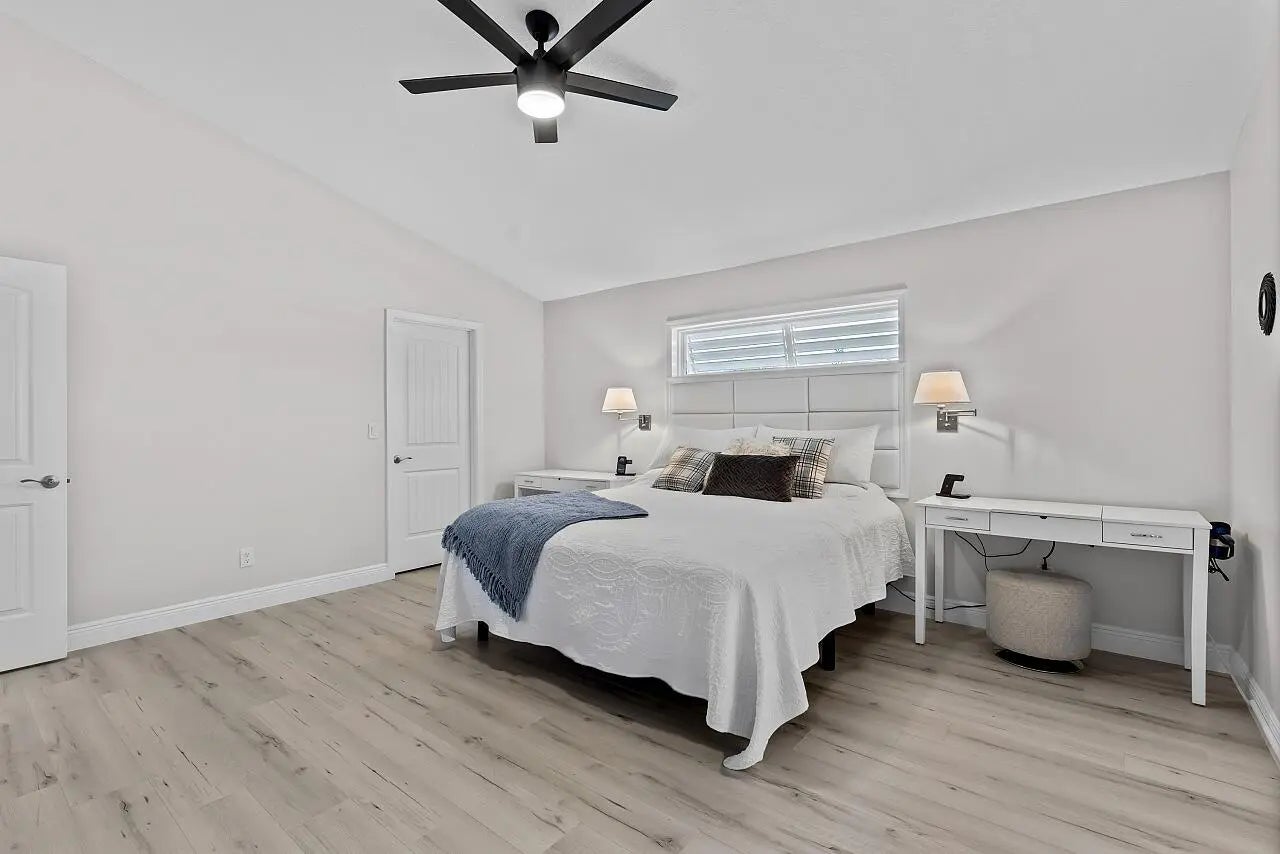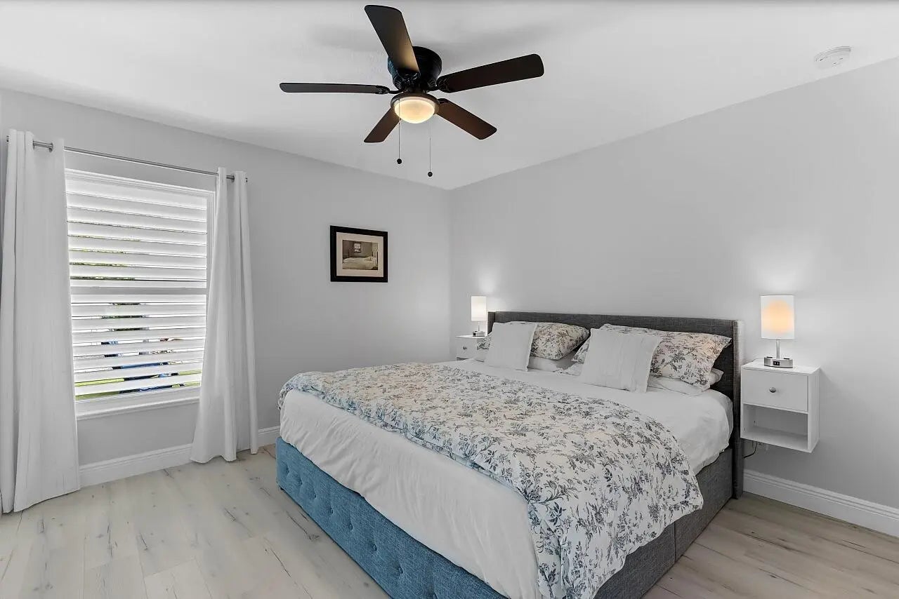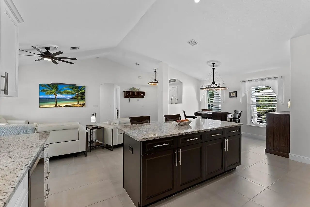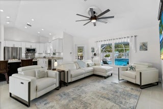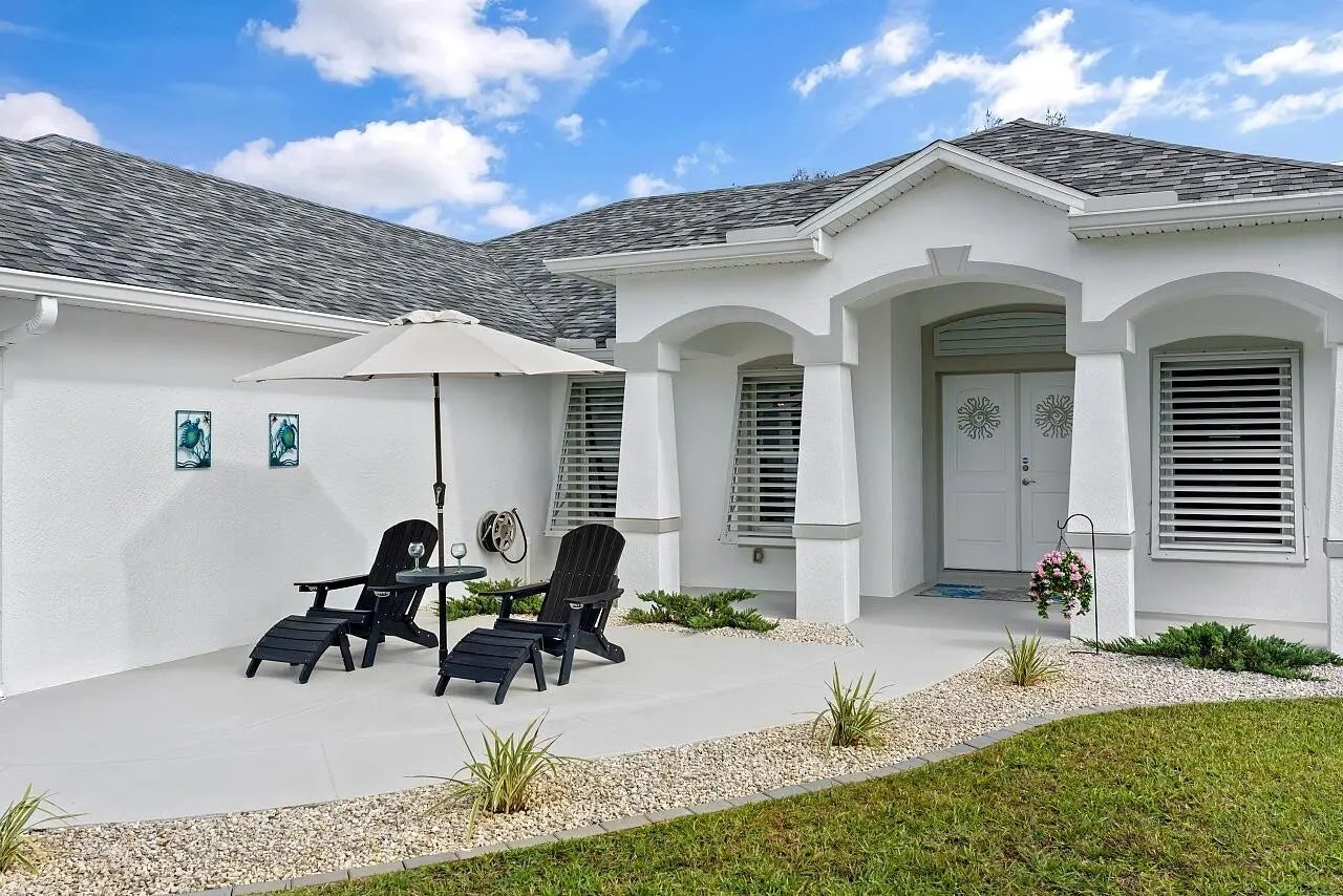 Prepare to be dazzled by this exceptional 2023 custom Craftsman/Contemporary home by Ameron Homes building locally trusted homes since 1981. Designed for those who want to relax, recharge, and truly enjoy Florida living. Set on a generous .28-acre corner lot in a NO HOA environment, this home offers the freedom, space, and privacy you are searching for. Step into your own resort-style, care-free retreat. Lounge poolside under ceiling fans, enjoy the cool deck, and rinse off in your private outdoor shower—all within a fully fenced backyard oasis. The custom 14x26 ''Crystal Pools'' a locally highly rated pool company designed this saltwater therapy pool featuring massage seats, interchangeable jets, sheer waterfall accents, multicolor LED lighting, solar heat, and auto-fill/drain. A 900 sq-ft upgraded "no-see um" entire screened cage w/ a hip-roof enclosure creates a shaded breezy space perfect for unwinding year-round. Luxury synthetic turf, professional landscaping, and thoughtful drainage complete this lock-and-leave outdoor lifestyle. Inside, the home reflects true custom quality and meticulous care with cathedral ceilings throughout, rounded drywall corners, graceful archways, and durable 18x18 Dal Cove Creek Grey ceramic tile in the main living areas. A 62-inch Xerxes ceiling fan with remote anchors the living room, enhancing both comfort and scale. German laminate flooring with underlayment adds warmth and quiet comfort to the bedrooms. The split-bedroom floor plan offers privacy with generously sized bedrooms, ideal for family, guests, or flexible use. The open kitchen features 36" cabinetry with crown molding and slow-close hinges, granite countertops with beveled edges, a two-tone island with breakfast seating, recessed lighting with dimmers, vented hood, and a walk-in pantry perfect for entertaining or easy evenings at home. The primary suite is a calming retreat with cathedral ceilings, a spacious walk-in closet, and a spa-inspired bath featuring a fully tiled walk-in shower with seat, rain head, and dual shower heads. All bathrooms include backlit LED anti-fog mirrors, blending modern luxury with everyday convenience. The finished 3-car garage is so clean and climate-controlled you could sleep in it! Impressive 600 sq ft featuring epoxy flooring, recessed lighting, built-in storage, utility sink, attic access, and a dedicated mini-split A/C system ideal for car enthusiasts, workshops, or pristine storage. Plenty of room for boat, toys, and RV on your property. Additional exterior upgrades include custom Bahama shutters on all exterior windows and a rear porch with hidden custom power roll-up shutters, offering both style and storm ready peace of mind. Two storage sheds! An 8x12 insulated shed with electric and a 4x7 garden shed add functional flexibility. Located close to all Sebastian has to offer and just minutes to Vero Beach, this property combines space, freedom, and convenience. Furniture available but sold separately, independent of home price. Built with CBS construction, Low-E Energy Star windows, R-30 insulation, and whole-house surge protection, this thoughtfully upgraded custom home offers confidence, comfort, and effortless living. Must see to believe!