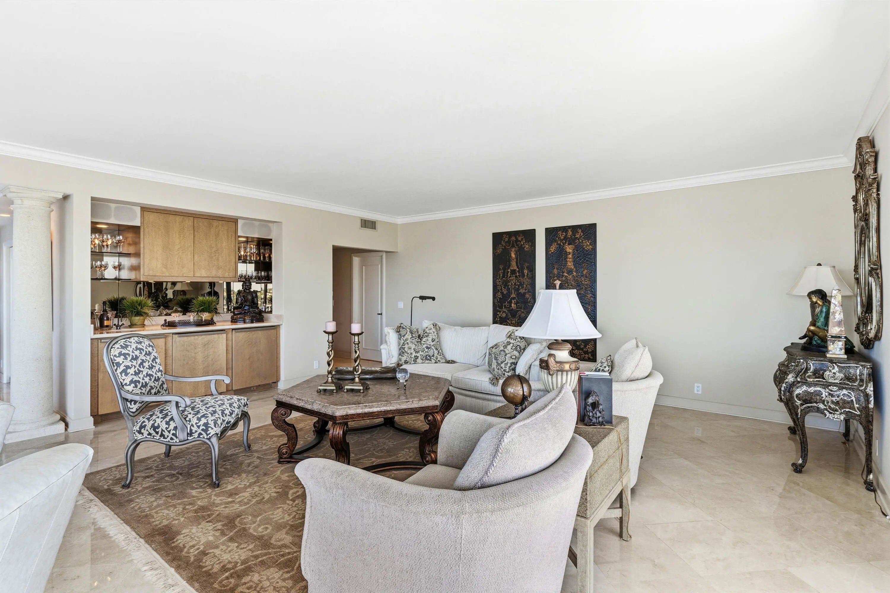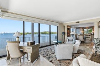 Unobstructed Intracoastal views to the west and north from a wraparound terrace define this spacious, fully renovated residence, finished with the finest materials in elegant neutral tones. Floor-to-ceiling impact sliders open to the expansive terrace—ideal for sunset views and watching boats glide by. A chef's kitchen, custom cabinetry throughout, high ceilings, and generous closet space enhance both comfort and style. Tower Vallandry is an intimate luxury building with just 22 residences, offering a doorman and covered parking. Located on Ibis Isle, residents enjoy two pools and proximity to Phipps Ocean Park, the Palm Beach Tennis Center, Par 3 Golf, and world-class dining, shopping, and cultural centers.