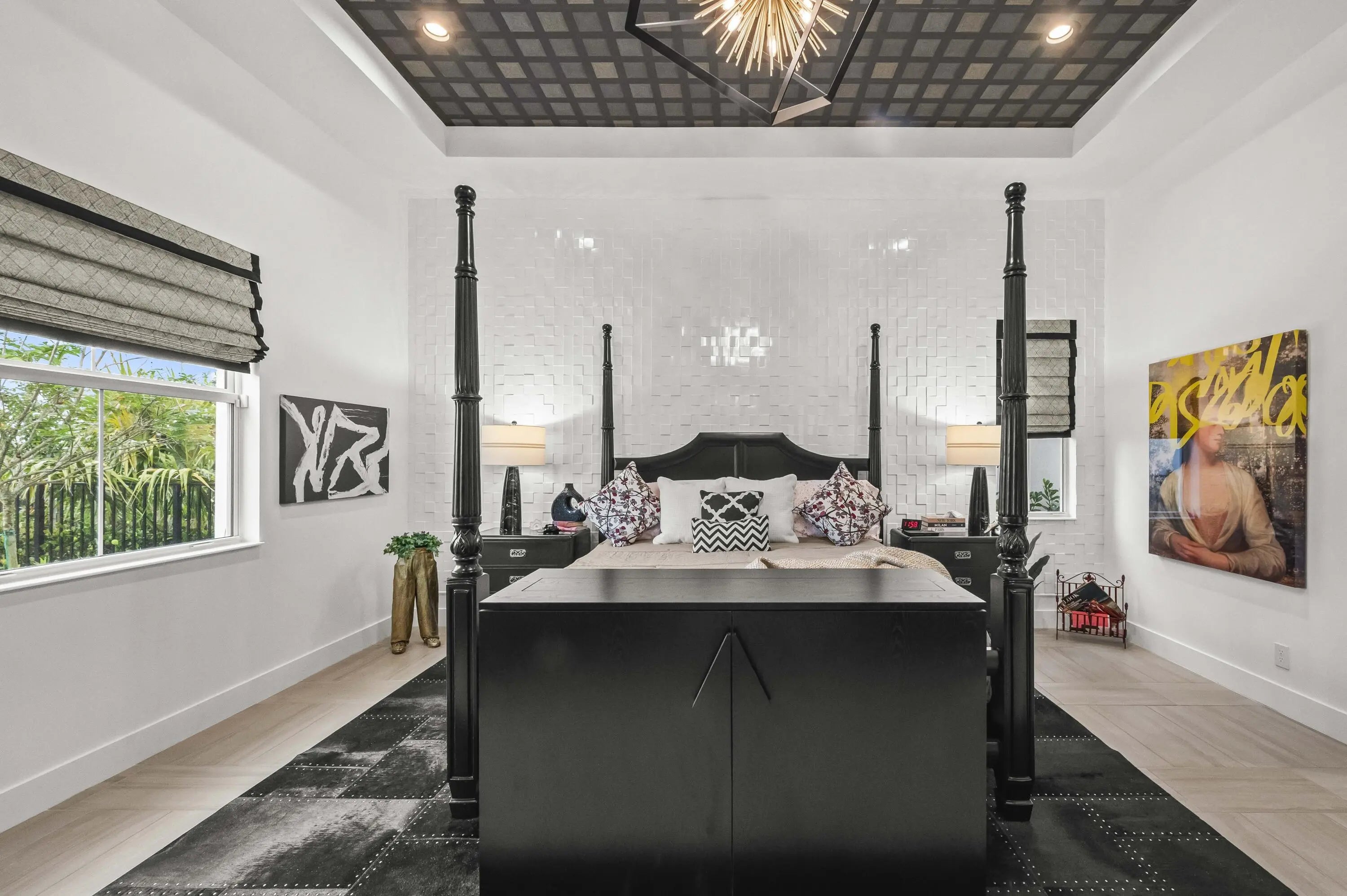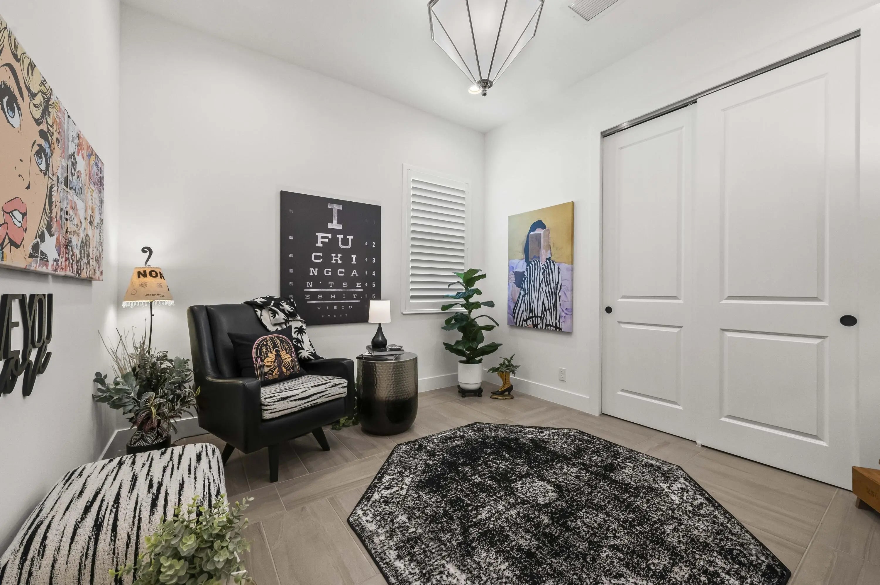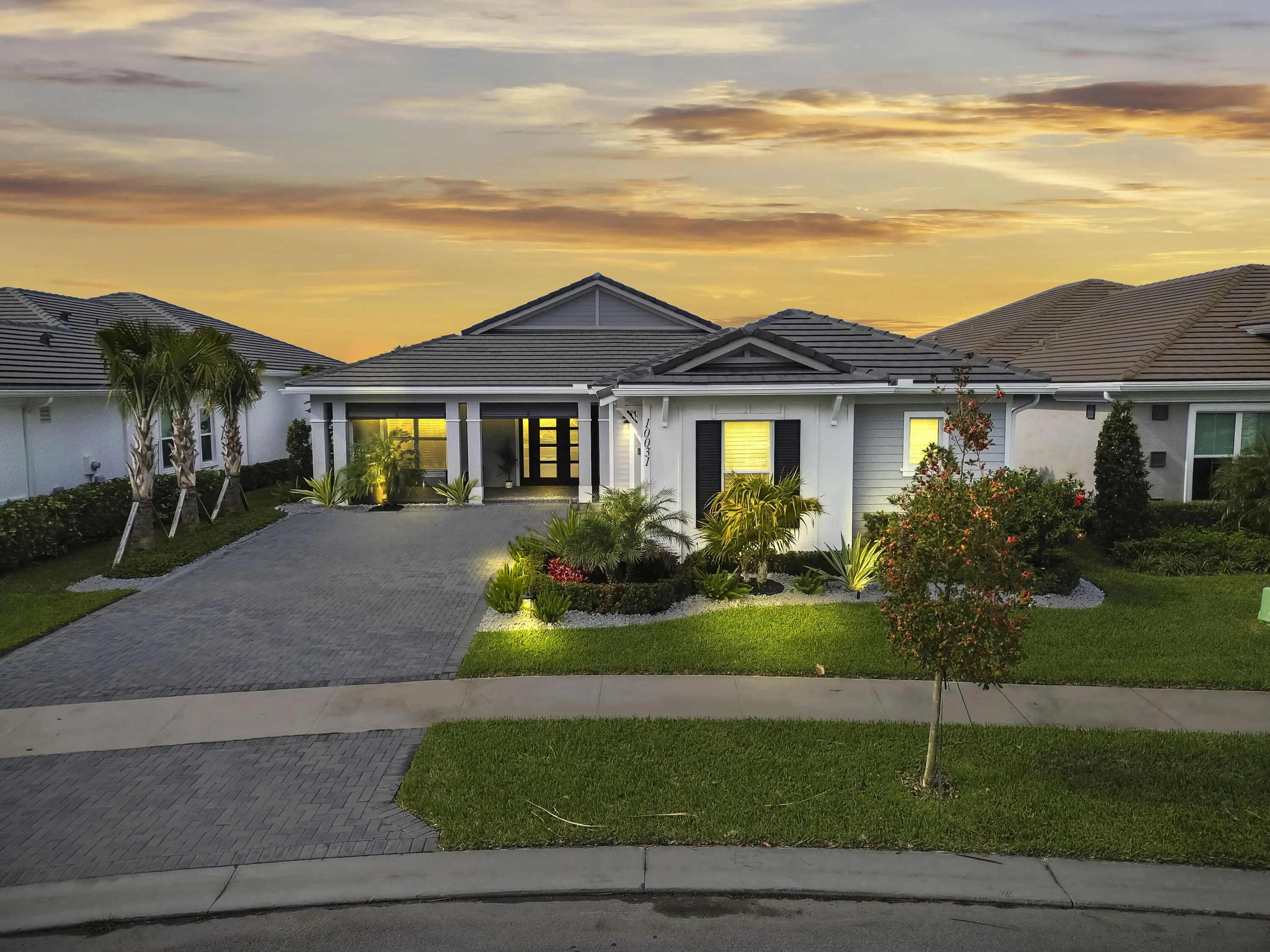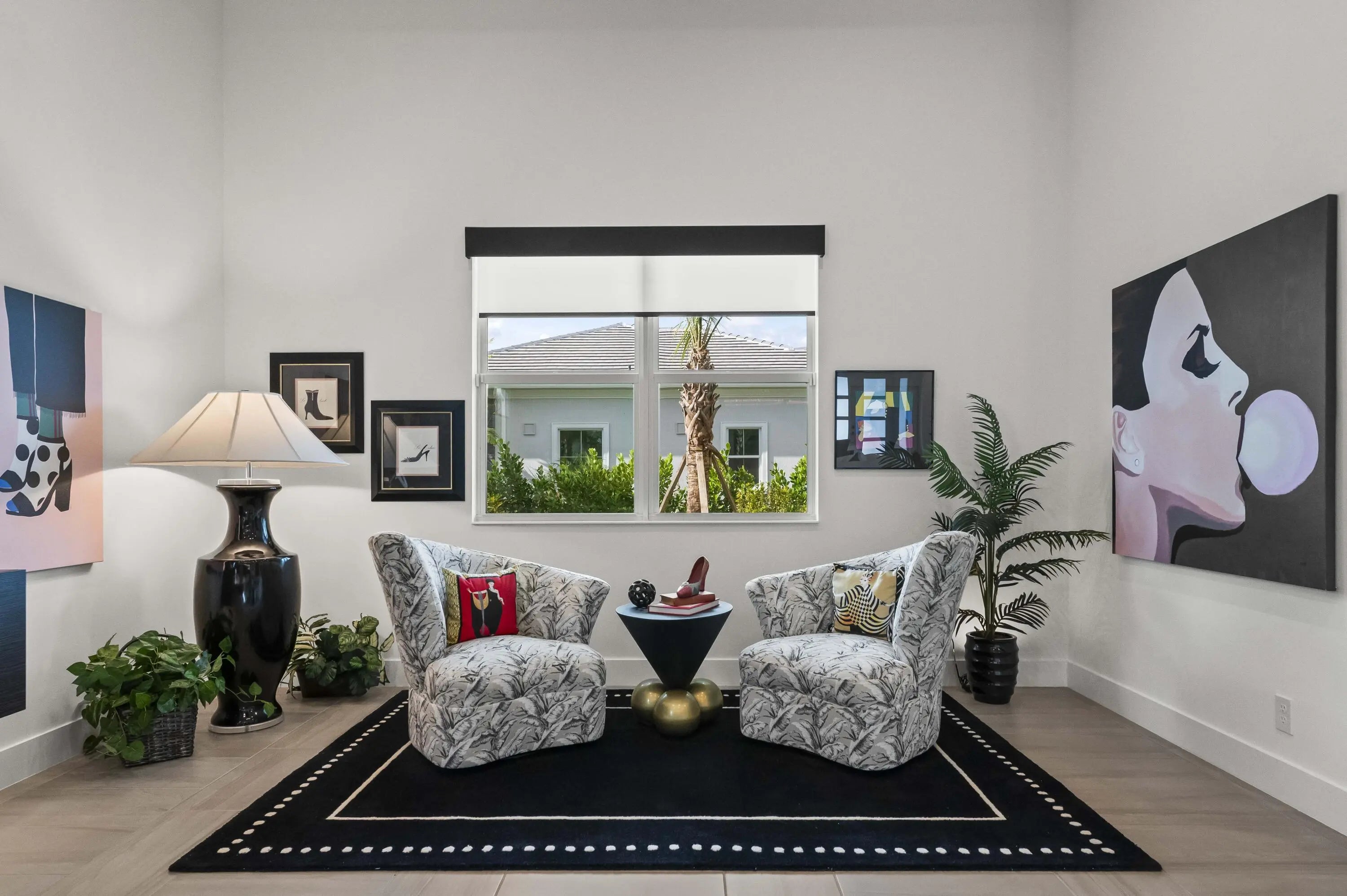 Experience the pinnacle of luxury living in this breathtaking residence, where upgraded double front doors welcome you into a world of sophisticated design and high-end finishes. The heart of the home is the expansive, extended great room, accentuated by striking ceiling beams, a custom built-in TV unit, and a beverage fridge that makes entertaining effortless. Culinary enthusiasts will adore the gourmet kitchen, showcasing a massive island with double waterfall edges and extra cabinetry, a farmhouse sink, and a chef-grade upgraded gas stove with a premium hood. An upgraded lighting package with numerous high hats illuminates the designer touches throughout, including unique feature walls and a chic designer banquette that adds flair to the dining space. Every room in this home has been thoughtfully curated for comfort and style. The dedicated den, which can easily be converted to a 4th bedroom, impresses with a custom-designed desk and wall unit, creating an inspiring workspace. Retreat to the primary suite, where relaxation awaits in a spa-inspired bathroom featuring extended ceramic tile and a luxurious freestanding oval tub. Attention to detail is evident in the customized closets and the premium window treatments found throughout the home, including custom plantation shutters, a unique transom window treatment, and motorized shades in the great room for ultimate convenience. Beyond the interior, the property offers exceptional functionality and curb appeal. The extended garage is a showstopper in itself, boasting a custom epoxy floor, electric car charger, overhead storage, and built-in shelving and cabinetry for superior organization. Step outside to enjoy the serene private lake view, enhanced by custom landscaping with professional front and backyard lighting that creates a magical ambiance at night. Located in a premier 55+ community with resort-style amenities, this home is a true masterpiece of modern design and convenience.