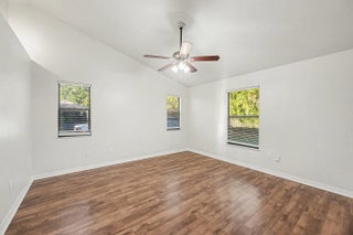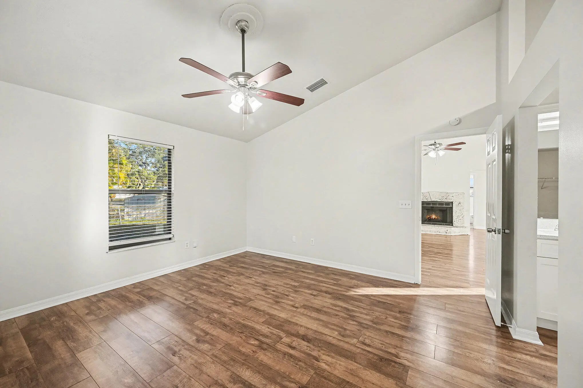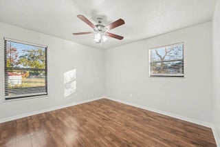 This move-in-ready home offers stylish updates and a functional layout, perfectly positioned between Kildare Park and Schumann Dr Park. Laminate flooring flows throughout the living areas and bedrooms, with durable vinyl plank in all wet areas. The living room is anchored by a cozy fireplace, creating a warm focal point for everyday living and entertaining. The kitchen features white shaker cabinetry, quartz countertops, and an appliance package including dishwasher, electric range, and microwave. The primary suite offers a walk-in closet, double-sink vanity with quartz tops, a walk-in shower, and a separate garden tub. The guest bath includes an updated vanity and a tub/shower combo. Additional highlights include a 2-car garage with electric washer/dryer hookups and a garage door opener.