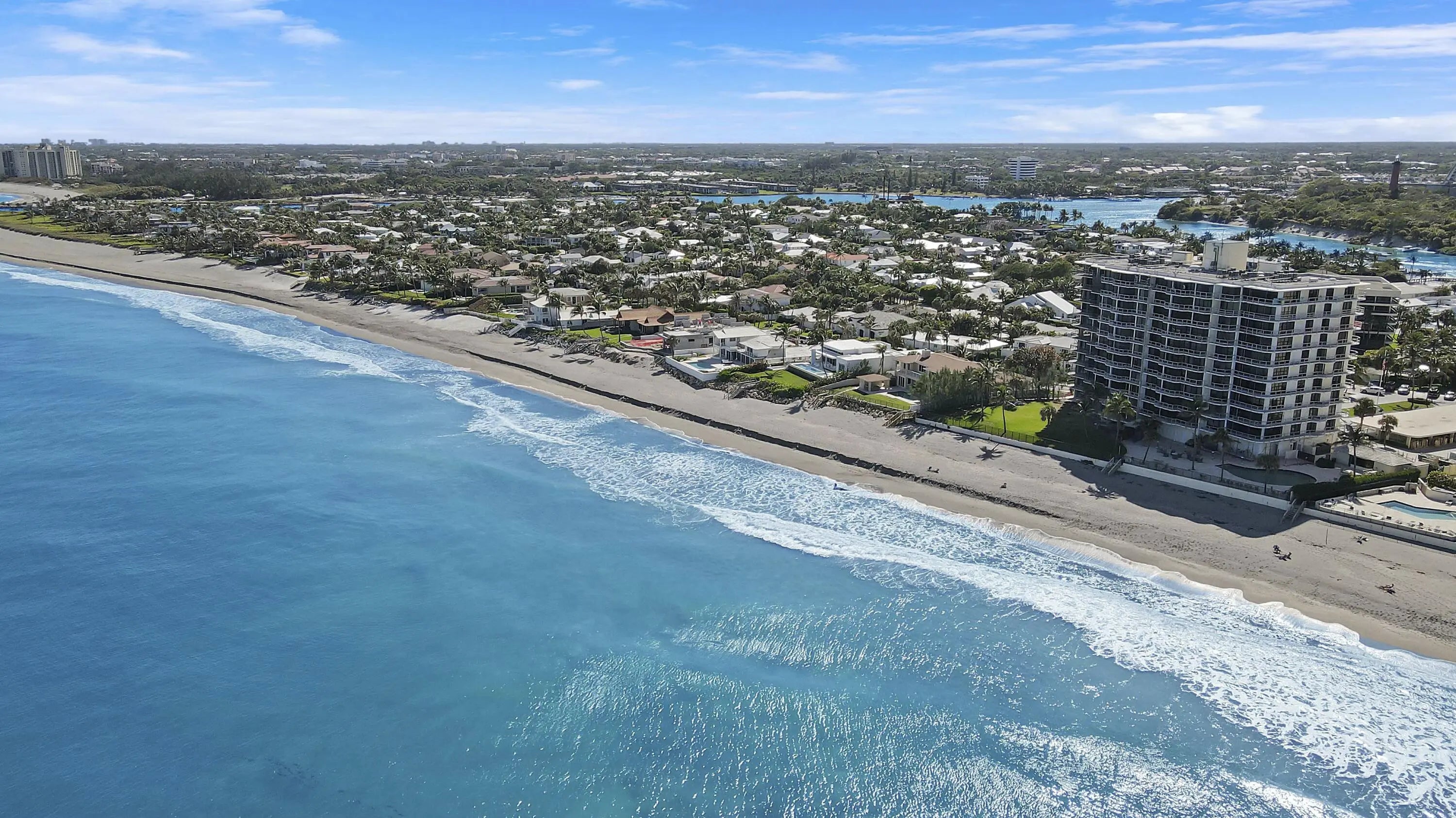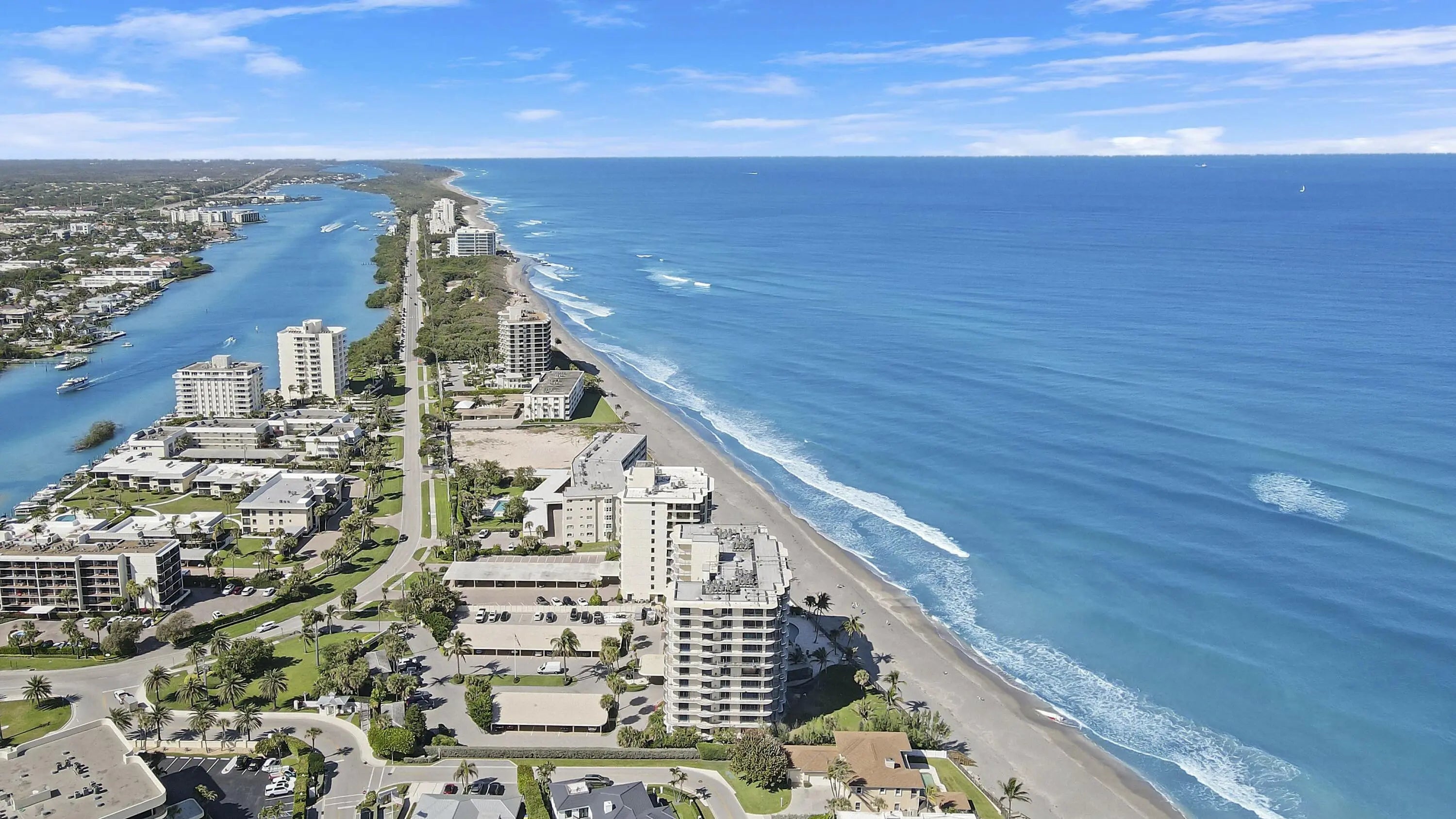 This rarely available corner residence on the 8th floor of Ocean Towers South is located in one of Jupiter Island's most highly sought-after buildings. This large split floorpan offers nearly 2,000 sq ft and breathtaking panoramic ocean views . Featuring an expansive wraparound balcony, this condo is filled with natural sunlight and Atlantic Ocean views. Right next to the iconic Jupiter Lighthouse, this residence is part of an exclusive enclave known for its privacy, beauty, and world-class coastal living. With all major assessments fully paid, the building is undergoing a stunning transformation, including brand-new sleek glass balconies that will elevate its modern appeal. This stack has been completed! Now is the perfect opportunity to design this condo to your exact vision. A dream oasis by the sea where you can embrace the ocean breeze and relax in your private beach retreat. Ocean Towers South offers private beach access, a heated oceanfront pool, a fitness center with a sauna, covered parking, and on-site management. Enjoy the ocean breeze while being just minutes from Tequesta and Jupiter's finest dining, shopping, and golf courses. This is a rare opportunity to customize a prime oceanfront retreat in one of South Florida's most coveted locations