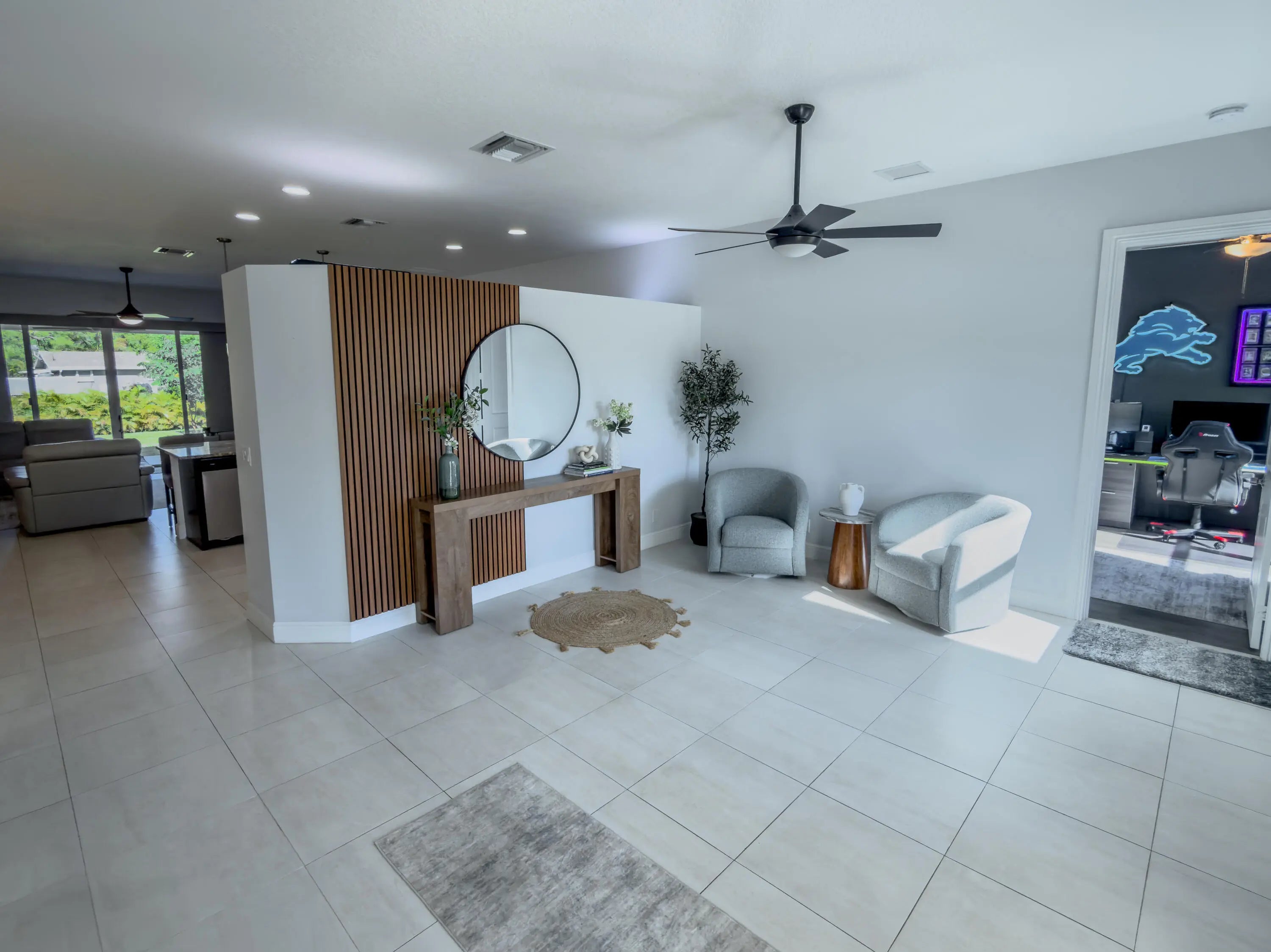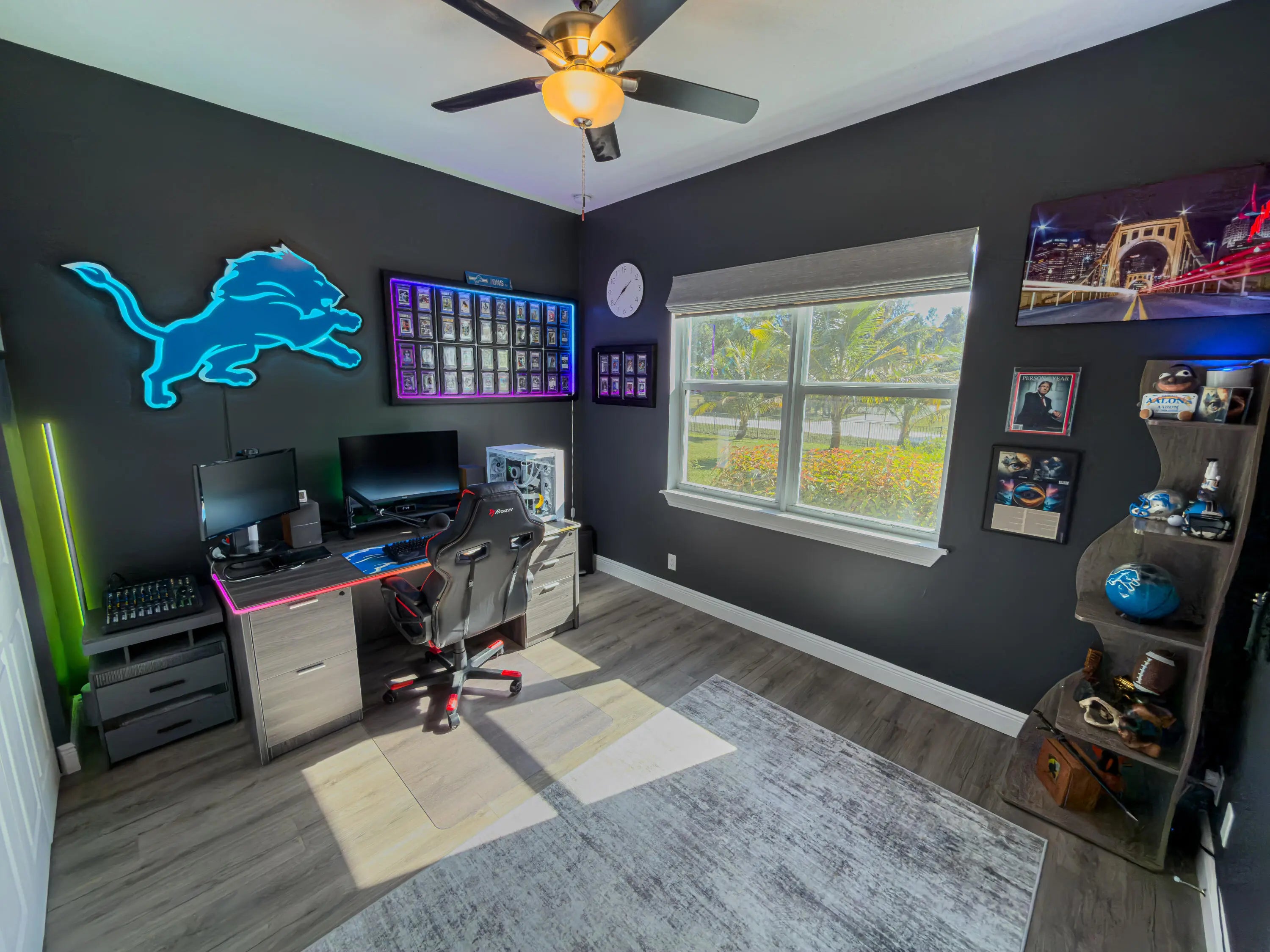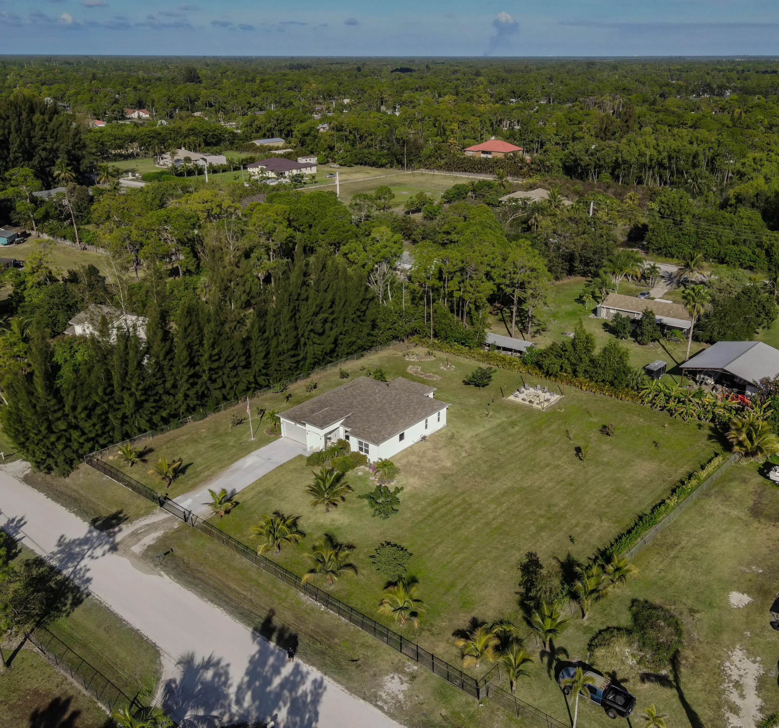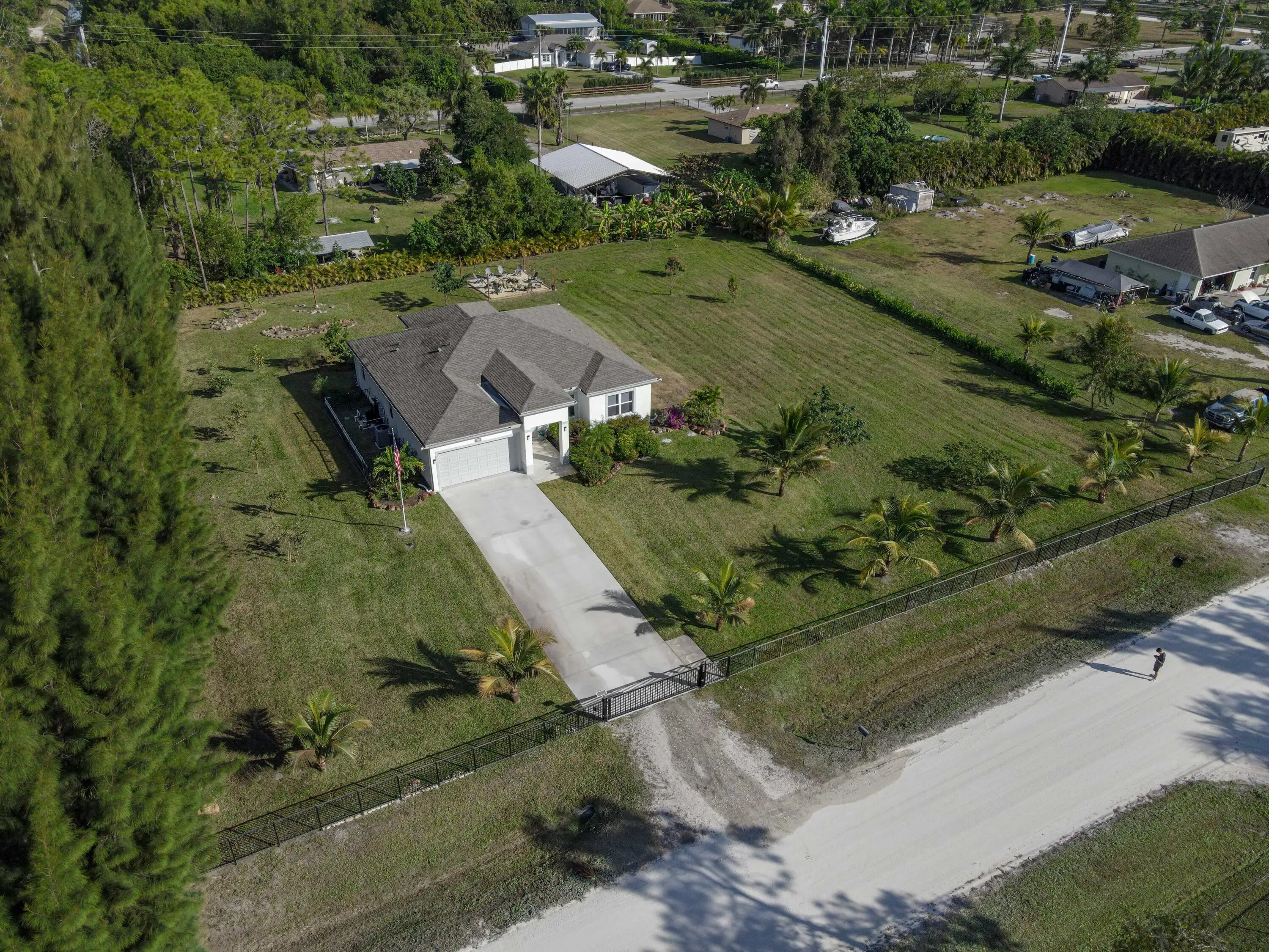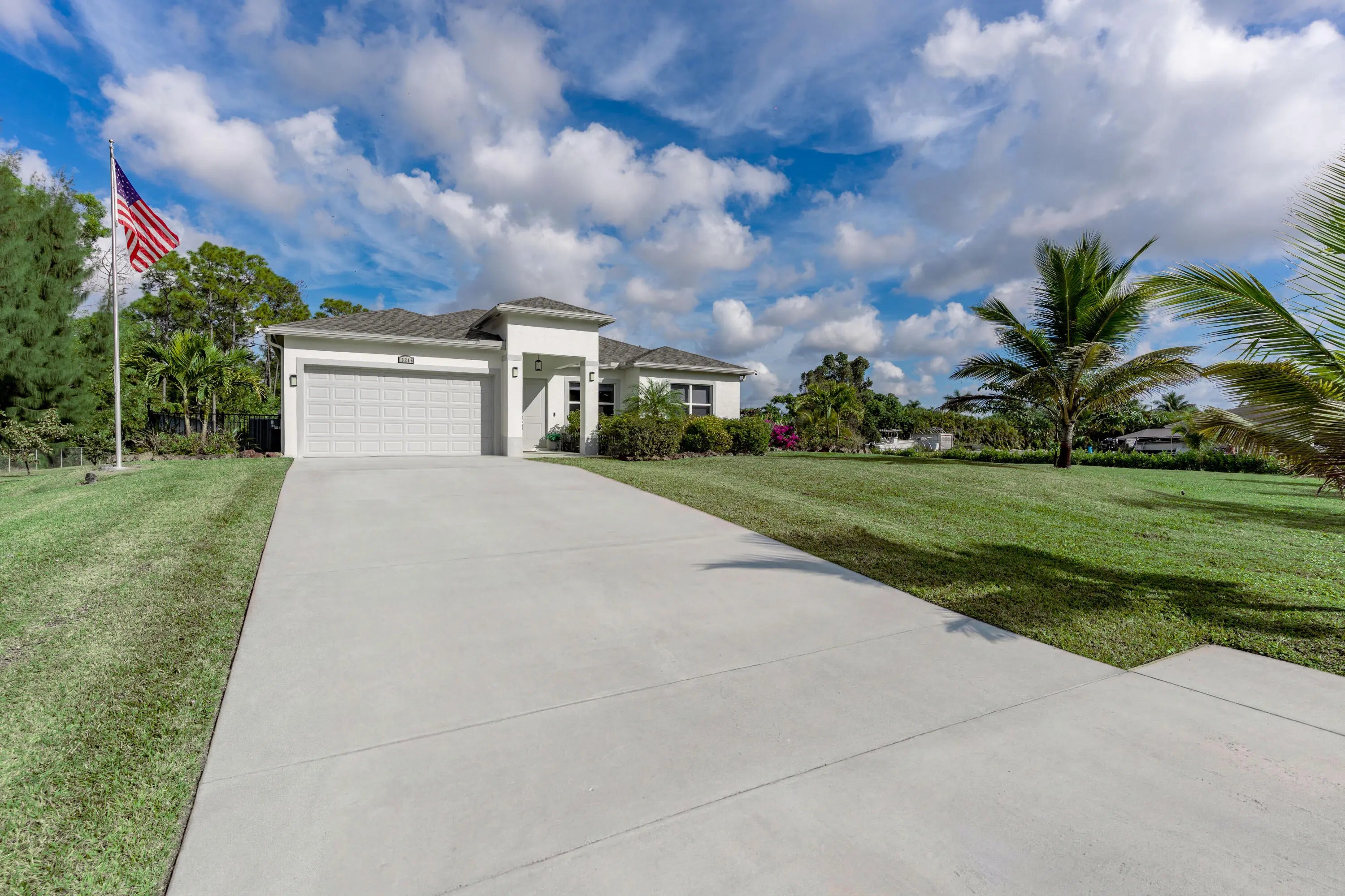Built in 2022, this thoughtfully designed 4 bedroom, 2 bath residence sits on 1.16 acres in The Acreage, blending modern finishes with expansive outdoor living. The open concept kitchen showcases quartz countertops, stainless steel appliances, and a reverse osmosis water system. Master suite with separate tub and shower. A fully fenced lot with automatic gate, new driveway, and fire pit area enhance both privacy and lifestyle. Ample space for a custom pool, RVs, boats, and trailers. Bring your toys, there's room for everything. Newer construction, over an acre, and endless possibilities. This is the one you've been waiting for!