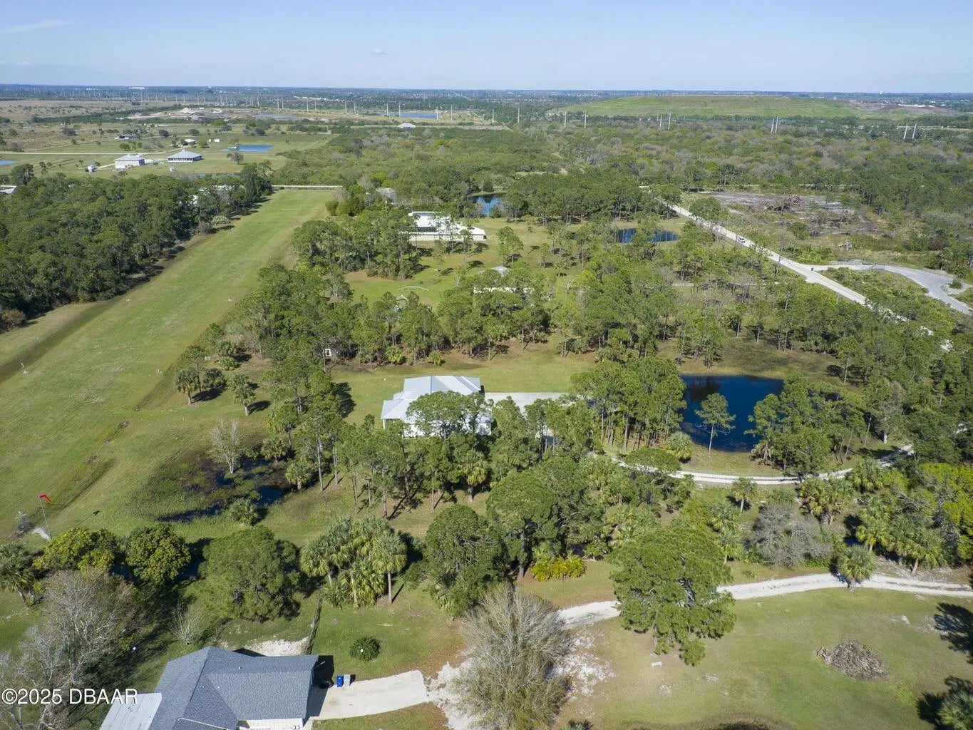 Bring your AIRPLANE with you!! FIVE acres of beautiful land. Welcome to Vero Beach and their exclusive fly in community. What a house and what a property. 4 bedrooms and 3 full baths all block home! This home had a complete make over in 2022 including new roof, new HVAC in 2025, new kitchen with all new cabinets/custom quartz counter tops and Kitchen Aid appliances. All new beautiful tile flooring throughout and new paint inside and out plus 8-foot interior doors. This beautiful home and its three-car garage is situated on five acres with a private lake. Property is also located less than two miles from the new exit off interstate 95. Bring your toys big or small this property has room for them all!