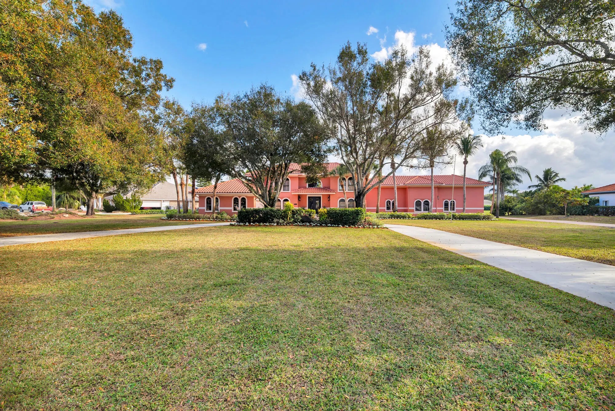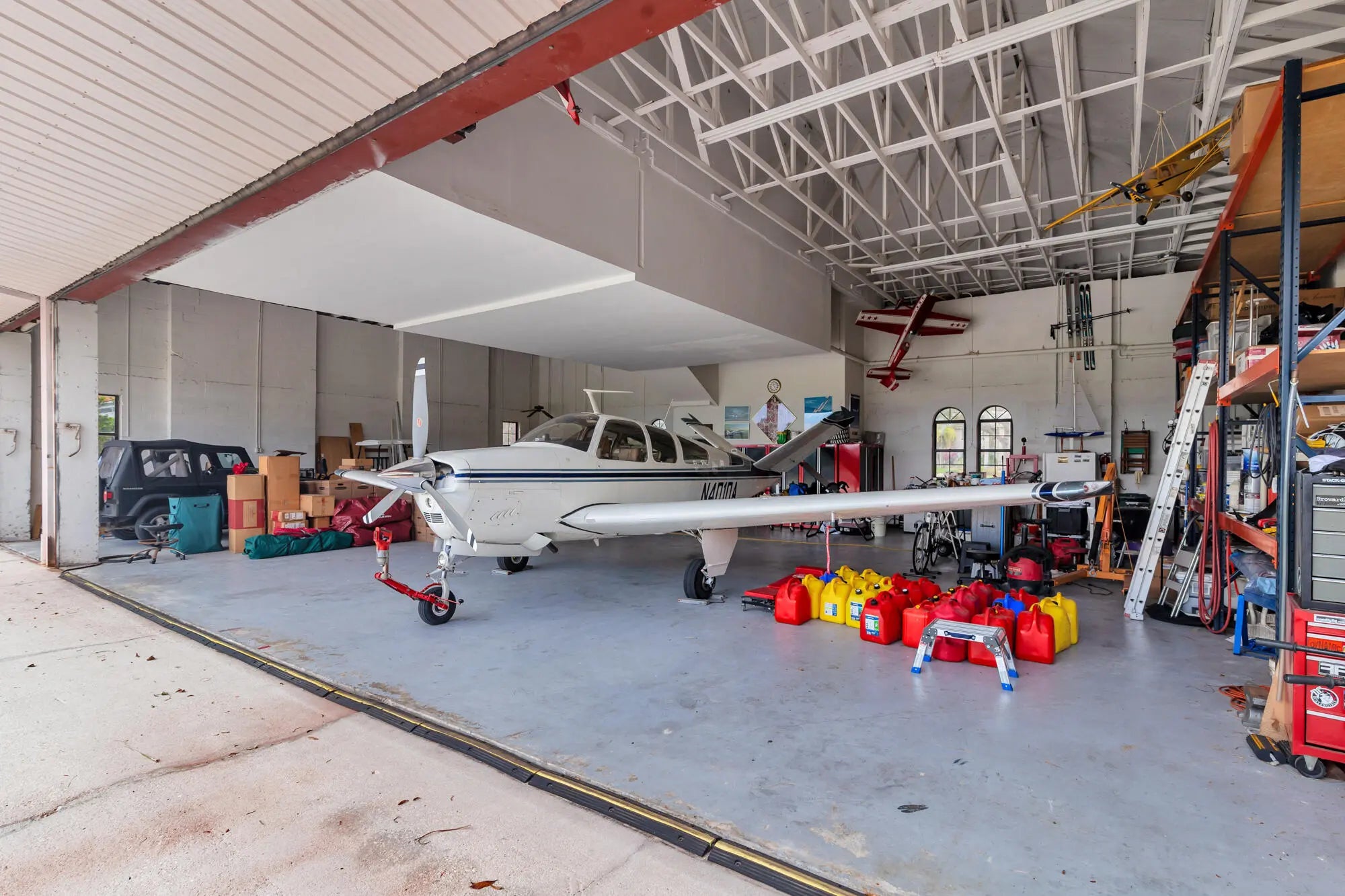 Beautifully situated 1+ acre Aero Club Hidden Treasure! Currently the lowest priced direct taxi-way home with a hangar in the community! This lovely 5 Bedroom home features a split floorplan with a stairway leading to 3 Bed/3Bath including the Primary Bedroom. The kitchen features an island with fully equipped appliances including a viking gas range (500gal propane tank), sub-zero refrigerator with freezer, walnut cabinetry, and a spacious dining area. The large open family room off the kitchen features a coral wood-burning fireplace. An enormous sparkling heated pool + jetted spa makes for those perfect pool days. The outdoor patio has two large tiki huts perfect for shade and entertainment. This home also offers an attached 40x60 hangar with an upstairs loft that can used as an office or flex room and offers a full bathroom with patio area perfect for watching sunsets! This room has a separate entrance from the main house for ultra privacy for friends/family/guests. In addition to the circular driveway, a separate driveway was installed for RV/Hangar access on the western side of the property (see photos). It is important to note that this is 1 of 5 homes that backup to the community tie down area which means nobody will build behind you. Whether you are looking to move right in, renovate, or develop your dream home on this oversized lot, the opportunity awaits. The Wellington Aero Club (FD38) has a 4,000ft paved and lighted runway with a PAPI system in place that can accommodate jets up to 12,500lbs. The Aero Club is home to many aviation enthusiasts and entertainment/shopping venues are all readily available for residents nearby.