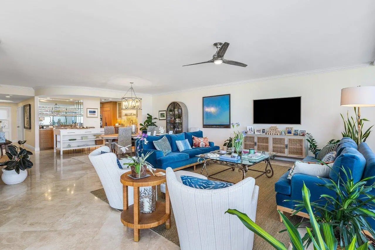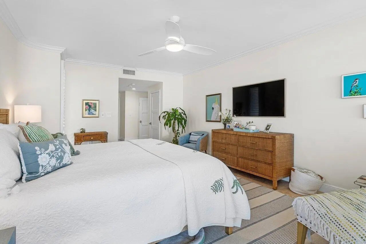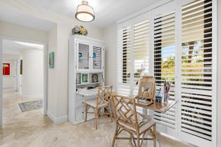 With parking under building, this 1st floor unit (elev 15') offers the Ocean View of a 2nd floor unit + walk out the back direct to beach or short walk to clubhouse-Perfect for pet lovers/ocean goers. Beautifully updated; Luxury Coastal Living w/Travertine Floors, Designer Touches, Power Shades/Plantation Shutters/Impact Glass 2 Assigned Parking Spaces/Storage in Garage. Spacious, relaxing primary suite is a refuge w/ Soothing, Spa-like Bath. Tropical breezes from Expansive Oceanfront Terrace or Sunsets from front balcony. Sailfish Point offers Privacy, Security & World-Class Amenities: Oceanfront Clubhouse 5 dining options/Jack Nicklaus Signature Golf/Deep-water Marina-Reasonable Rates (up to 127') Tennis/Pickleball/Fitness Cntr/Spa/Salon. Private, Jet-Capable Airport w/Customs minutes