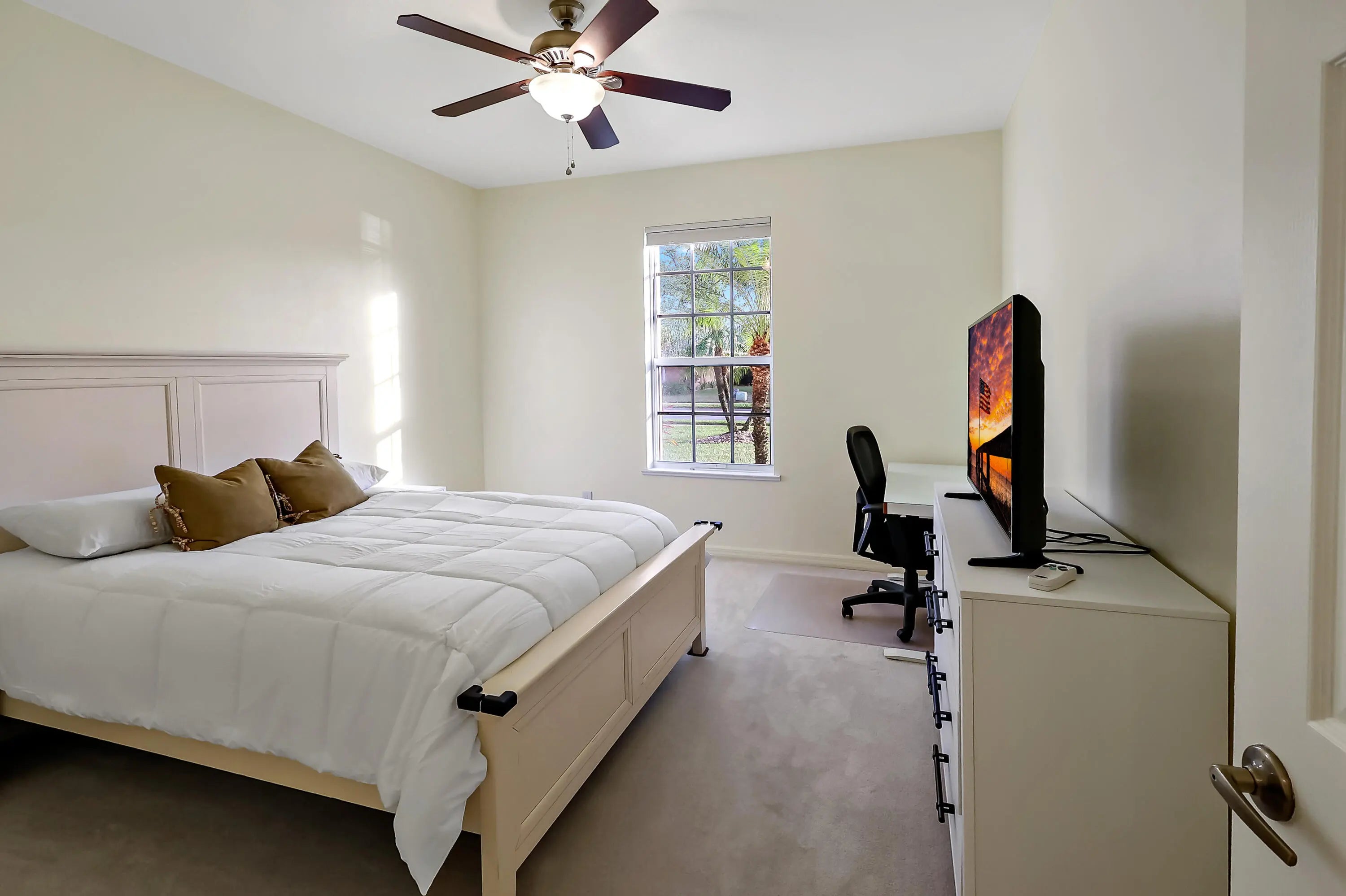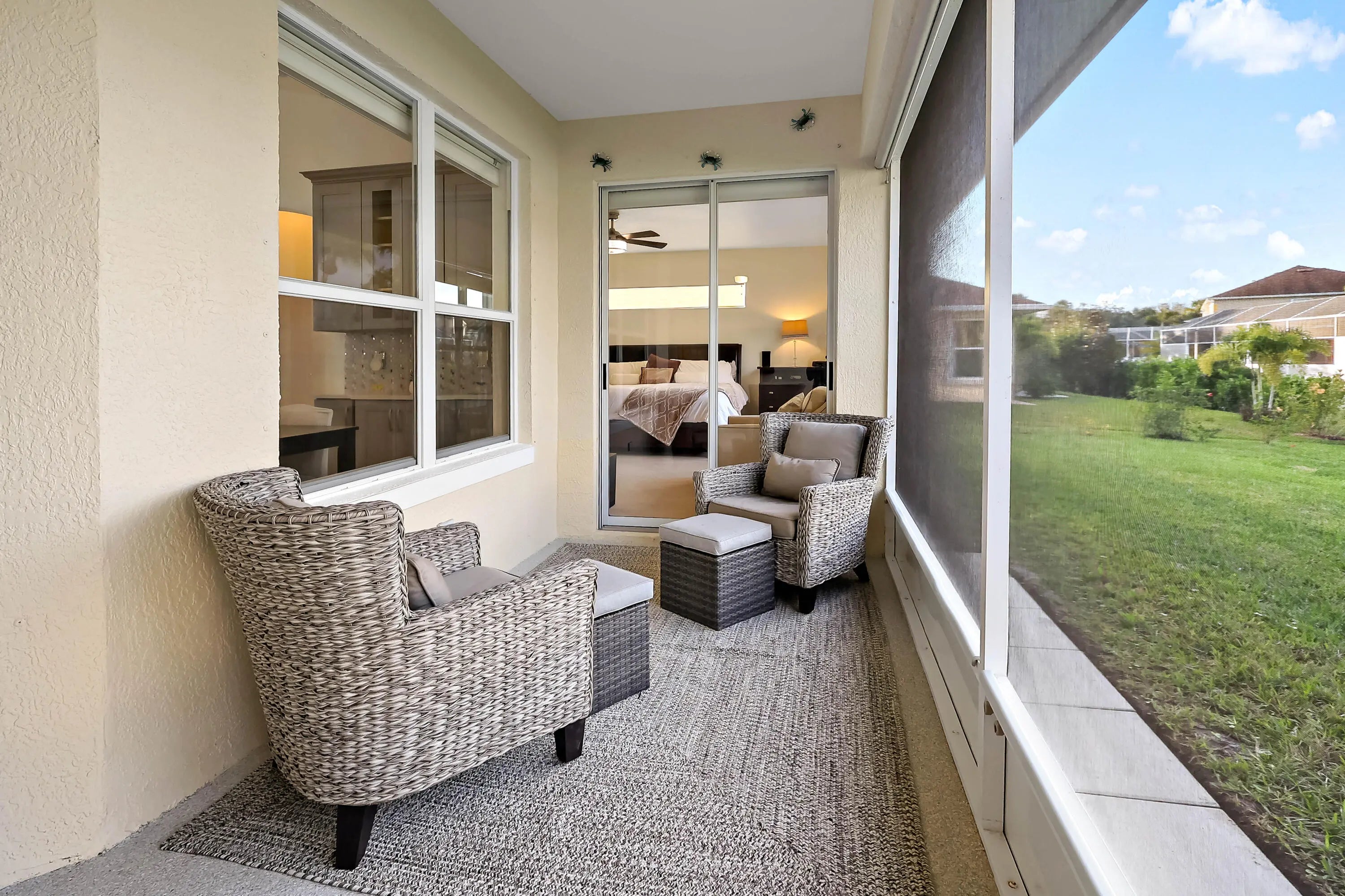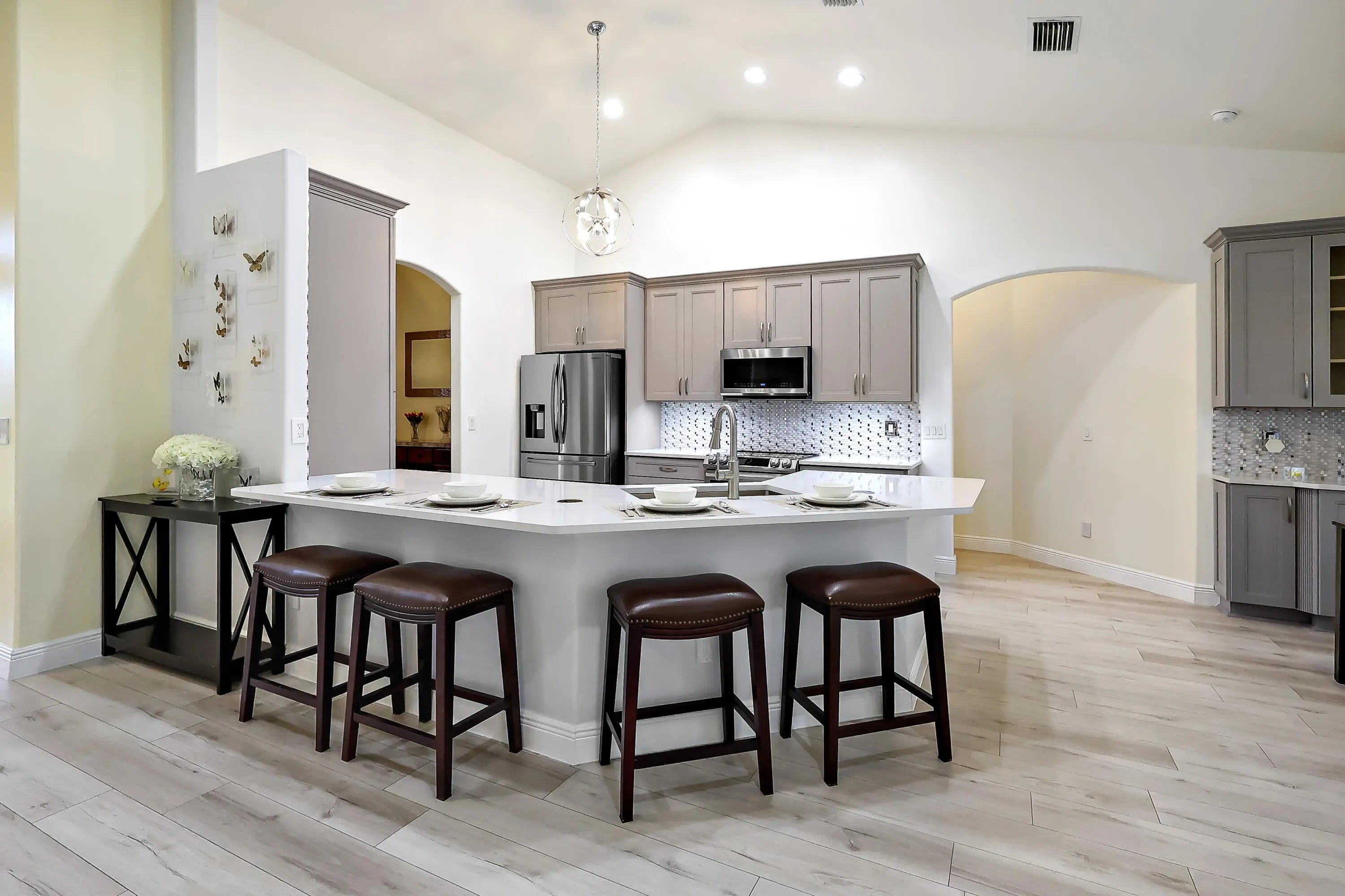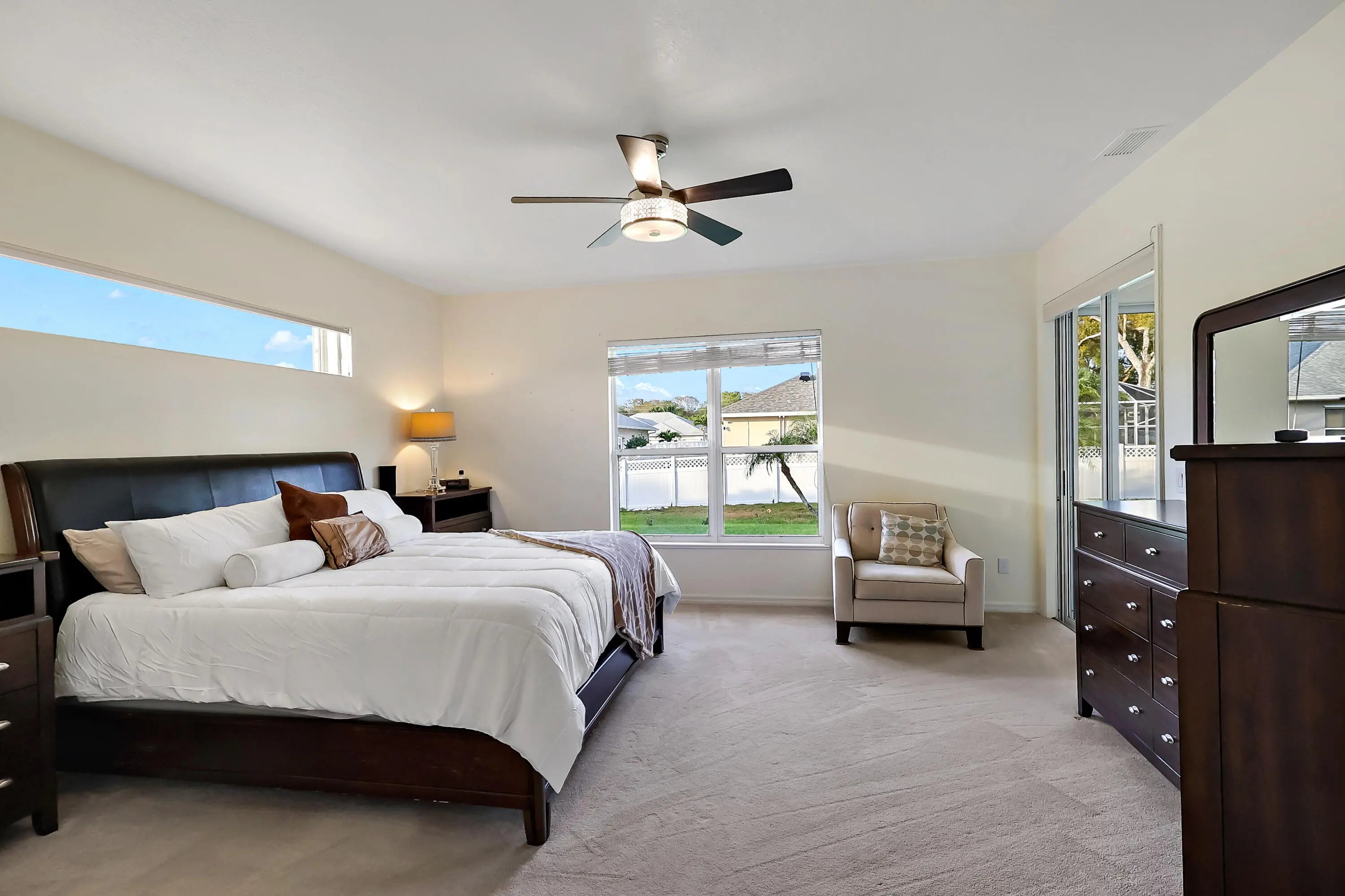 Tucked on a quiet cul-de-sac in the gated Oak Chase community in Vero Beach, this bright, modern home shines w/an open floor plan, soaring ceilings, & abundant natural light. The beautifully updated kitchen--featuring quartz counters, soft-close cabinetry, & stainless-steel appliances--will inspire any home chef. Double split 4BR/3BA layout offers space & privacy. Unwind in the spacious primary suite w/walk-out to lanai, walk-in closet, & spa-style wet room w/tandem panel showers. Enjoy year-round entertaining on the screened lanai. Extras: 2-CG w/epoxy floors & screen door, whole-home water purification, accordion shutters, & pre-wired for security system & portable generator. Centrally located.