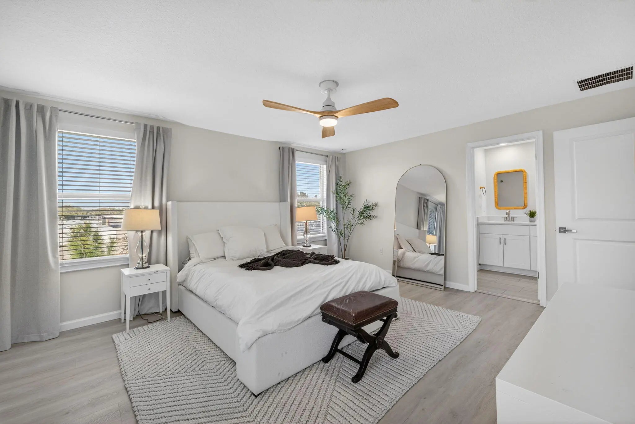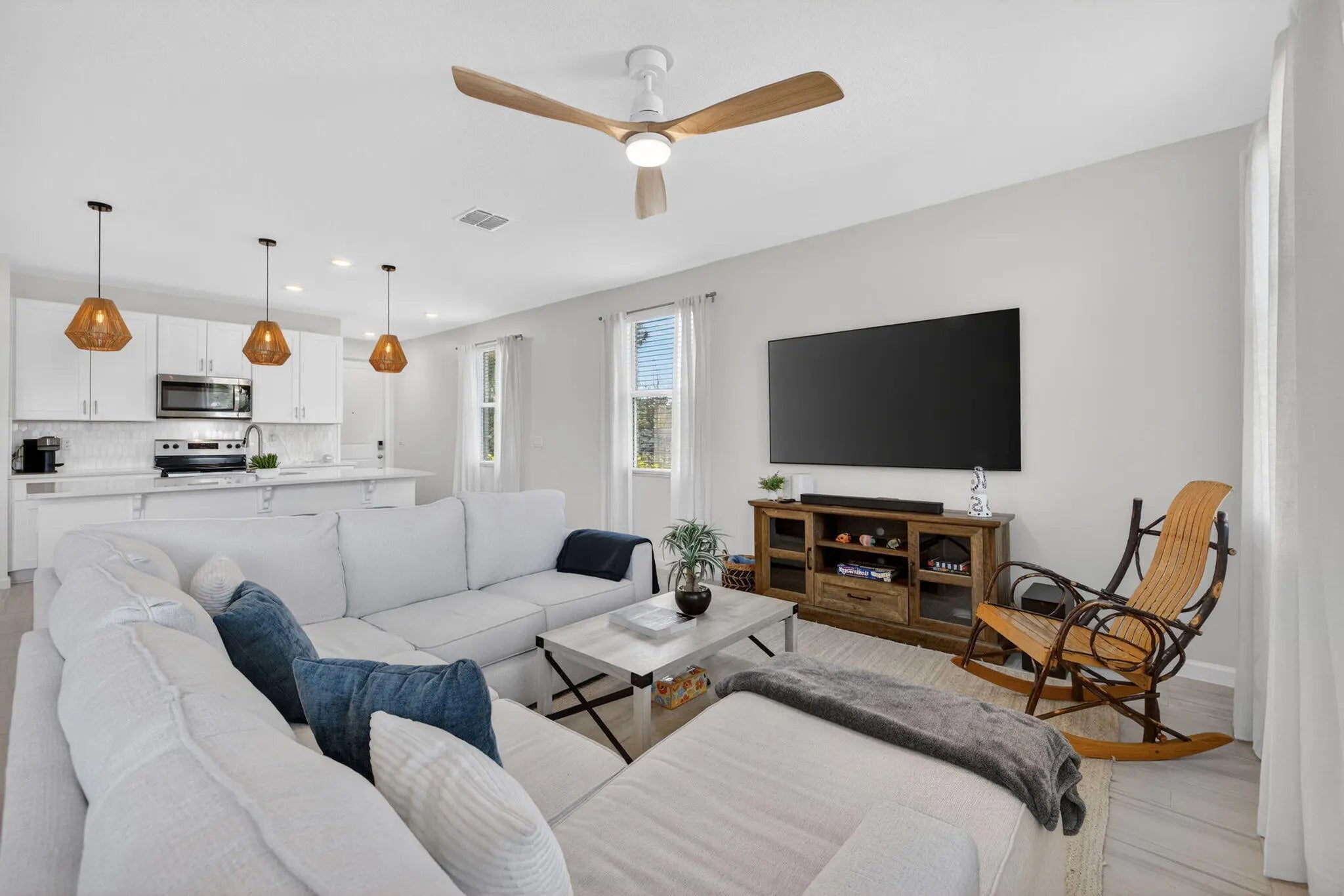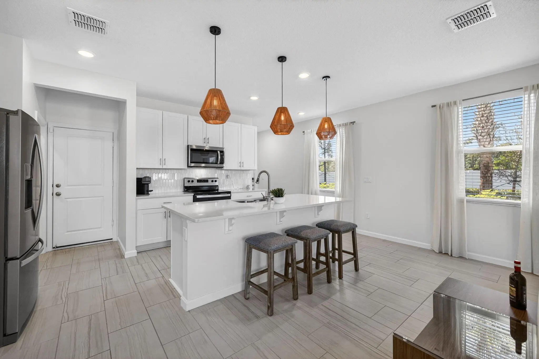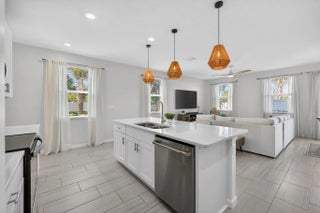 Immaculate, nearly new end-unit townhome in the gated community of Willoughby Townhomes at Edgewater Pointe. Built in 2024 and upgraded with over $30,000 in premium finishes, this residence offers modern elegance with no builder wait or fees. The open-concept living space features white shaker cabinetry, quartz countertops, marble backsplash, upgraded lighting, and stylish pendant fixtures. Durable laminate flooring extends throughout the second level and stairway. Offering 3 bedrooms, 2.5 baths, a loft, and an oversized 2-car garage, including a custom epoxy garage floor and upgraded half-bath vanity. The spacious primary suite provides a serene retreat, while secondary bedrooms are ideal for guests or a home office. Enjoy resort-style amenities, a community pool, and a prime location just minutes from downtown Stuart, beaches, dining, and shopping. Turnkey, low-maintenance luxury living at its finest.