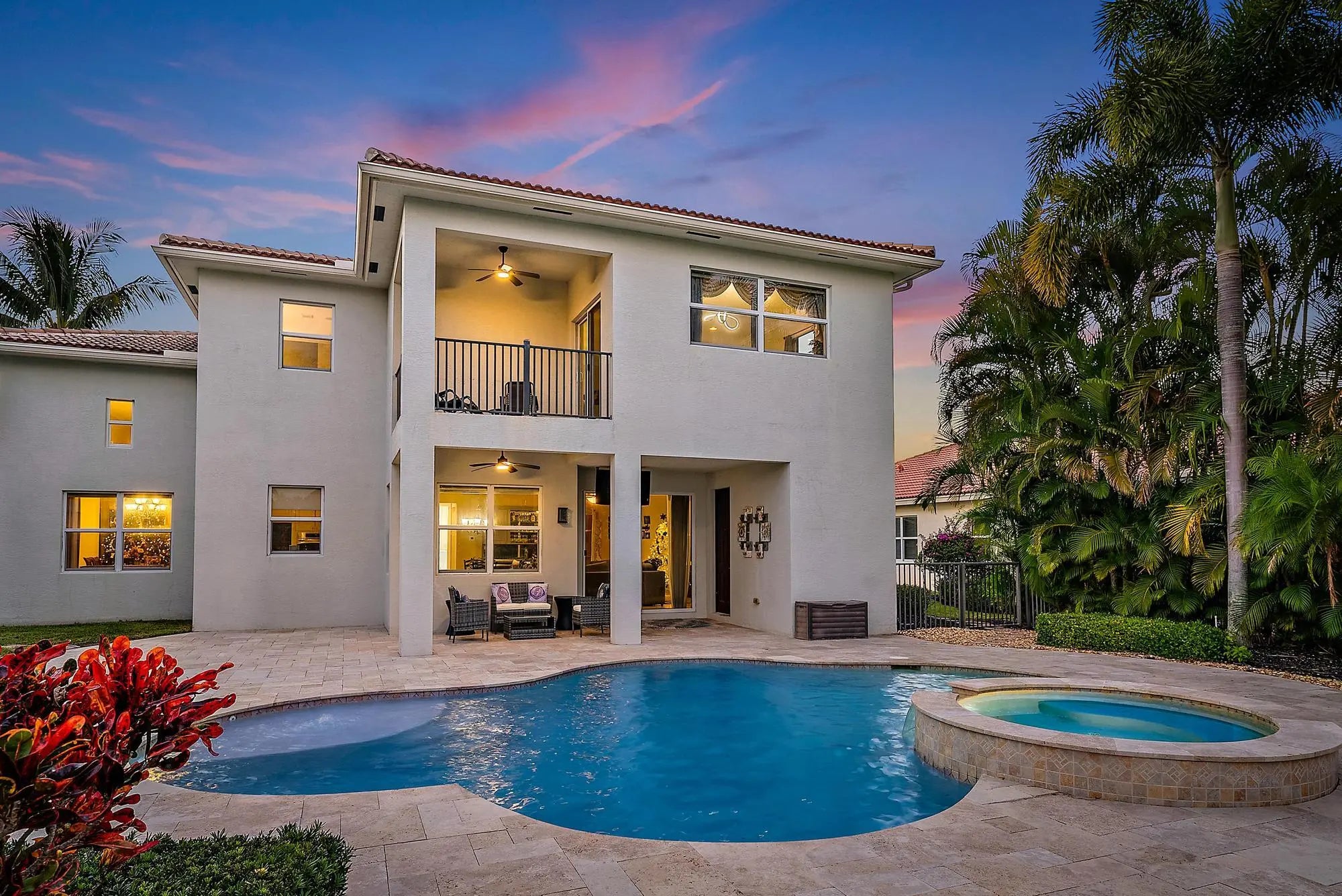 Welcome to this exceptional lakefront pool home in the highly sought-after gated community of Rialto. Perfectly combining luxury, comfort, and functionality, this Valenti model offers 5 bedrooms, 5 full baths, an office, and a 3-car garage across 4,153 square feet of beautifully designed living space. Situated on a prime lakefront lot with expansive water views, this home has been thoughtfully updated and meticulously maintained. Recent upgrades include a new refrigerator, new washer and dryer, new pool equipment, and a 2025 downstairs A/C unit (upstairs unit approximately 6-7 years old). Step inside to discover bright, open living areas with volume. The kitchen opens to the great room, showcasing views of the pool and lake, and features soft-close cabinetry and ample storage. Adjacent to the family room, a built-in bar creates the perfect setting for entertaining, while the dedicated office with a custom built-in desk provides an ideal workspace. Additional highlights include custom built-ins in every closet, a soft water system, and hurricane-impact windows and doors for peace of mind. The floor plan offers flexibility and comfort, with one guest bedroom and the office downstairs, and the master suite plus three additional bedrooms and a loft upstairs. The generous master suite features a sitting area, private balcony, two walk-in closets, and a luxurious bath complete with a seamless glass shower, double vanities, and a jacuzzi tub. Two of the upstairs guest rooms are en-suite, and all bedrooms include walk-in closets. Step outside to your private backyard oasisdesigned for relaxation and entertainingwith a sparkling pool overlooking the lake, a covered lanai, and a convenient cabana bath. The HOA takes care of the lawn in front and back as part of dues. Amenities include an amazing clubhouse with fitness center, kids splash park, resort style pool and jacuzzi, numerous playgrounds, basketball, 2 tennis courts, walking/jogging trails and much more. The Rialto social committee is always busy planning events for the residents to come together for people of all ages. Jupiter Community Park is right across the street and is home to many sports for kids and adults. Rialto is centrally located in Jupiter close to beaches, restaurants, and shopping. Only a short drive to Palm Beach International Airport and easy highway access with I-95 and the Turnpike only minutes away.