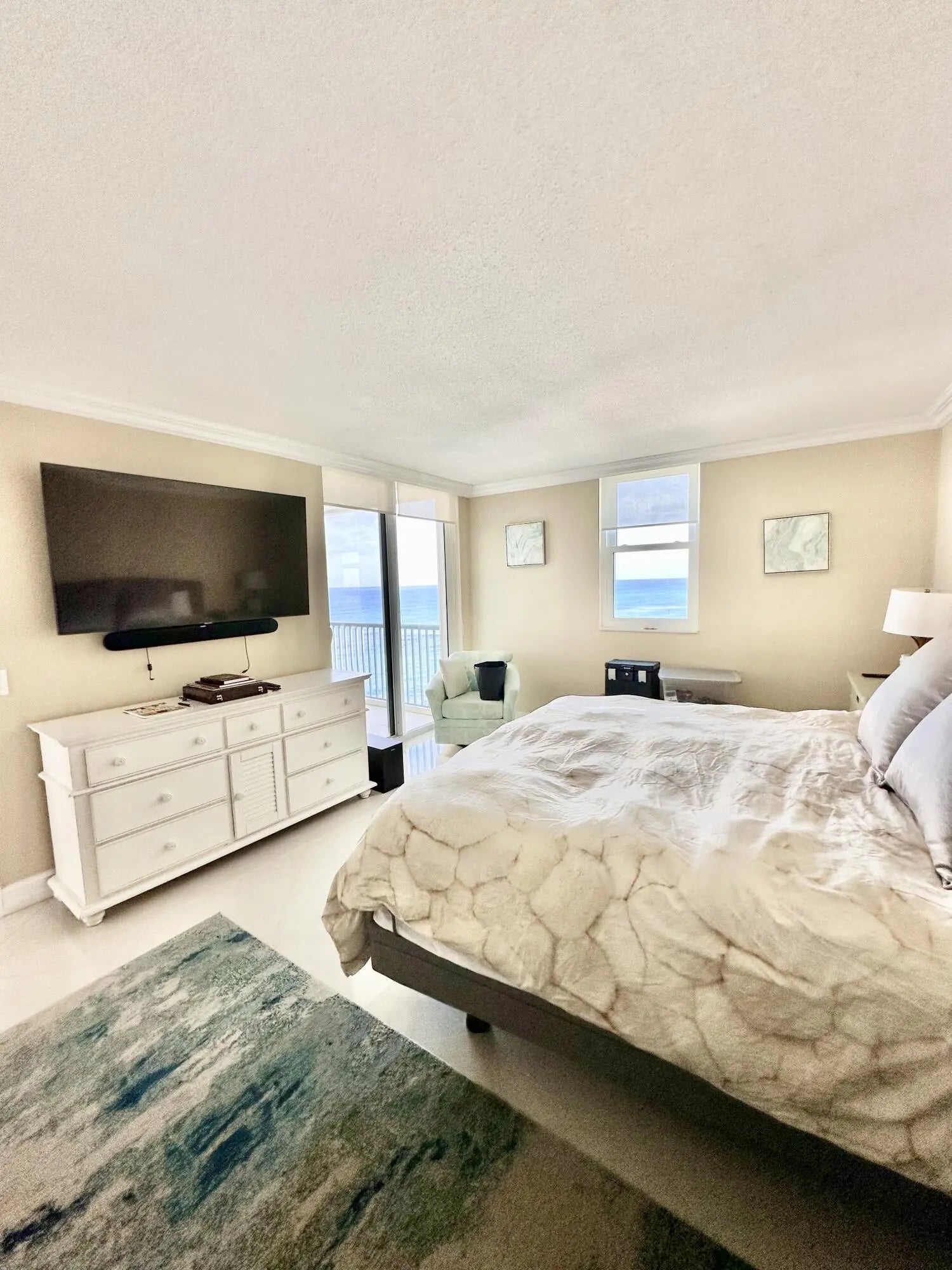 Oceanfront 2BD/2BA fully renovated condo with stunning Atlantic and Intracoastal views. Wake up to sunrises and enjoy beautiful sunsets in the evening. Open layout approx. 1,500 sq ft, tile floors, beautiful kitchen cabinetry, new countertops, and stainless steel appliances. Large balcony accessible from living room and both bedrooms. Primary suite with large walk-in closet and gorgeously renovated bathrooms. Offered fully furnished and turnkey with private storage unit. New seawall and roof. Beachfront pool, fitness center, club room, and private beach access. Assigned covered parking plus ample guest parking. All-new hurricane-impact sliding doors (~$30K value). North end of Singer Island, Palm Beach County, approx. 20 minute to airport, Move in Ready.