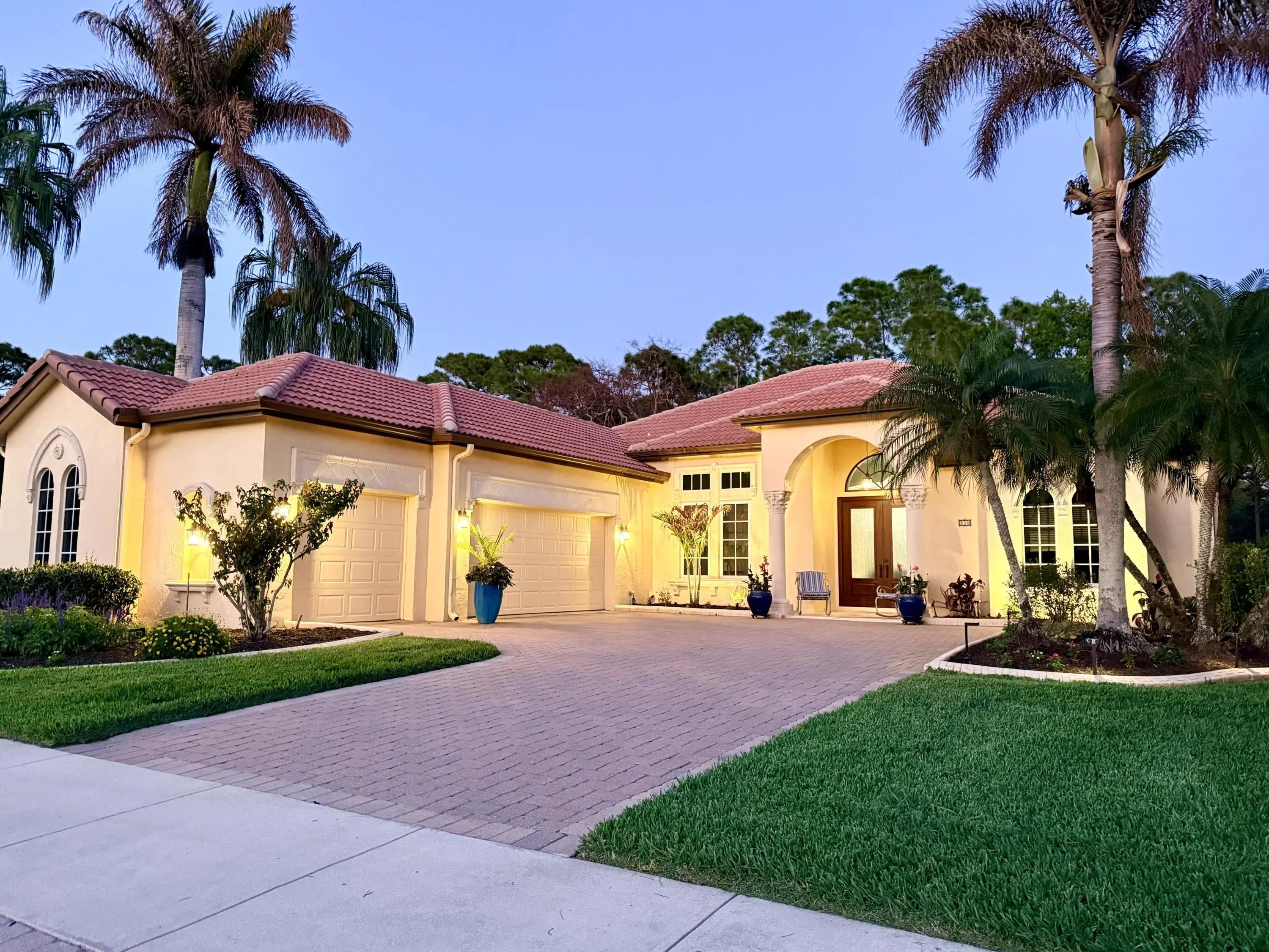 Renovated 4BR/3BA home with 3-car garage in the gated community of The Vineyards in Port Saint Lucie. Quiet cul-de-sac setting with peaceful preserve views. Travertine-tiled entry and double impact-rated glass doors create an elegant welcome. Formal living and dining rooms open to outdoor space through sliding glass doors. Updated kitchen with custom inset cabinetry, quartzite countertops, new appliances, and a Signature 36-in counter-depth refrigerator. Separate bar area with matching inset cabinetry and quartzite surfaces. Tile flooring throughout. Spacious primary suite with 2'x4' porcelain tile, dual closets, and renovated bath. Bathrooms updated throughout. PGT impact windows, impact-rated doors, new AC units, fresh interior paint, and laundry room with front-load washer and dryer. Minutes to I-95 and US-1.