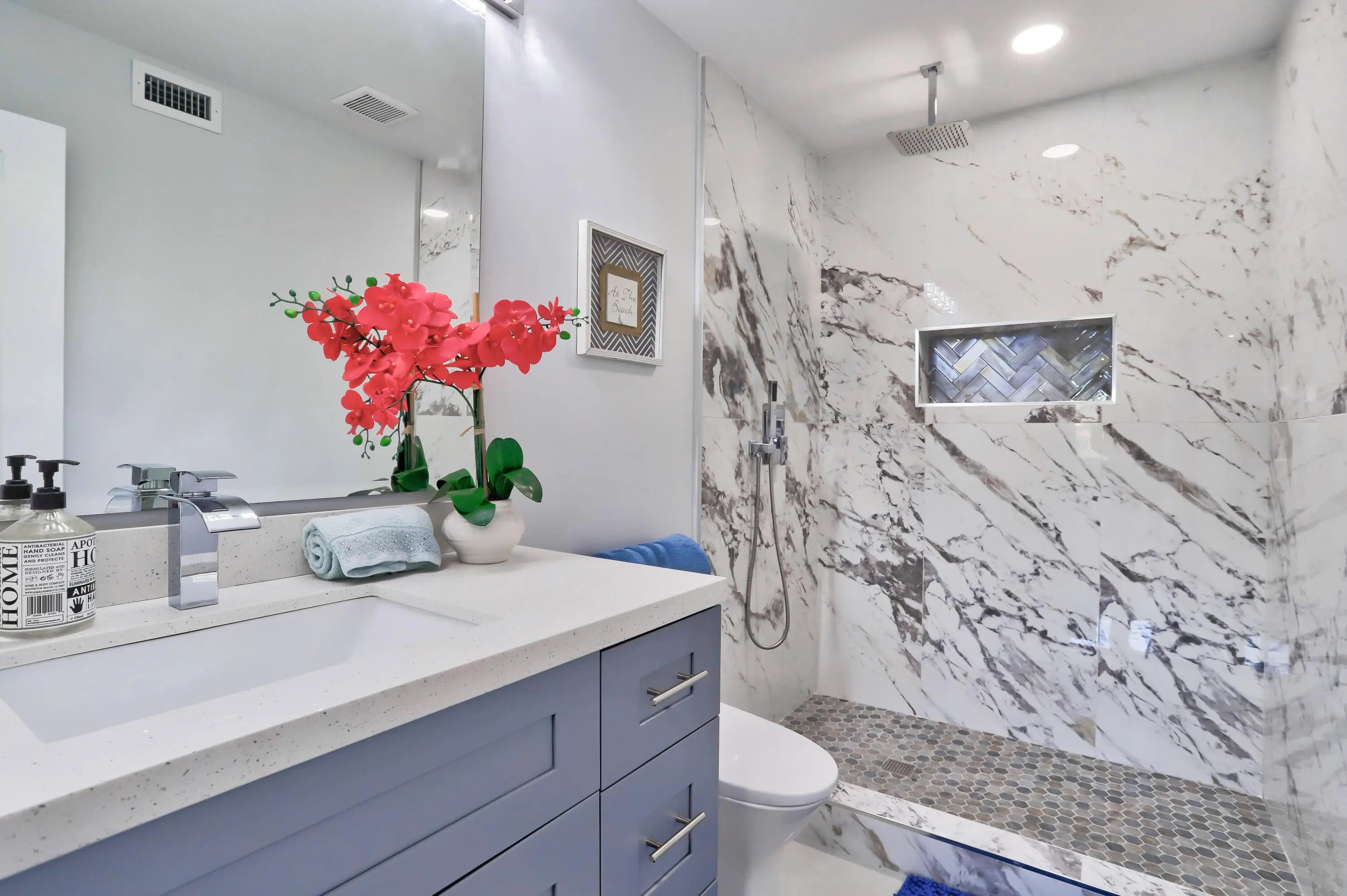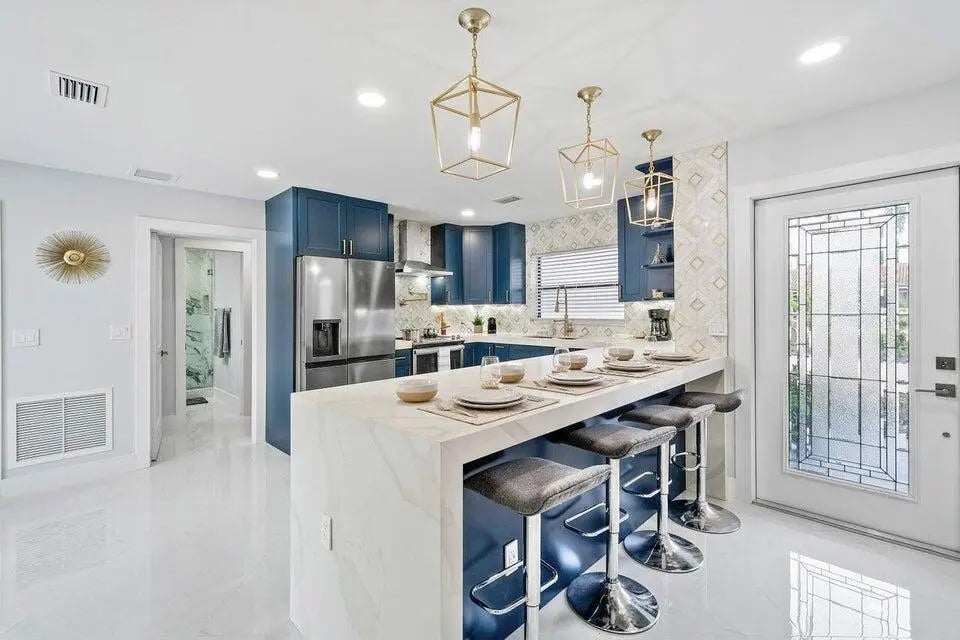 Welcome to island living in the highly desirable community of Palm Beach Shores. This beautifully renovated 4-bedroom, 3.5-bath coastal home offers the perfect blend of luxury living, vacation lifestyle, and income potential just a short walk from the Atlantic Ocean and the Intracoastal Waterway. With limited inventory in Palm Beach Shores, opportunities to own a fully renovated 4-bedroom home this close to both the ocean and Intracoastal are rare. Situated on a quiet tropical street, this 2,133-square-foot home features an open-concept floorplan designed for entertaining and relaxing. The spacious living area showcases striking wood beam ceilings, a built-in electric fireplace with quartz TV alcove, and abundant natural light that creates a warm and inviting atmosphere. The designer kitchen is the heart of the home, featuring 3-inch quartz countertops, shaker cabinetry with functional storage, stainless steel appliances, a custom electric cooktop with pot filler, dishwasher, microwave drawer, and a dedicated bar area complete with wine and glass storage. The adjacent dining and eat-in kitchen spaces provide the perfect setting for gatherings with family and friends. The home has been extensively updated with new electrical, plumbing, HVAC system, ductwork, flooring, bathrooms, interior doors, and hurricane-impact windows, providing peace of mind for years to come. Step outside to enjoy a private tropical backyard with a paved patio ideal for outdoor dining and entertaining. The spacious yard offers plenty of room to design a custom resort-style pool and outdoor kitchen, creating the ultimate Florida outdoor living space. Pool proposal and plans are available upon request. This property is being offered fully furnished with all appliances and electronics included, making it move-in or rental ready. Currently operating as a highly rated 5-star Airbnb property, the home offers an established short-term rental opportunity . Located in a short-term rental friendly community, this property provides excellent flexibility for owners looking to generate income while enjoying the home themselves. This home offers a rare opportunity to own a luxury coastal property that can generate income while you are away. Airbnb income summaries and booking details are available in the documents section. Located just minutes from Singer Island's beaches, restaurants, marinas, boating, and waterfront dining, this home offers a rare opportunity to own a turnkey coastal retreat with both lifestyle and investment potential. Open House and Showings: April 1st, April 2nd, and April 5th between 10:00 AM and 2:00 PM.