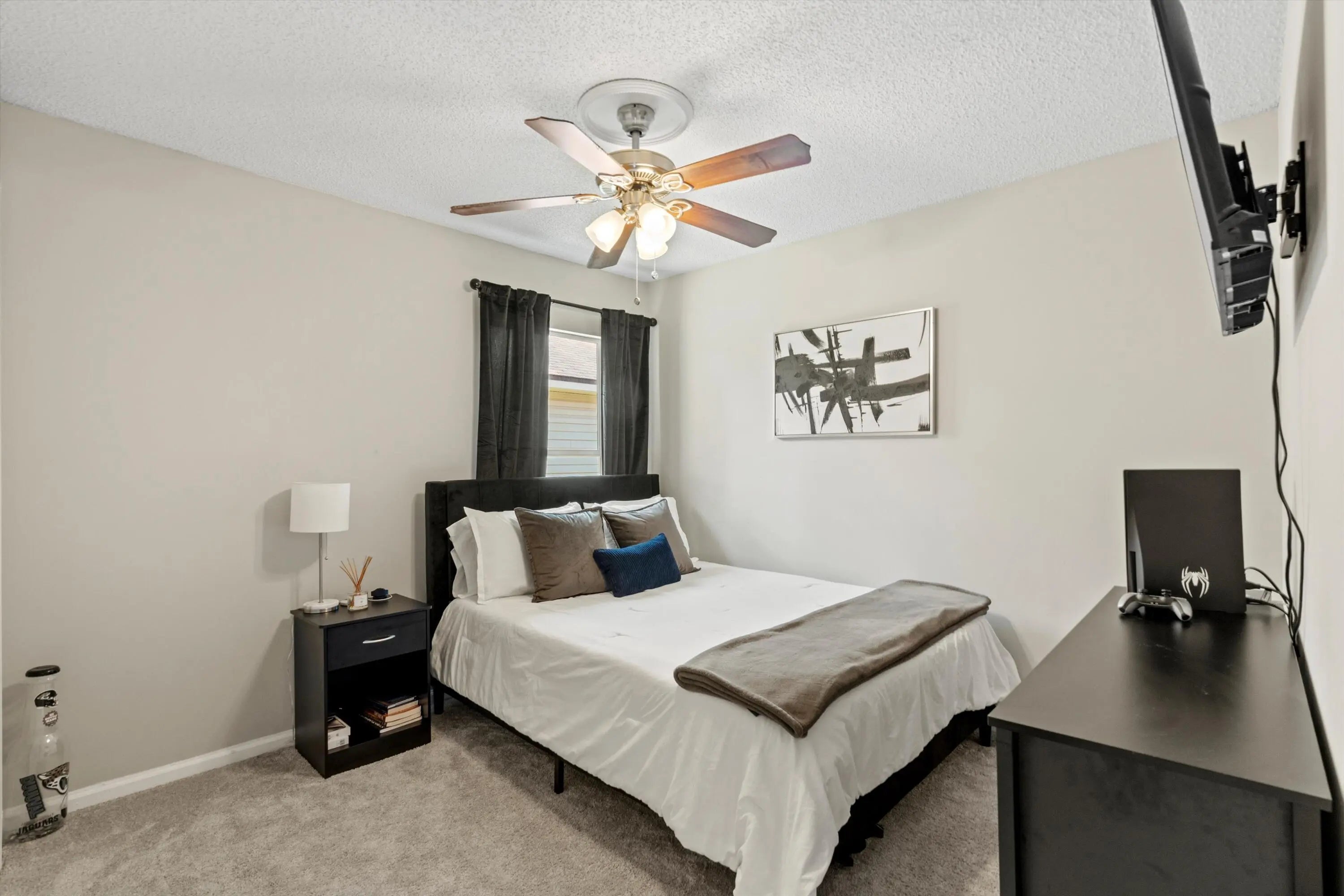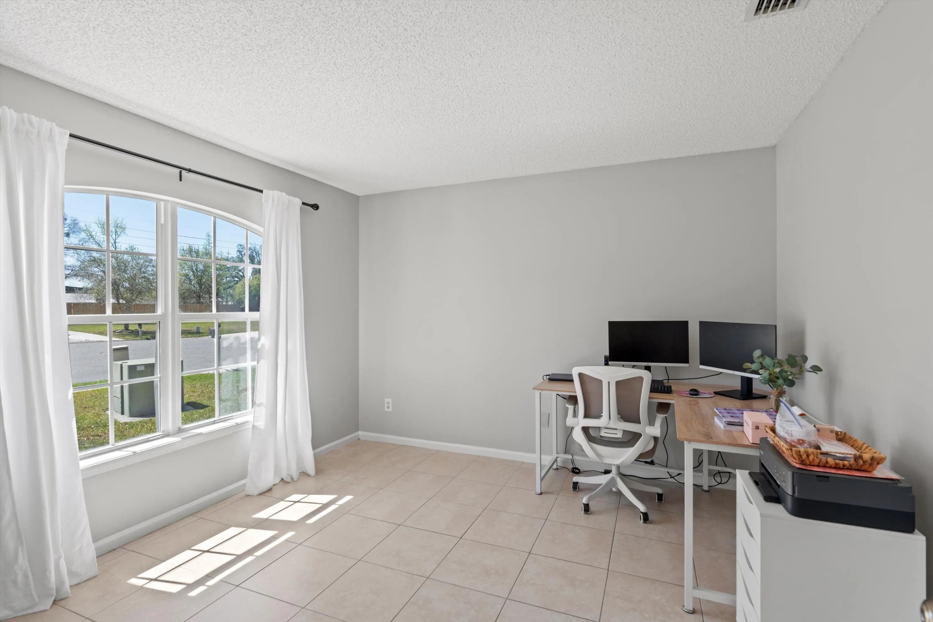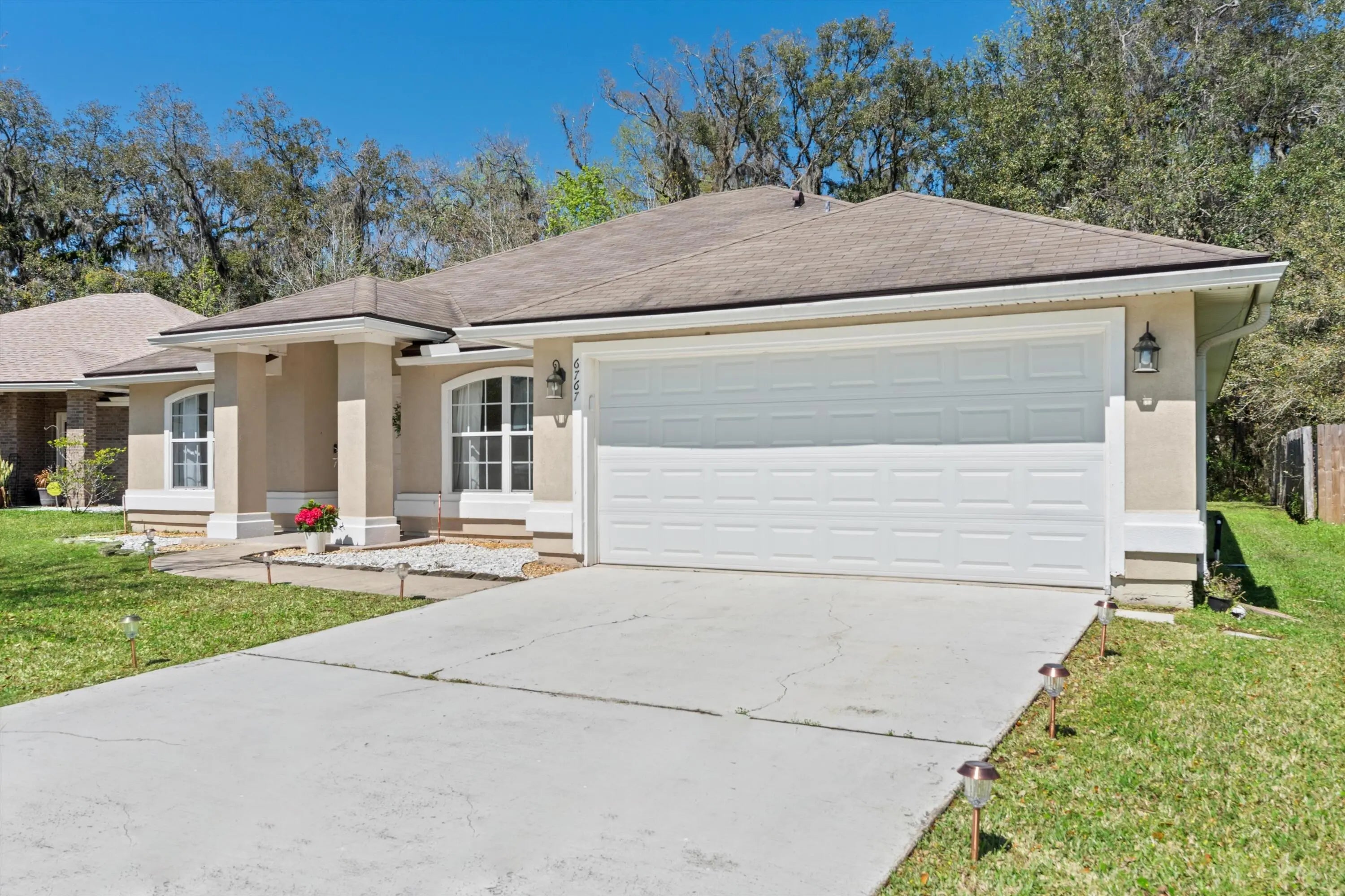 Welcome to Gentle Woods! Impeccably maintained one-story home located at the entrance of a cul-de-sac providing minimum traffic with a long driveway and two-car garage. The layout offers three bedrooms plus a separate den/office providing flexible living space suitable for everyday living, remote work or additional guest accommodations. The kitchen features shaker cabinetry, a breakfast area and 2023 appliances (dishwasher excluded). Formal dining room offers a dedicated space for gatherings, while the living room features vaulted ceilings, a cozy fireplace, tons of natural light creating a bright and welcoming main living area. Washer and dryer are conveniently housed in it's own utility room. Tile flooring runs through the main living areas with comfy carpeted bedrooms. Recent updates include a 2023 air conditioning system and 2019 roof! The home also benefits from a hip roof design and documented wind mitigation features, adding peace of mind and long-term ownership value. The backyard offers a private setting with room for a pool or future outdoor enhancements, making it well-suited for both personal enjoyment and long-term value. Gentle Woods has a low HOA of only $200 a year and no rental restrictions, offering flexibility for owner-occupants or investors!