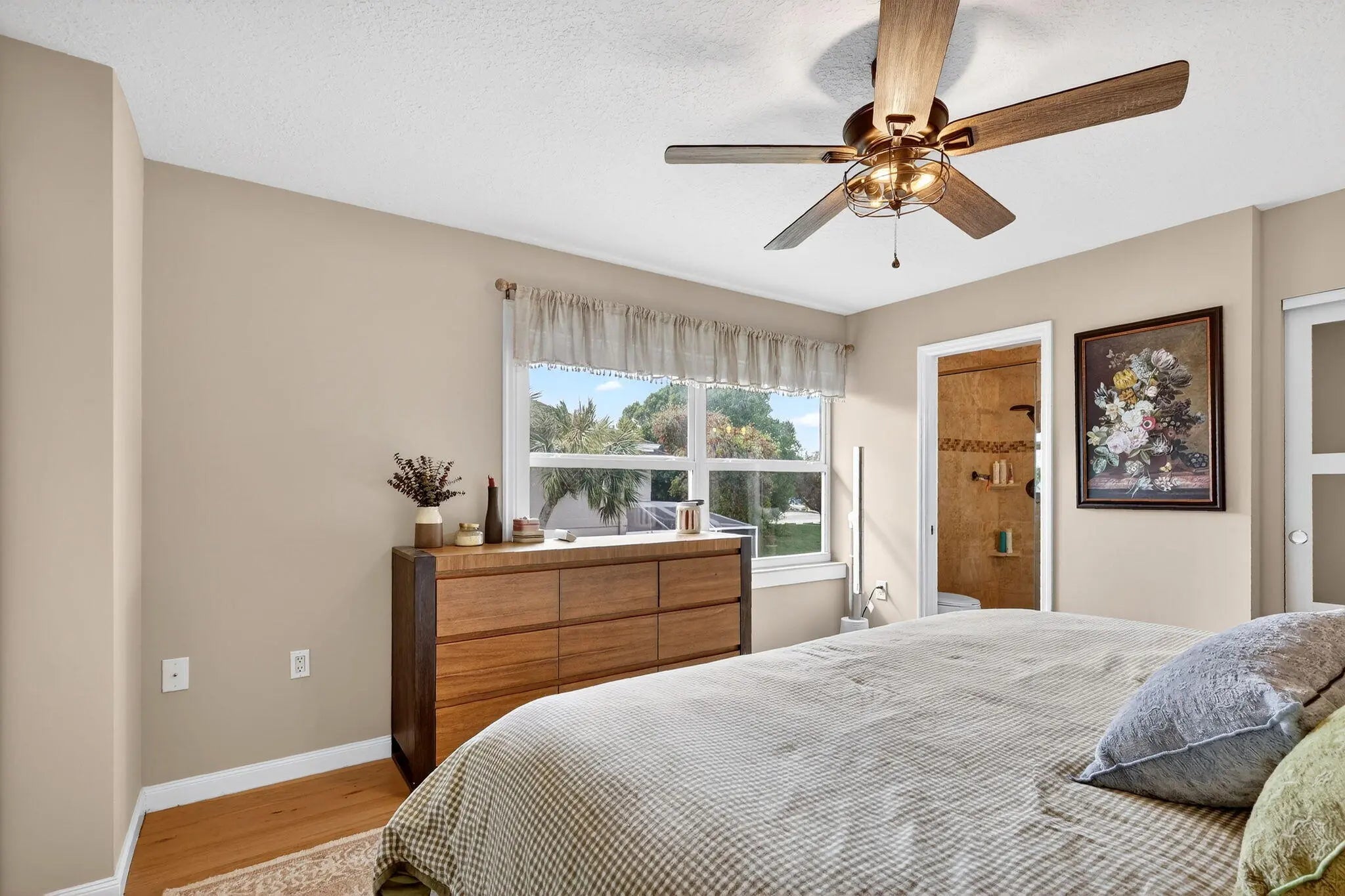 Completely renovated and move-in ready in Sunset Trace, offers modern upgrades and low-maintenance living in the heart of Palm City. Highlights include brand-new, wide-plank engineered hardwood flooring, new stairs, hurricane impact glass throughout, and custom top-of-the-line blinds, including electric blinds on the kitchen slider. Major system upgrades provide peace of mind with a 2023 A/C, 2025 Washer/Dryer, and a 2025 refrigerator. The home also features a resurfaced lanai, perfect for relaxing or entertaining. The HOA covers exterior maintenance and building insurance, making this a truly turnkey opportunity in one of Palm City's most desirable locations!