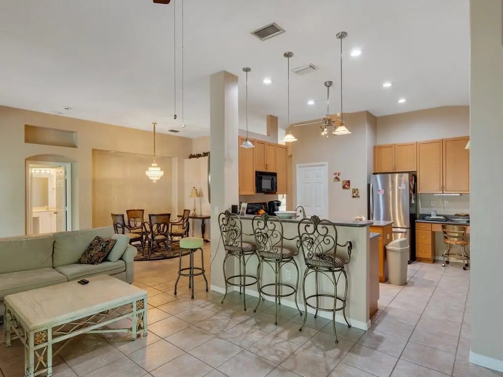 Pool home with open floor plan. 3 bedrooms, 2 baths, 2 car-garage. porcelain tile in living areas, wood and laminate flooring in bedrooms (no carpet). Large covered-screened patio, great for outdoor entertaining or just to enjoy outdoor dining, lap pool 11x20. Quiet subdivision close to shopping and restaurants and just 10 minutes to the beach. Do not miss it!!!