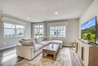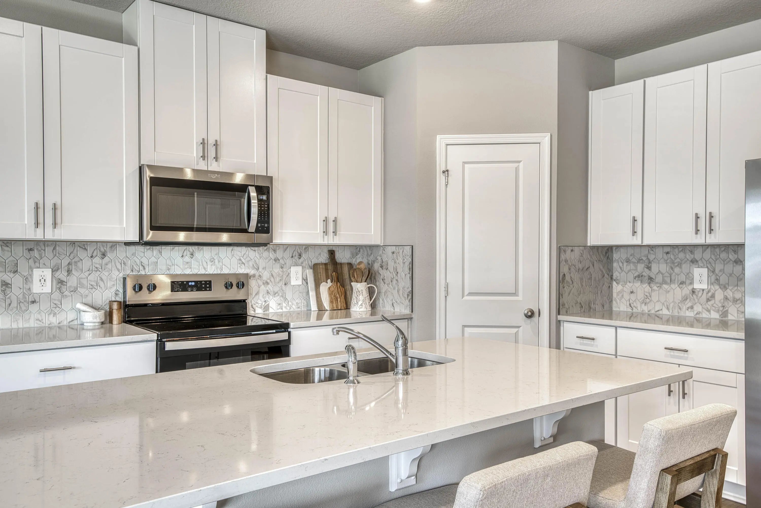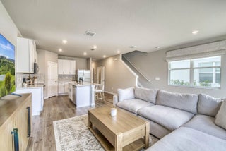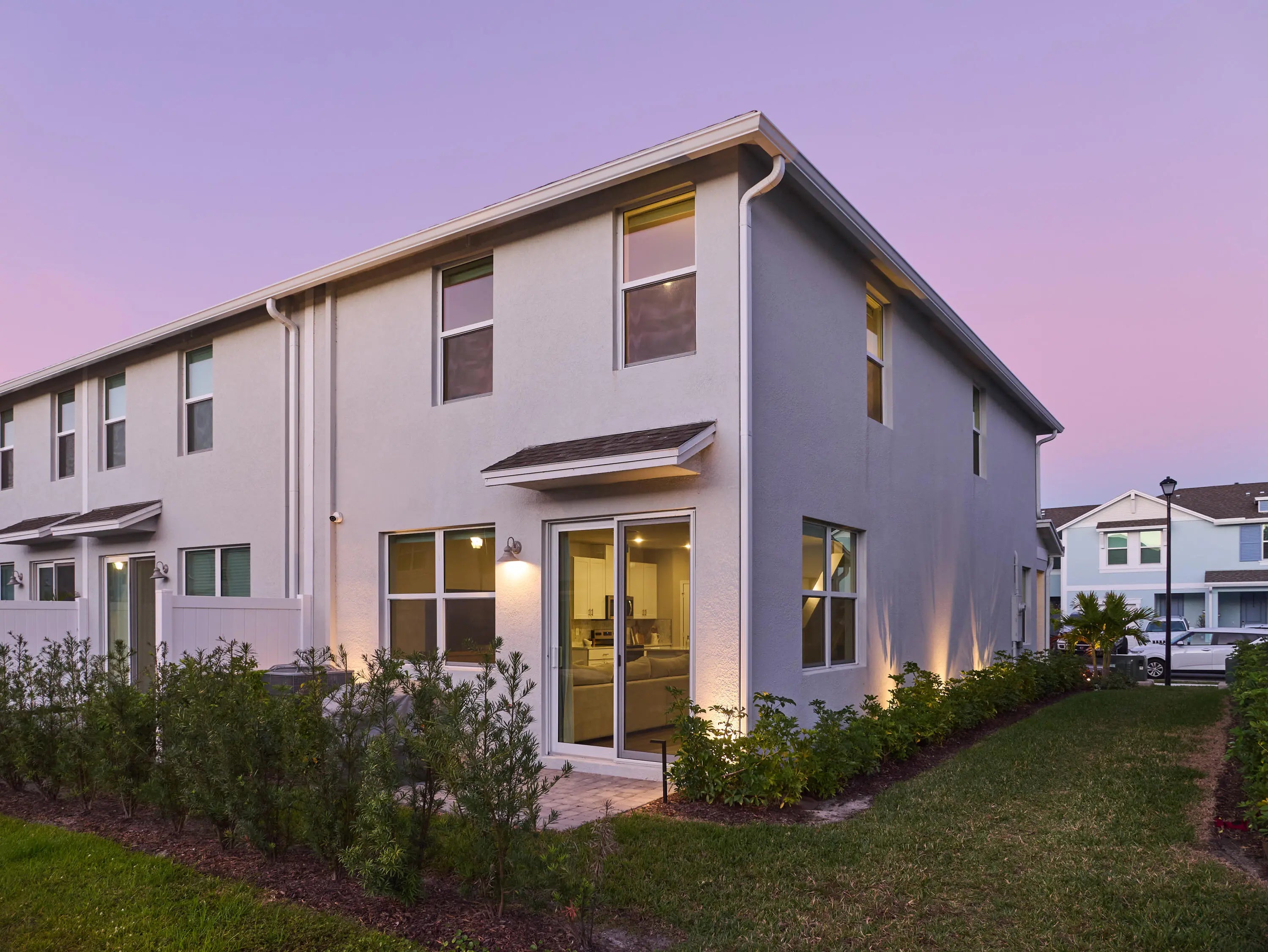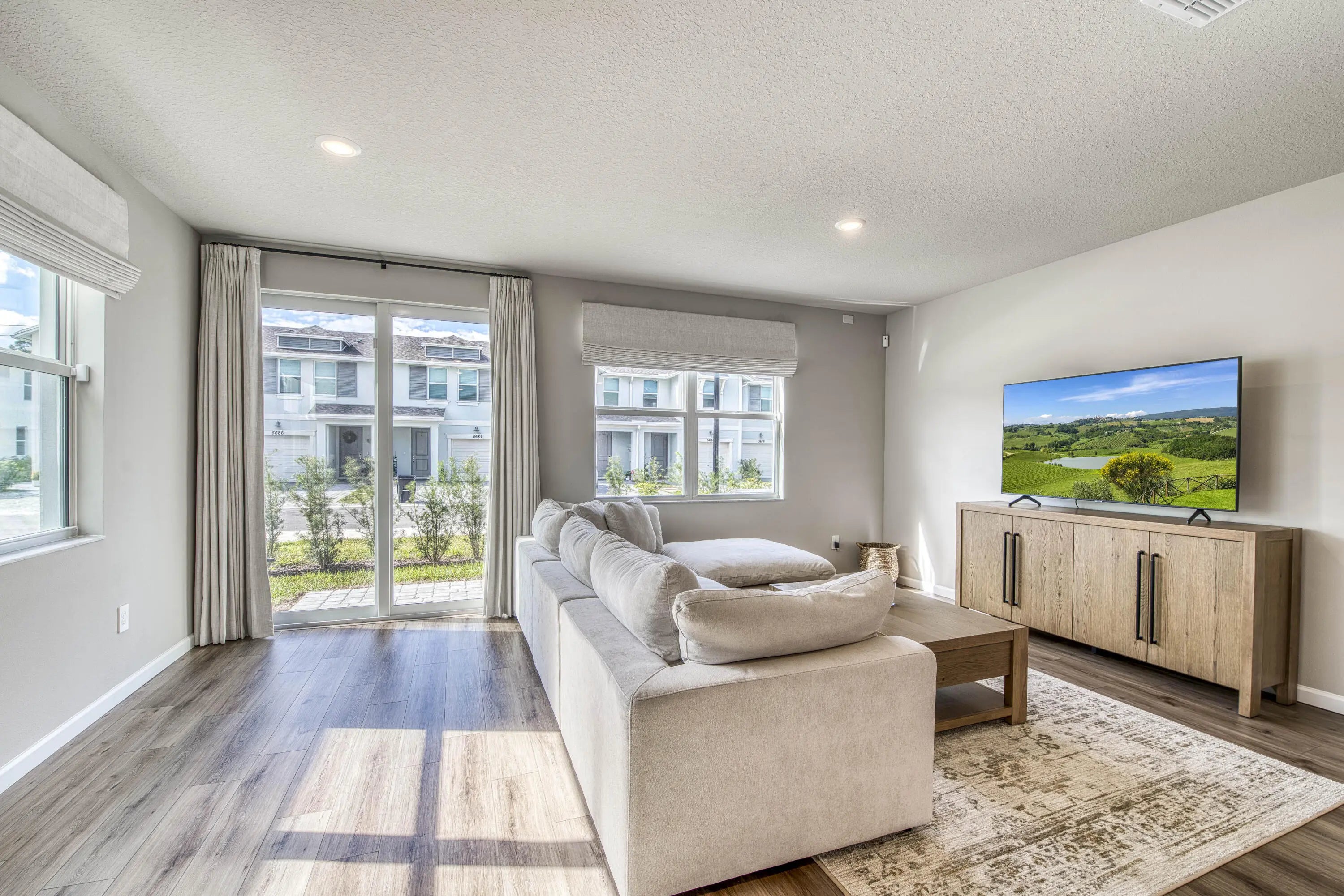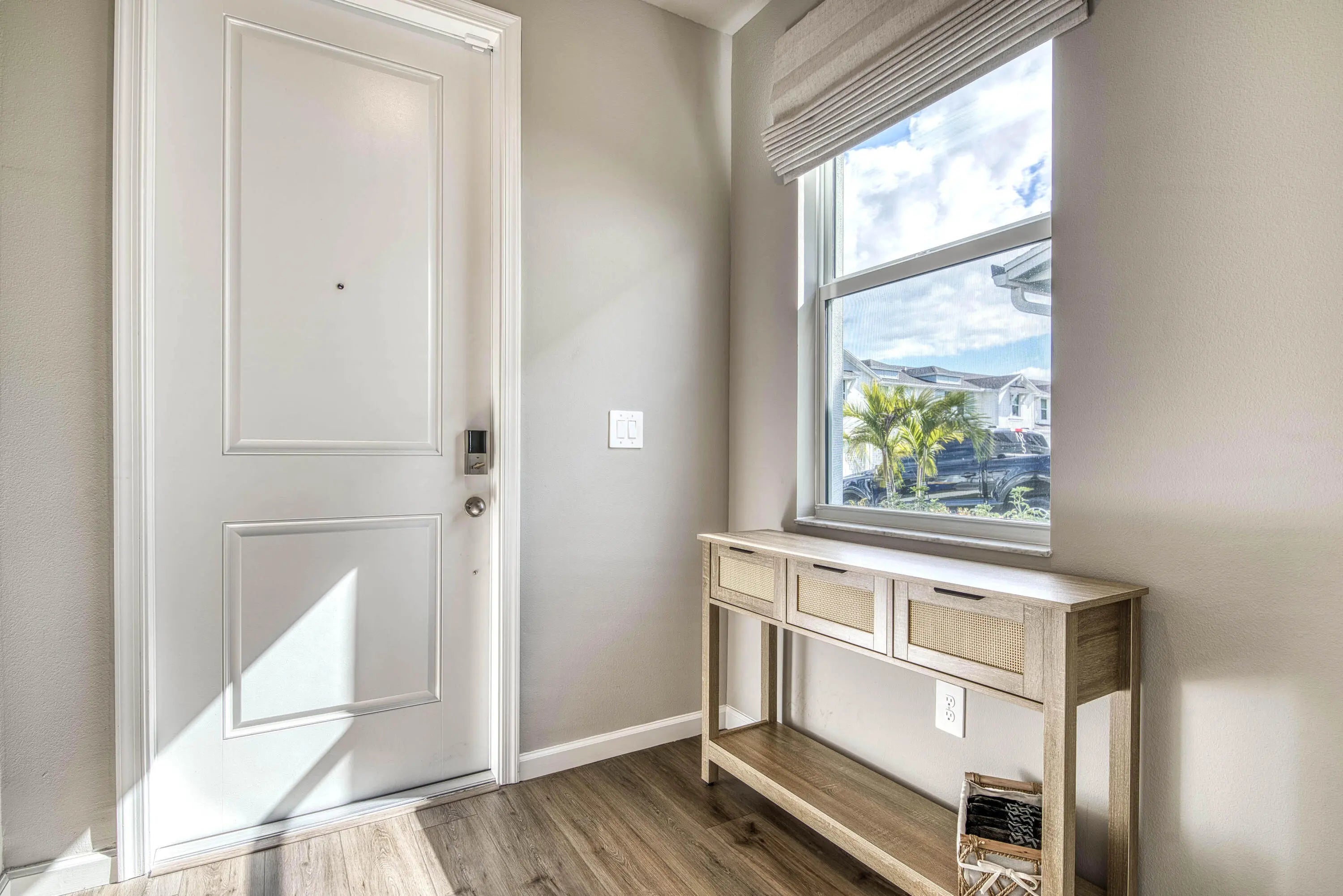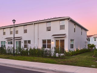 No, this home is not virtually staged; it truly is this beautiful! Light, bright and pristine, this new construction townhouse is an end unit built with extra upgrades galore! LVP wood-look flooring, white quartz countertops and a large corner pantry elevate the first floor with elegance. Upstairs, the primary boasts his & her walk in closets and motorized blinds. Custom landscape lighting surrounds the exterior and the garage a host a full gym! Smart home features include a smart thermostat, smart door lock, smart garage door opener, video doorbell, motion detectors, door sensors, and a centralized smart home hub with app control. Enjoy full peace of mind with this newer home and its full impact glass, 2024 roof, 2024 AC, 2024 water heater, security alarm system and transferable warranties. Edgewater is a friendly, gated community surrounded by greenery and scenic lakes and hosts a beautiful community pool. 7 minutes to all your major conveniences, 20 minutes to the beach, 40 minutes to PBI Airport.