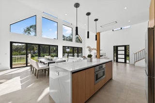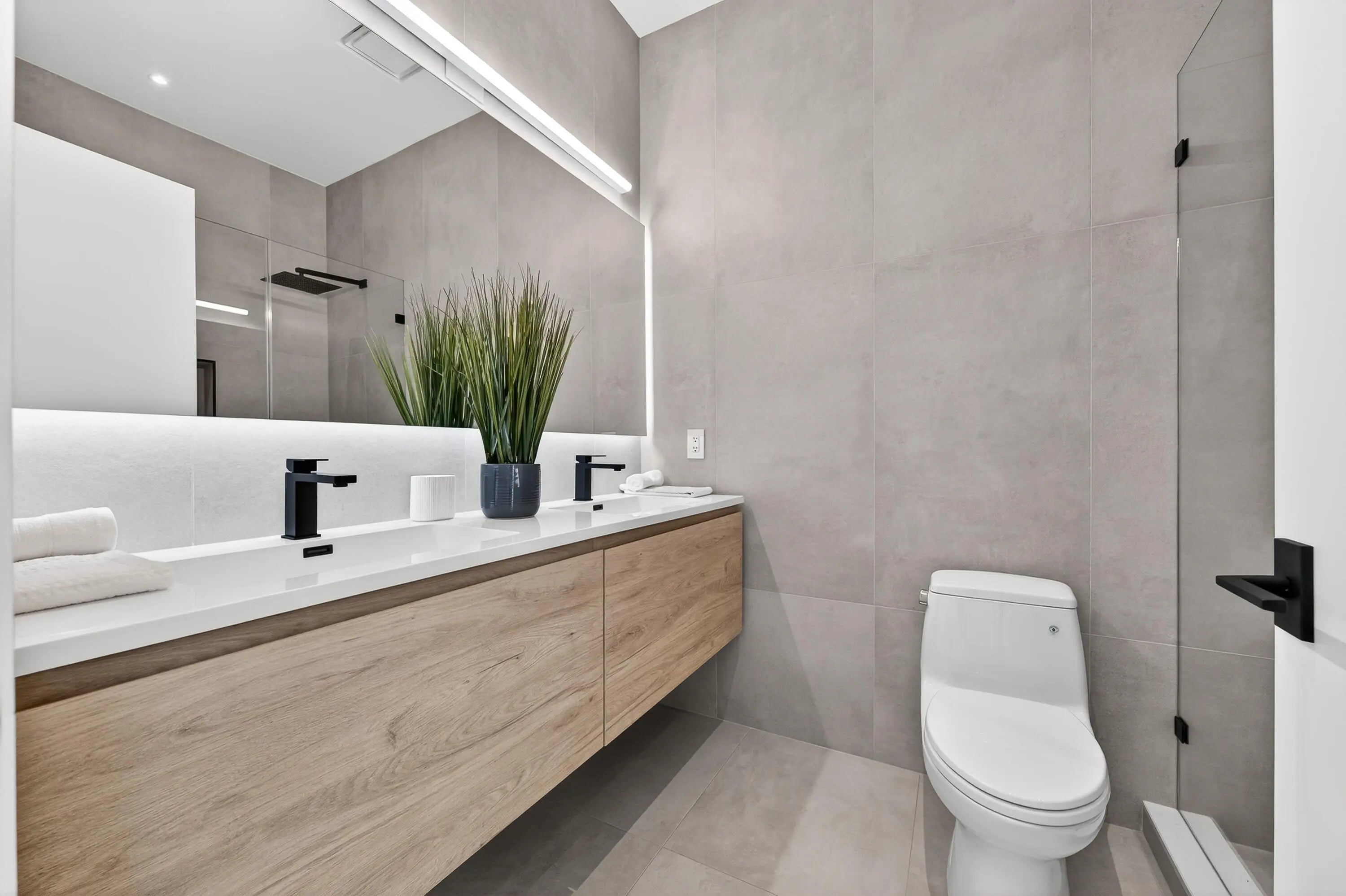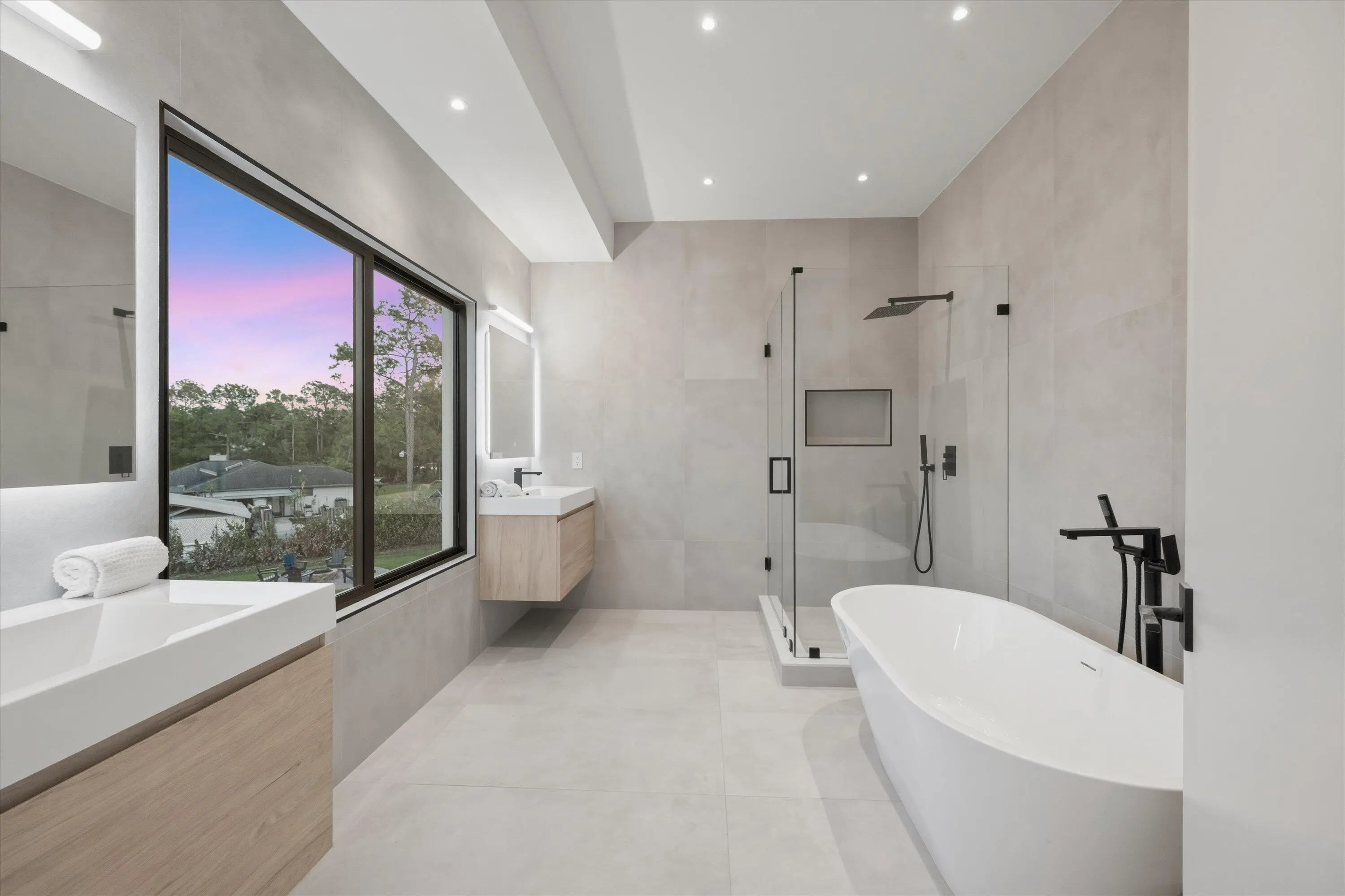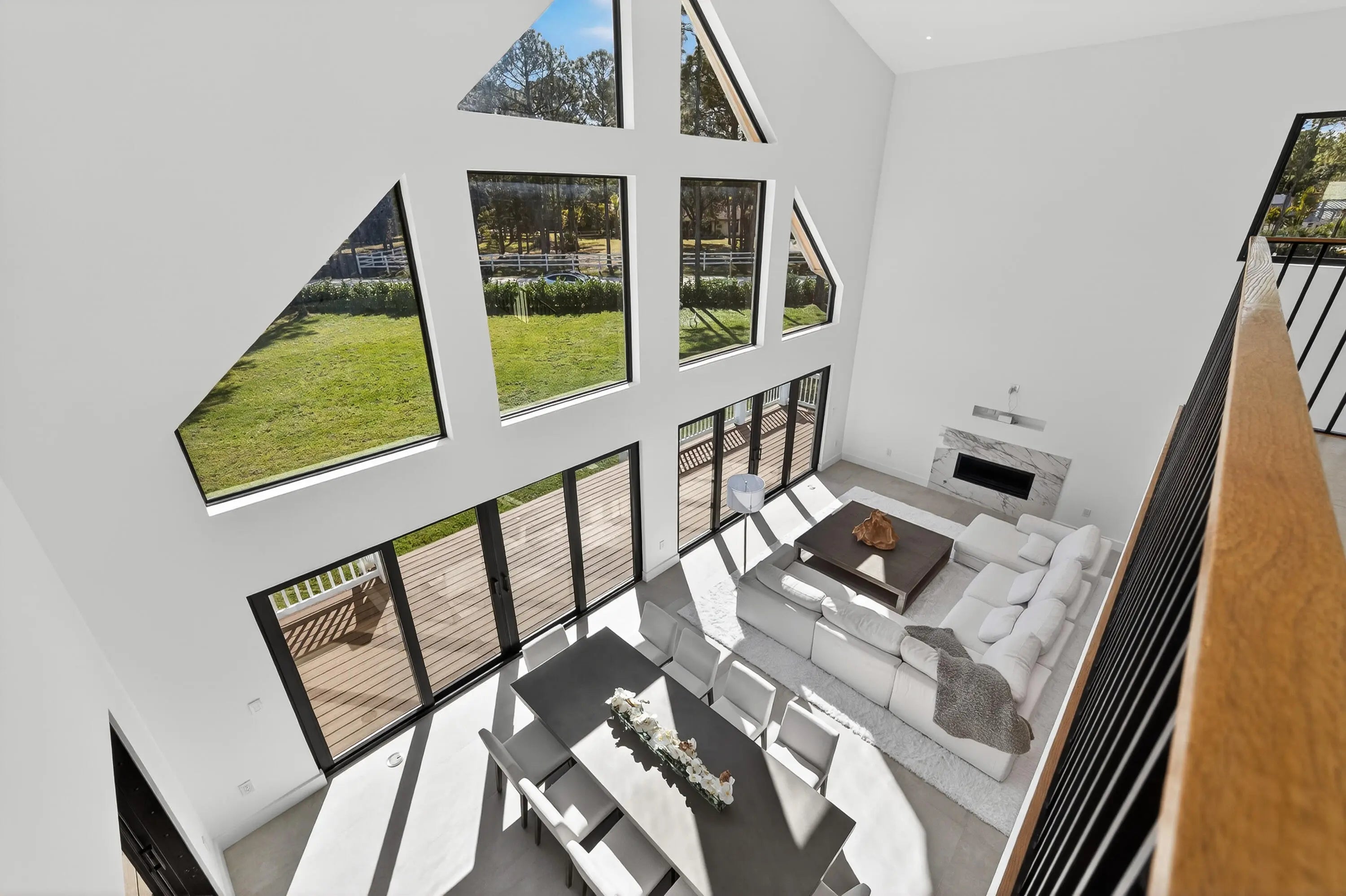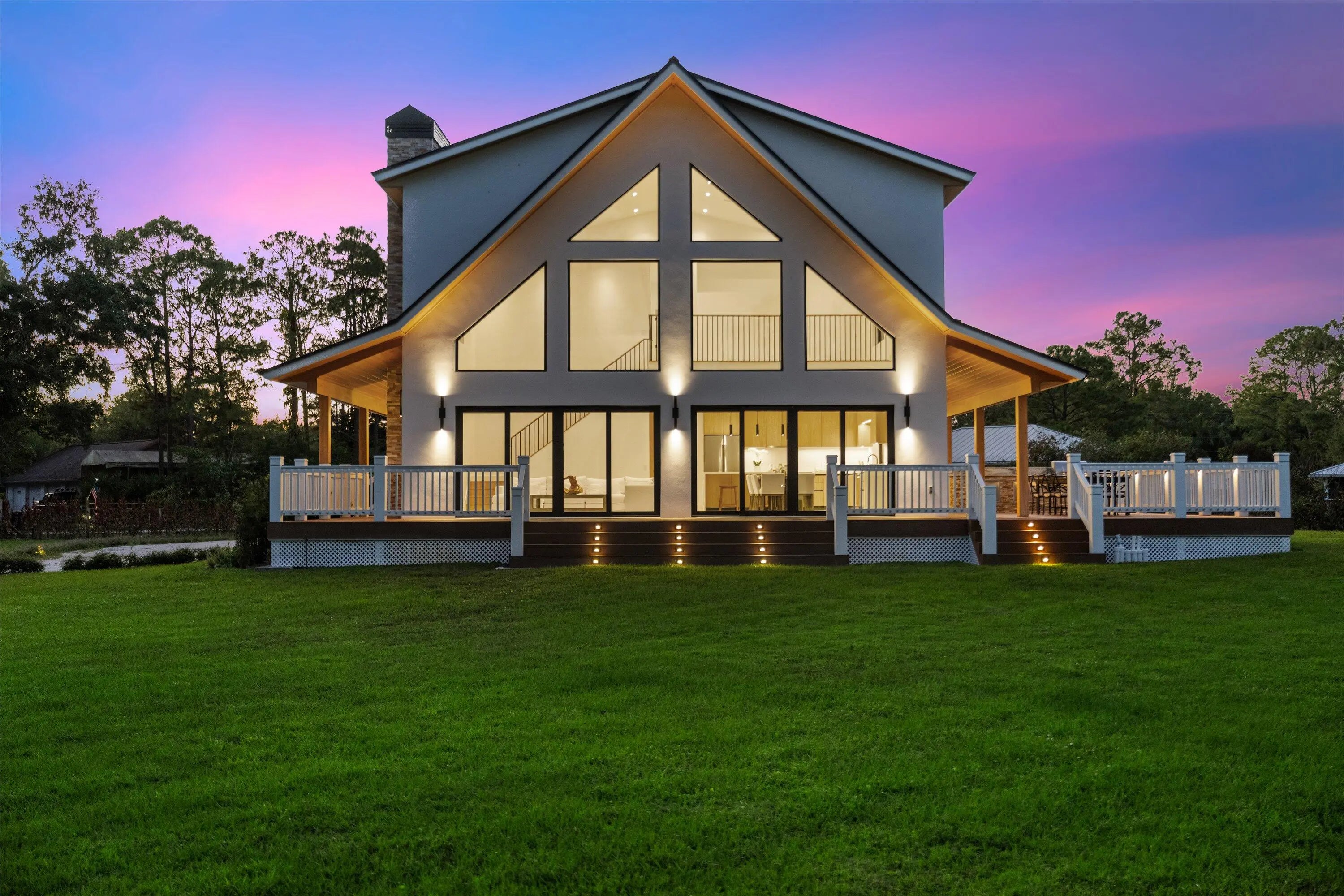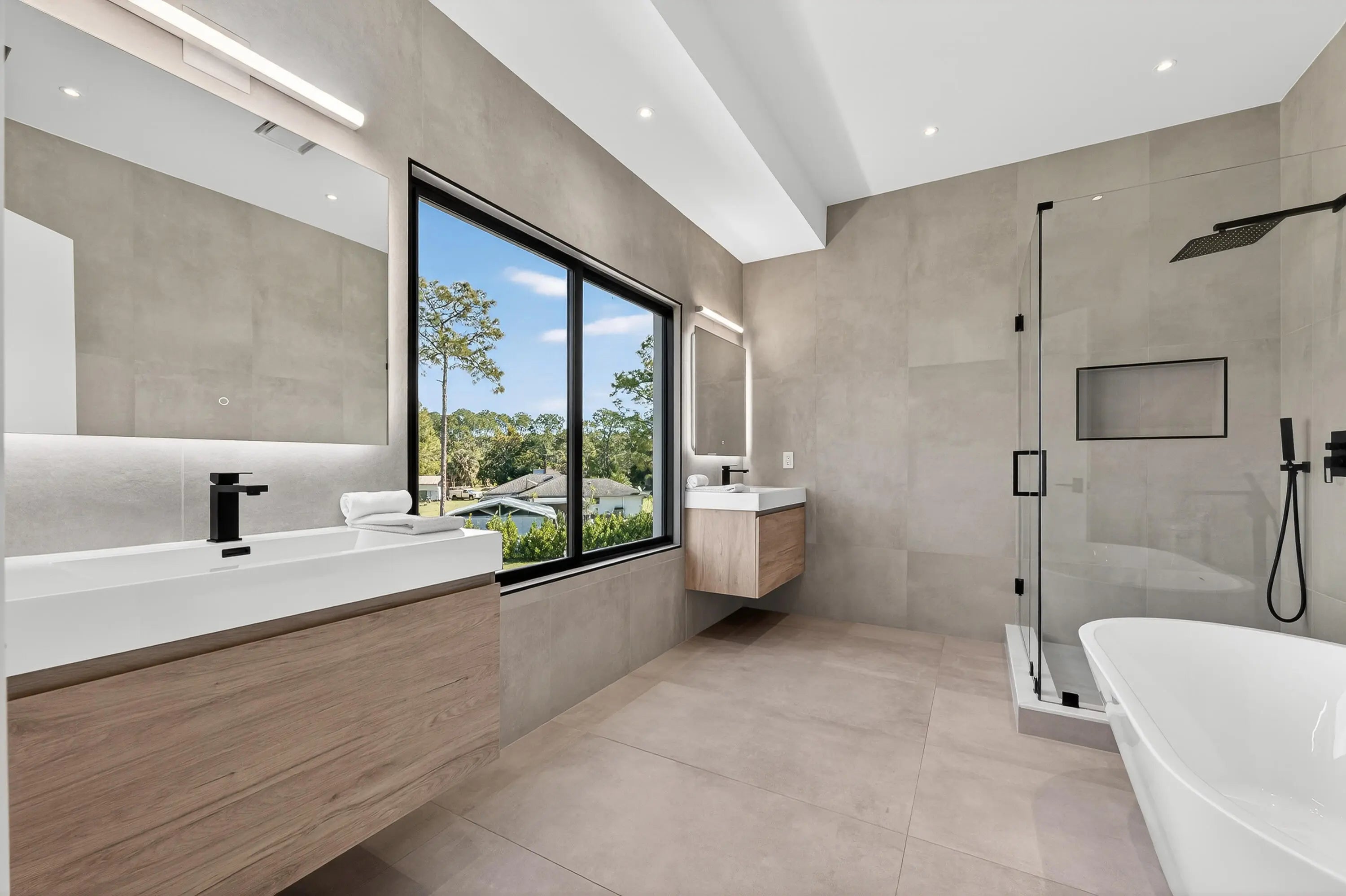 This exceptional new construction estate offers a refined blend of modern luxury and farmhouse-inspired design with an expansive and luxurious Primary Suite overlooking the beautifully landscaped 1.31- Acre lot with no HOA in the heart of Jupiter Farms. Designed by award-winning 'Wandrian Studios' in collaboration with the owner, this two-story concrete block residence was thoughtfully designed with custom features reflecting superior craftsmanship and high-quality finishes throughout. Extending to almost 3600 square feet, the home delivers elevated design, durability, and a seamless indoor-outdoor lifestyle. The interior features four bedrooms, four full bathrooms, and a versatile loft. Monolithic, Bellevue porcelain tile flows throughout the home, creating a sleek & cohesive aesthetic. The Italian-inspired chef's kitchen is outfitted with premium Bosch appliances and opens to a dramatic living space anchored by a striking two-story A-frame window that floods the home with natural light and creates a strong connection to the outdoors. Designed for both everyday living and entertaining, the home includes smart lighting by 'Lutron Caseta', dual laundry area, and a climate-controlled garage converted into a playroom with a bar, kegerator, and side-by-side refrigerator. Outdoors, an expansive 1,800-square-foot wraparound covered porch with cypress wood accents and a summer kitchen provides the ideal setting for year-round entertaining. The builder offers customization for a future pool and outdoor living area, allowing buyers to tailor the design to their dream vision. Built for longevity and peace of mind, the home features elevated slab construction, hurricane-impact windows and doors, a titanium roof with double wrap trusses, spray-in insulation for energy efficiency, and a 26kW 'Generac' standby generator with 400- amp service and a 1,000-gallon underground propane tank. An additional 18x34 concrete slab offers space for a detached shop or RV, boat, or recreational vehicle parking. Set in one of Palm Beach County's most desirable locations in Jupiter Farms, this property is only 10 minutes from premier shopping, dining, and leading medical facilities, with seamless access to I-95, the Florida Turnpike, and major airports, delivering refined convenience without sacrificing privacy or tranquility.