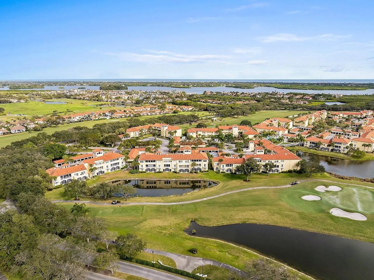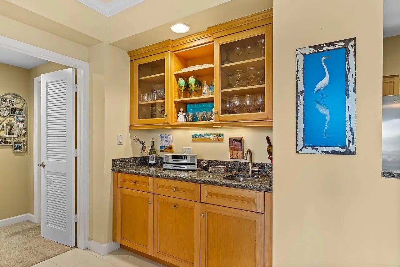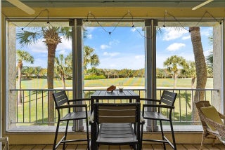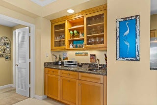 Harmony Island at Grand Harbor Country Club Vero Beach. Discover effortless coastal living in the highly desirable Harmony Island community within Grand Harbor Country Club, ideally located along Indian River Boulevard. Just minutes from South Beach, beachside Vero, the Indian River Lagoon, and only 3 miles from Cleveland Clinic, this location blends convenience with a relaxed Florida lifestyle. This well-maintained 2-bedroom, 2-bath residence features a rare twin primary suite layout, offering exceptional privacy and flexibility for guests or dual living. Each bedroom includes its own en-suite full bath. A carport plus exterior storage closet provides the perfect space for beach chairs, bicycles, and outdoor gear. A standout feature is the custom built-in entertaining bar ,complete with glass-front cabinetry, granite counters, and a dedicated wet bar sinkperfect for cocktails, wine storage, and hosting guests with ease (as shown). This space adds both charm and function, creating an ideal setting for relaxed evenings and stylish entertaining. Enjoy gorgeous golf course views overlooking the 18th fairway of the River Course, creating a serene backdrop from your living space. The unit has been thoughtfully updated with PGT impact windows, new Lennox Elite HVAC (2021), hot water heater (2022), newer kitchen appliances, recent interior paint, and full re-pipingoffering peace of mind and move-in readiness. Harmony Island residents enjoy elevator access, a heated community pool, and beautifully maintained grounds. HOA dues are truly almost all-inclusive, covering cable TV, internet, master insurance, roof, pest control, parking, recreational facilities, reserve funds, security, and common area maintenancemaking ownership simple and stress-free. Whether you're seeking a full-time residence, seasonal escape, or lock-and-leave lifestyle, this home delivers comfort, convenience, and the best of Vero Beach living.