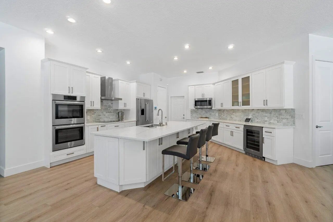 Beautiful, completely renovated,single family home in the quaint little neighborhood called The Moorings. These Arthur Rutenberg homes are built on a St Augustine floor plan, all on one level. A humongous 1/2 acre lot, one of the largest in the neighborhood, with a large screened in Pool in the back with new pool heater/pump & salt system. There are so many renovations, but to name a few, a complete newly designed kitchen with bosch and Thermidor appliances, new cabinets with quartz contertops. All new flooring, new roof (2023) New A/C (2023), new bathroom cabinets and tile, new impact windows (2023), stampcrete patio and driveway, all new light fixtures, new irrigation system. You have to see to appreciate this quiet little neighborhood with one of the lowest HOA fees around.