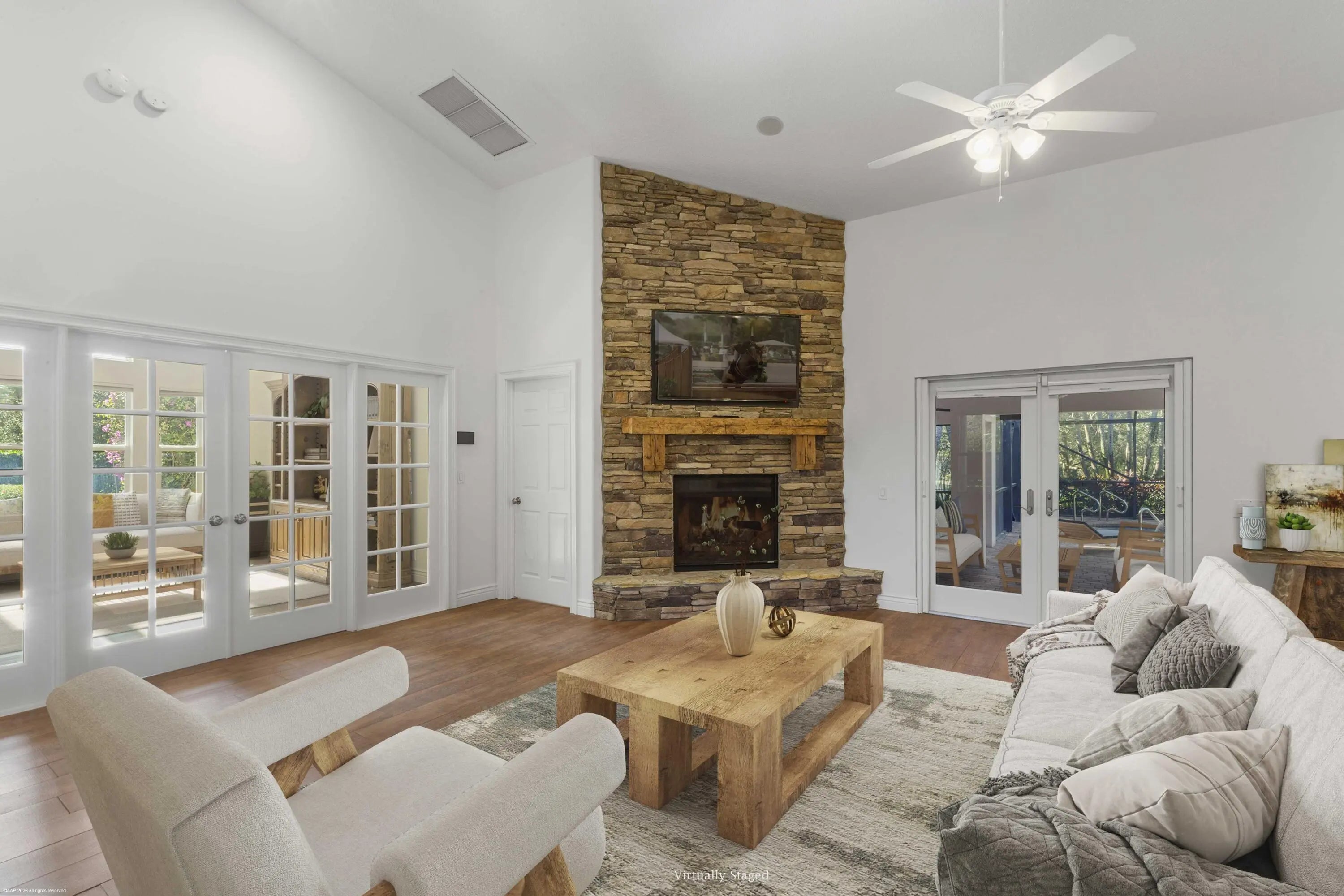 Set on five pristinely manicured, fully irrigated acres in a prime location, this 3-bedroom, 2.5-bath residence offers an exceptional blend of privacy, space, and opportunity. The impeccably well-built and well-maintained home features a huge added family room/gym, a dedicated office, an updated pool with a new screen enclosure and deck, and an added oversized garage. Fully electric gates and a security system provide peace of mind, while lush landscaping surrounds the property. The entire estate is enclosed by Clusia hedges and mature oak trees, creating a peaceful serene retreat. The home is thoughtfully equipped with three A/C units, a new RO water system, a full-house generator, and a propane tank, offering comfort, efficiency, and reliability year-round. Whether you envision building out the farm of your dreams or simply enjoying acres of beautiful green space, this rare offering delivers both lifestyle and long-term value - a true must-see. DISCLAIMER: All information provided to you regarding this Property by listing agent and her associates has been obtained from third parties such as the Multiple Listing Service, public records and other sources. All Buyers should independently verify all information provided regarding this Property. The Seller, listing agent and broker make no representation as to the accuracy of this information. The Seller, Realtor and Listing broker make no representation as to the accuracy of this information.